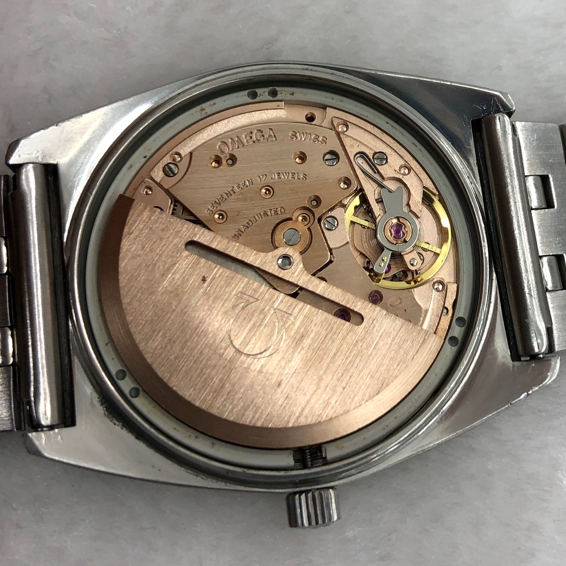 - Signed Omega: Dial, Case, Crown, Bracelet and Movement