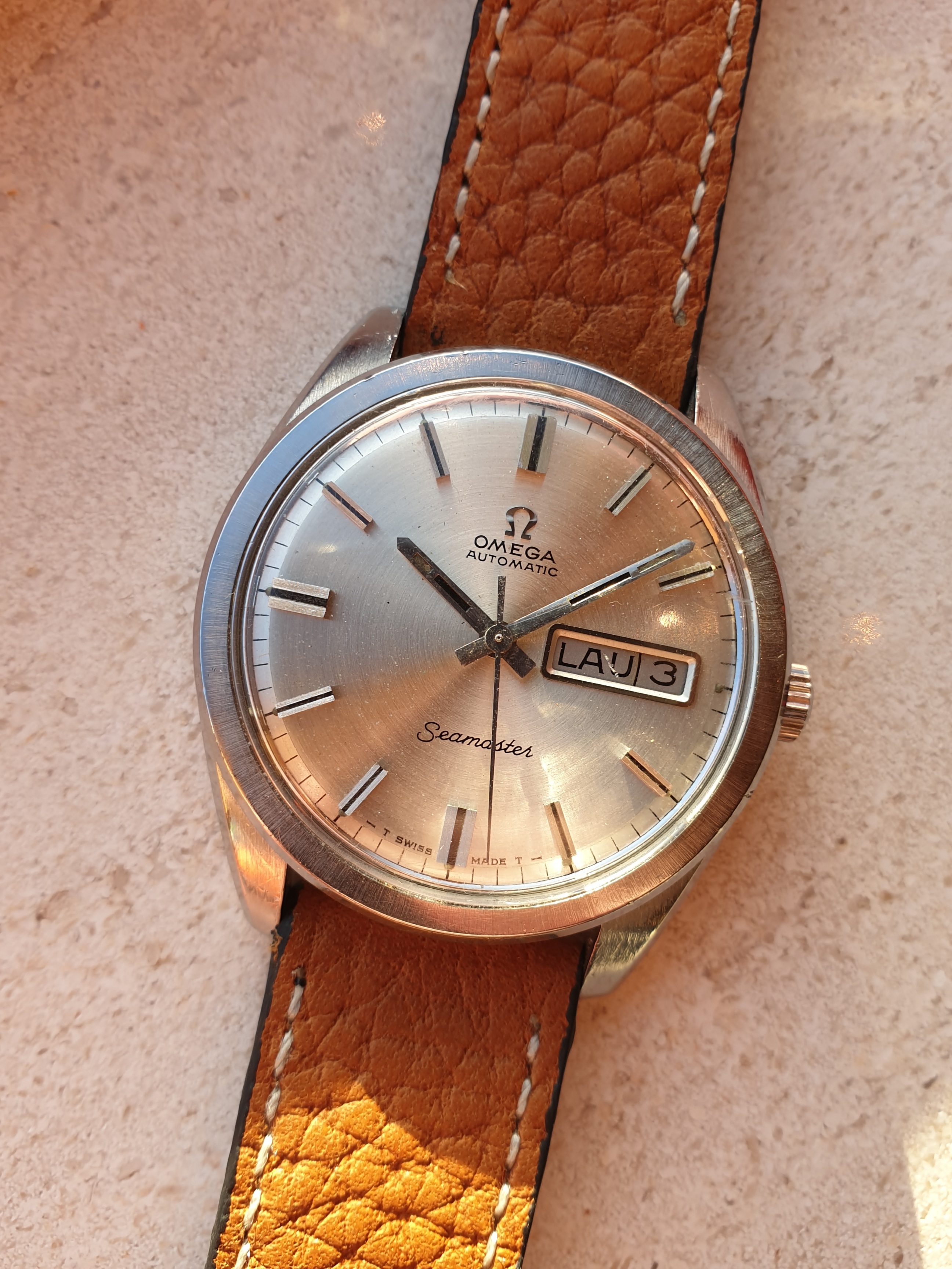 I am hereby selling a serviced, stainless steel Omega Seamaster ref. 166.032 from around 1968.