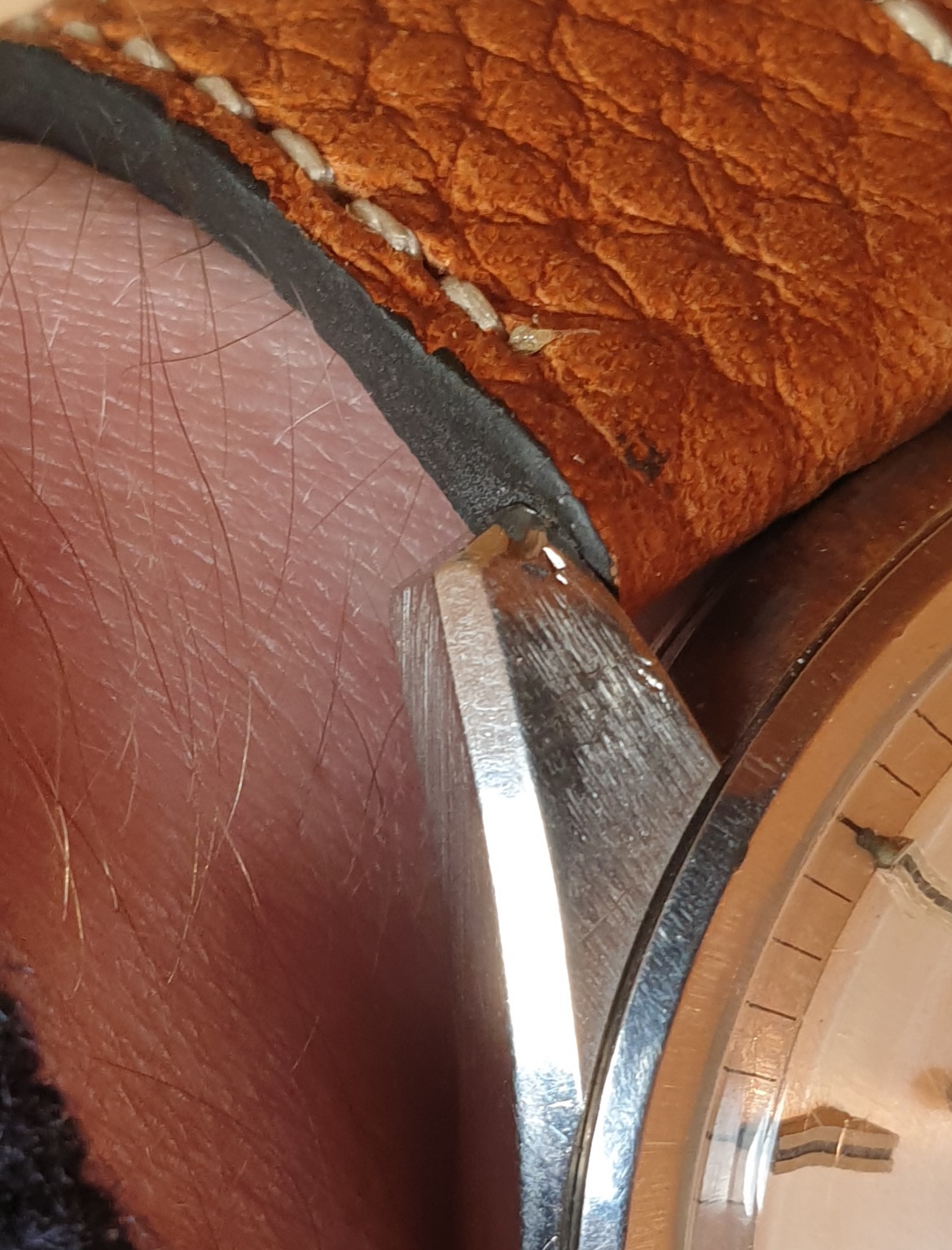 There are a few nicks on the case, worst of which I have tried to capture in the below picture; note that it is one the 11 o'clock lug, so not readily visible.