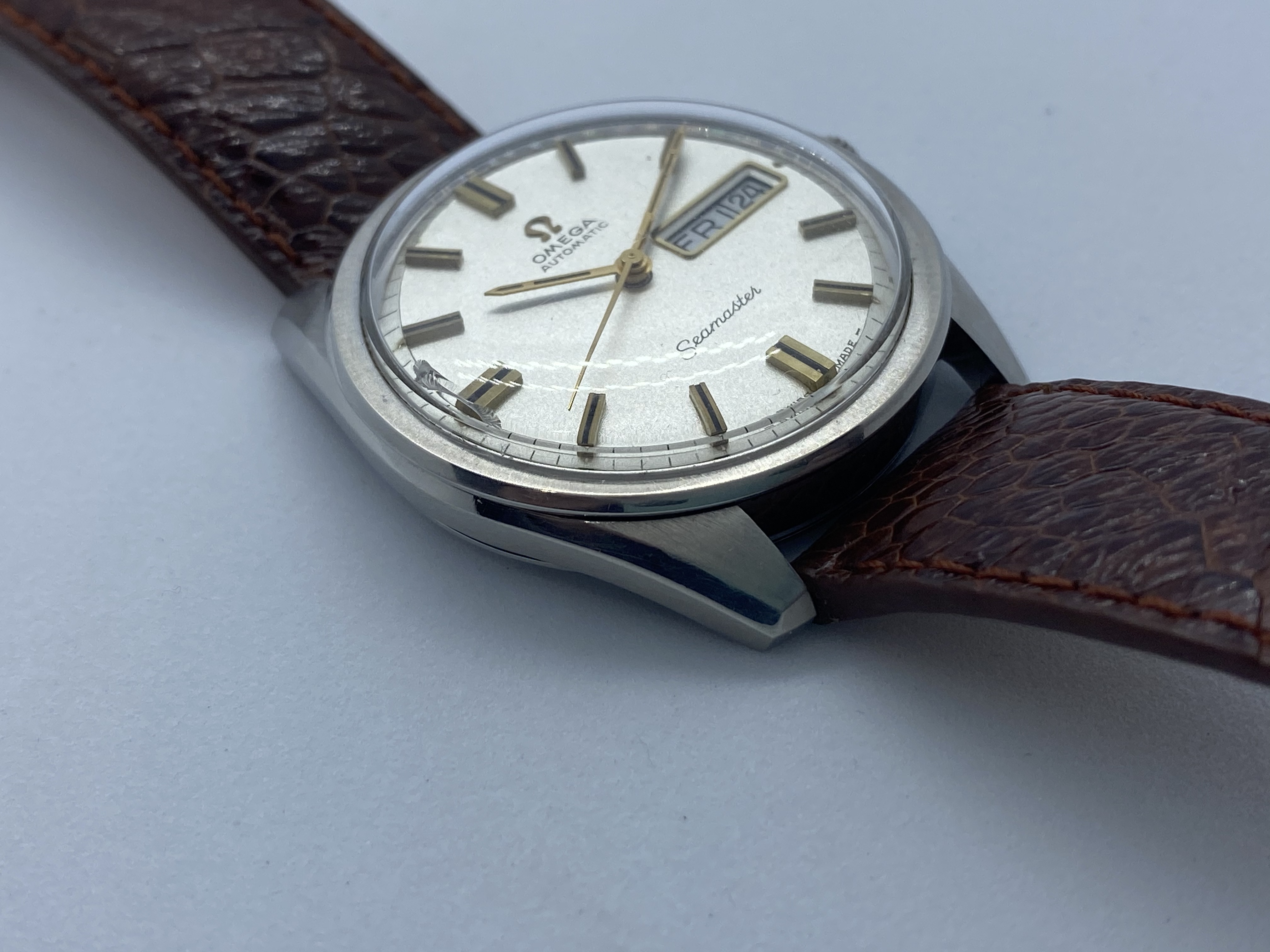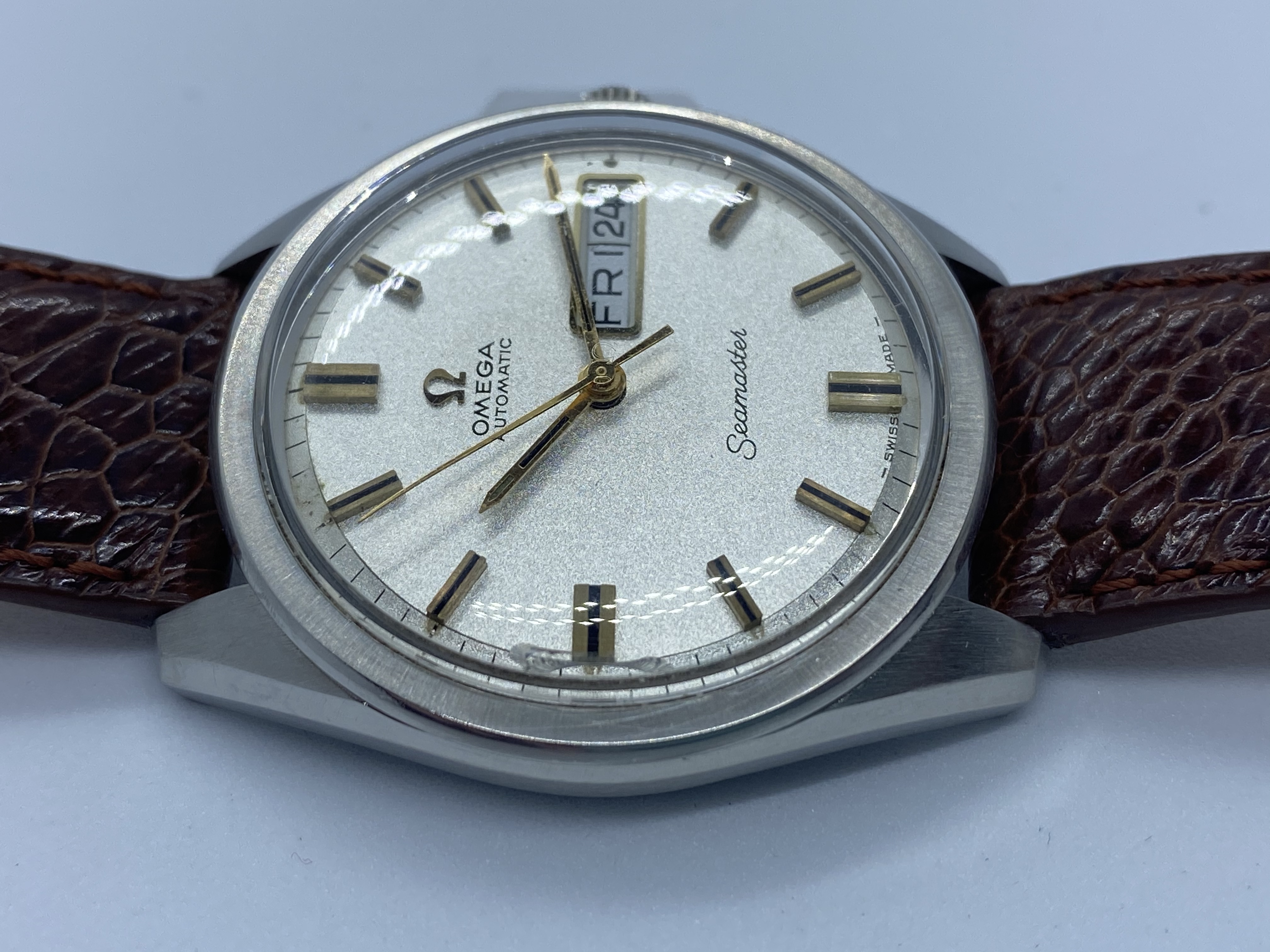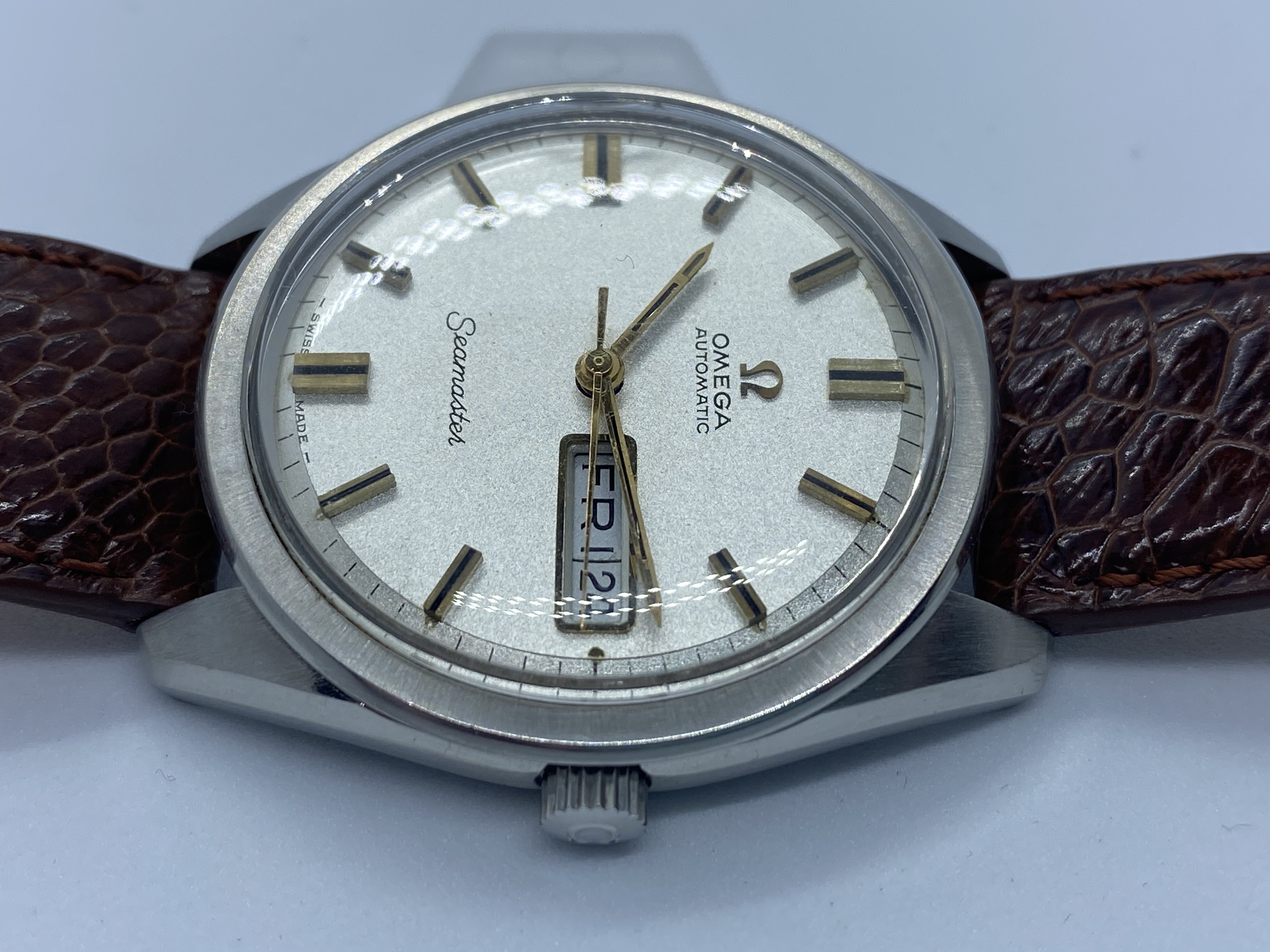Case: Original 36mm stainless steel case looks great. Only minimal marks visible, original brushing fully intact, sharp edges and chamfers. Only the backside of the lugs show light traces of a bracelet, case back is in good condition, very sharp Seamaster medallion.