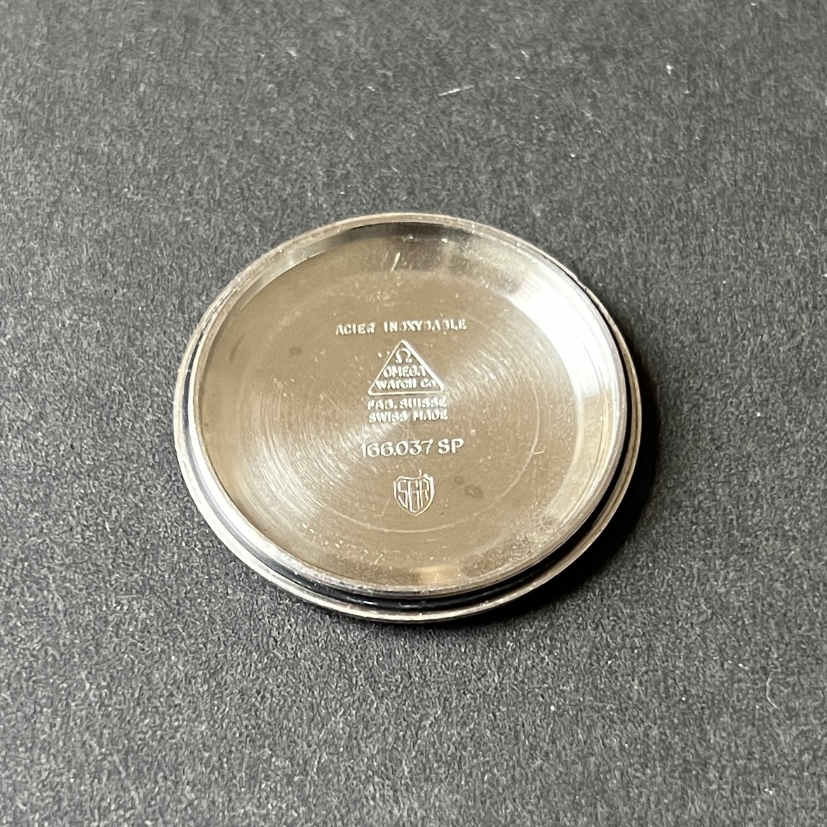Crown: Omega signed, possibly original. Has a tiny dent in it.