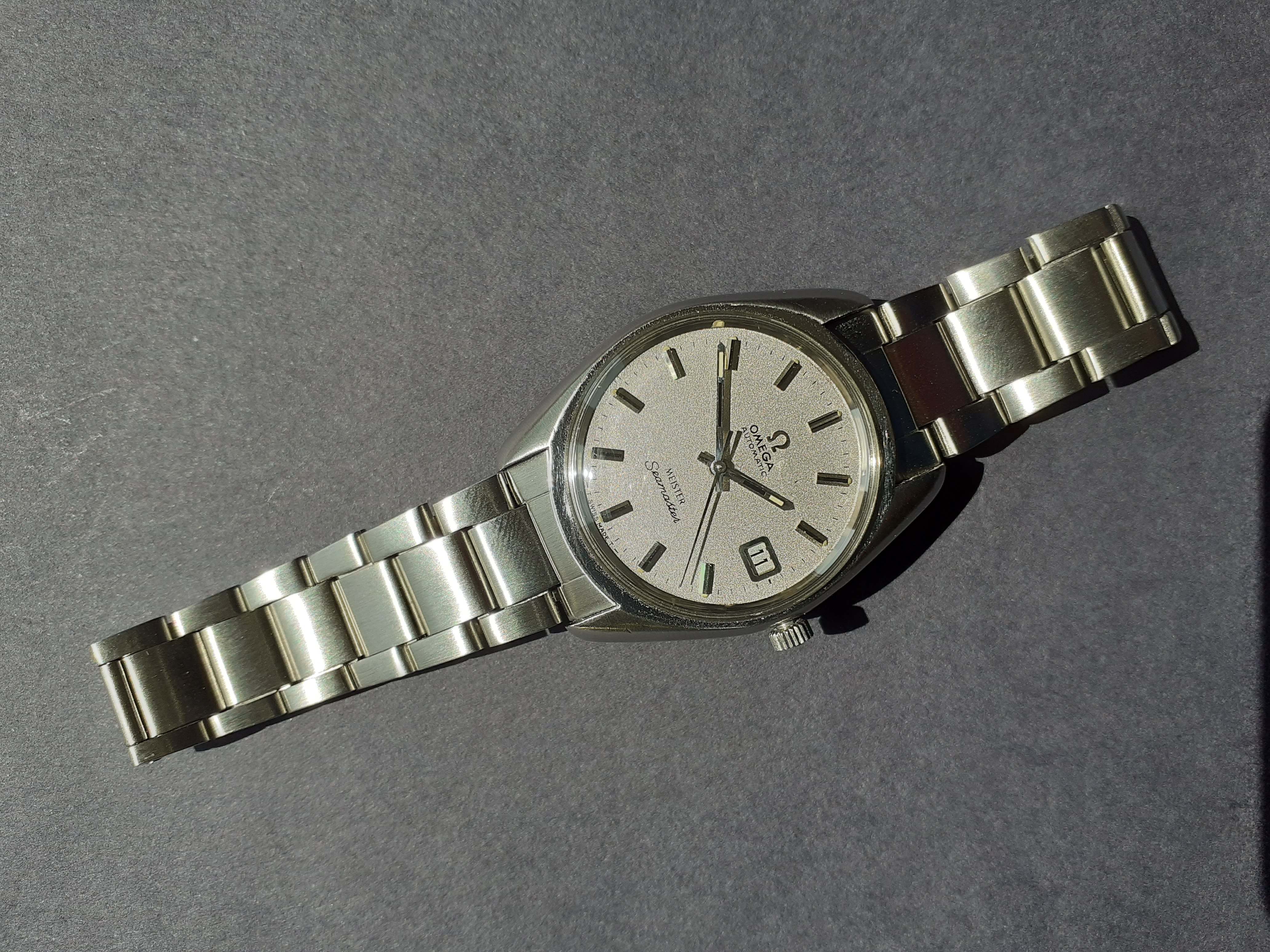 Nice, it looks good on the bracelet. Is it aftermarket, or omega (which ref?)?
