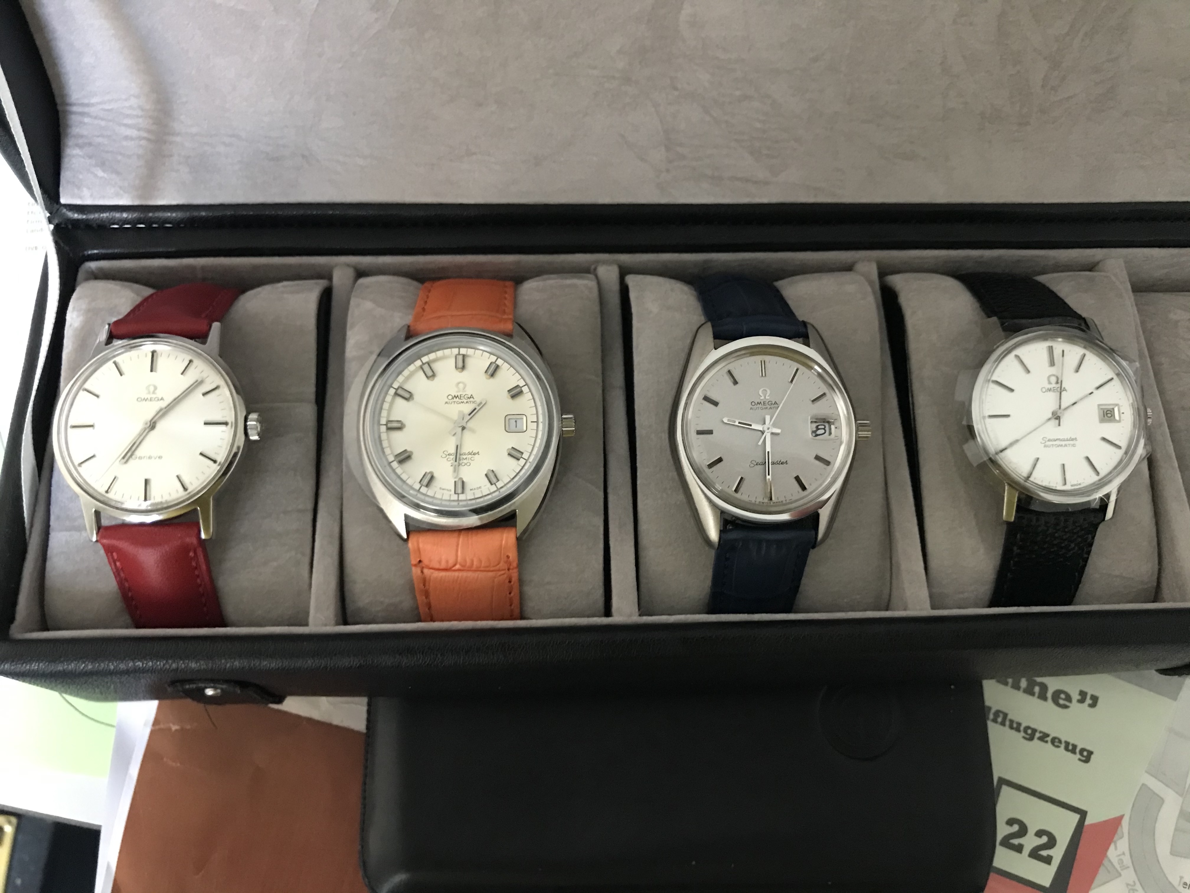 I am happy also to own one of these sparkling 166.067s (the picture shows it in the company of some other ones). The genuine OMEGA crystal features a date-magnifying lens, which seems to be something of some rarity.