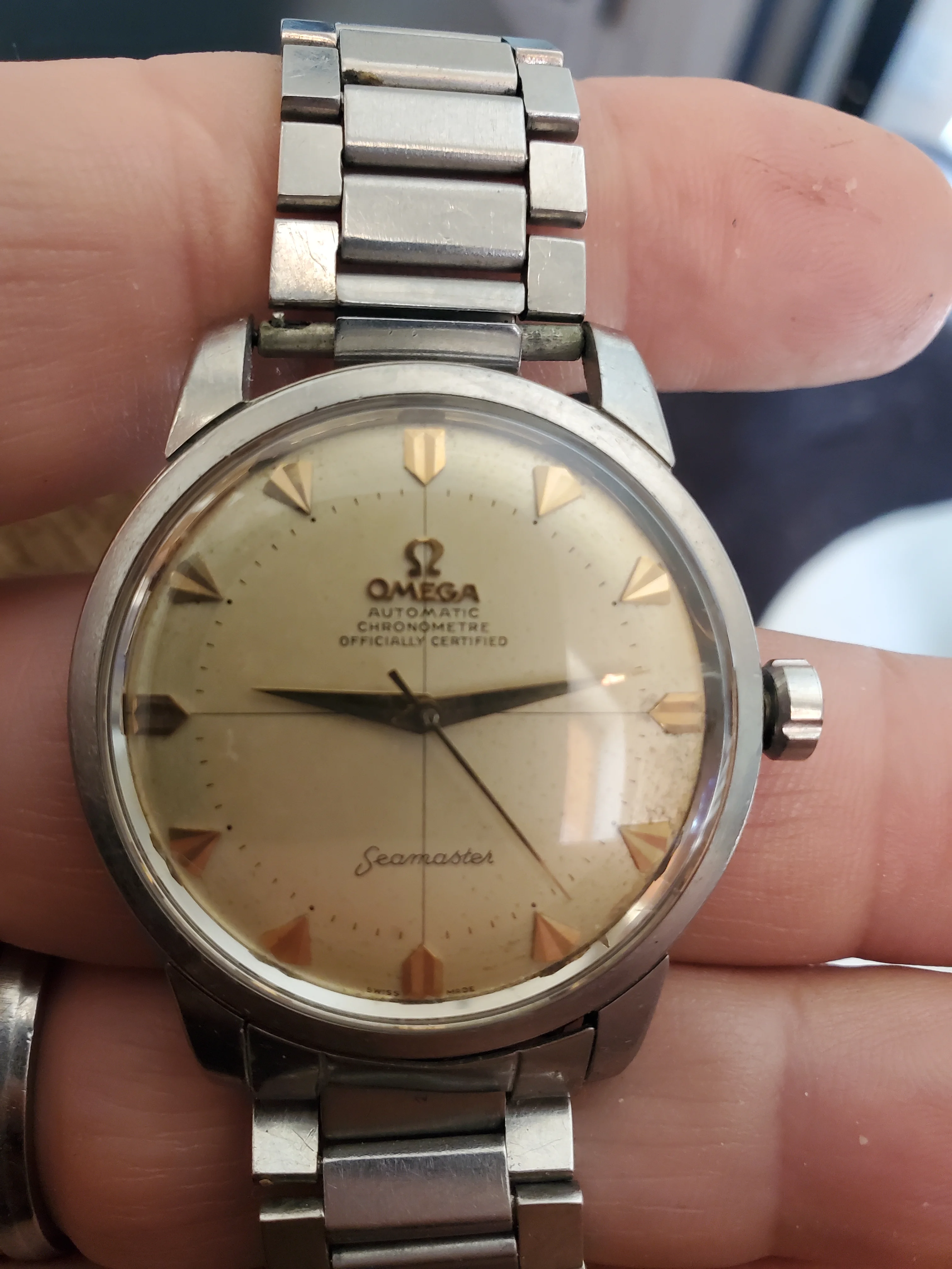 ·In a box of my deceased Fathers stuff. I never paid any attention to it for about a decade. Thought I would do a Google search based on pictures of similarity. Not much out there...perhaps rare. I think the markers are "sharks tooth". It runs smoothly. I know nothing about this watch and would appreciate any expert info and value. Thanks in advance.