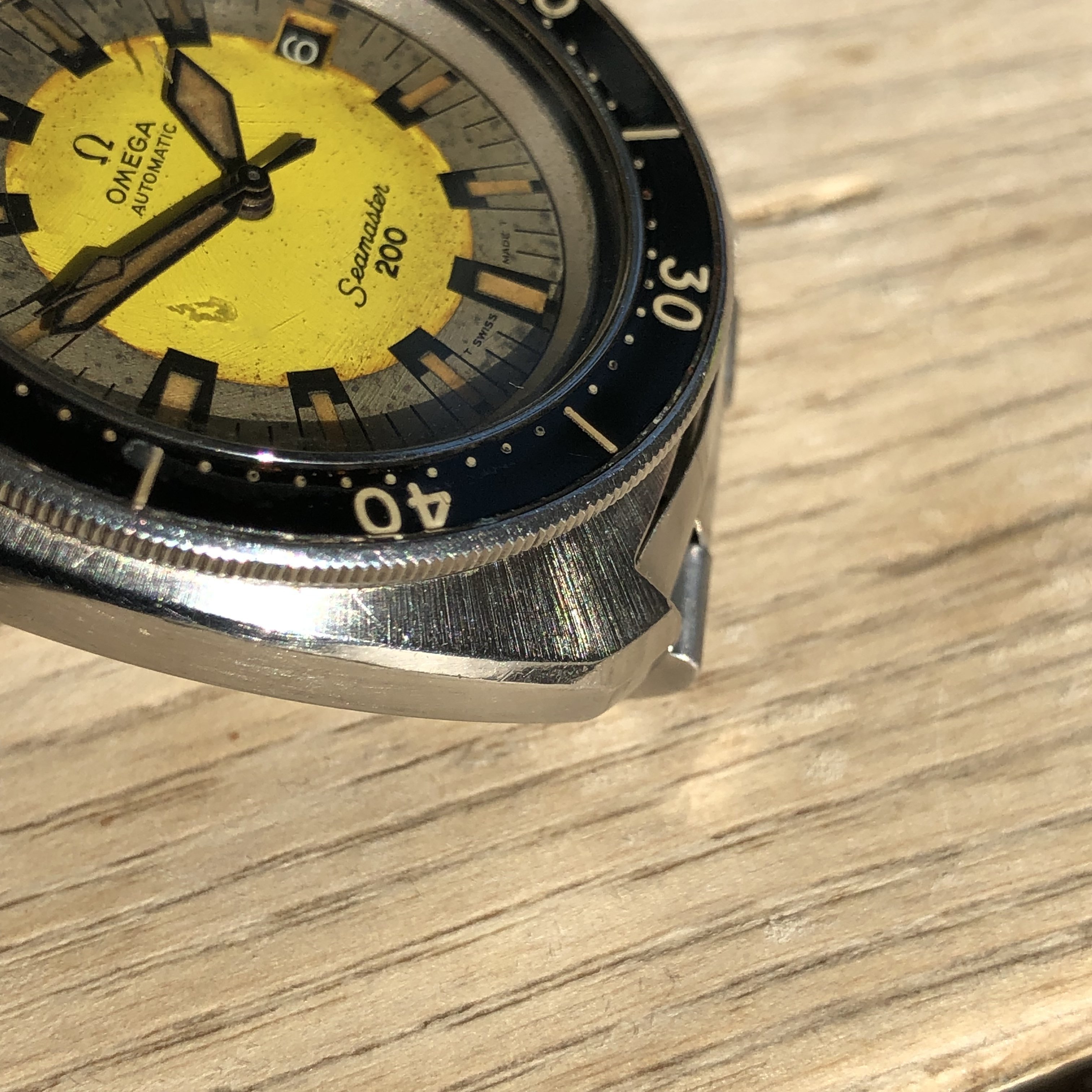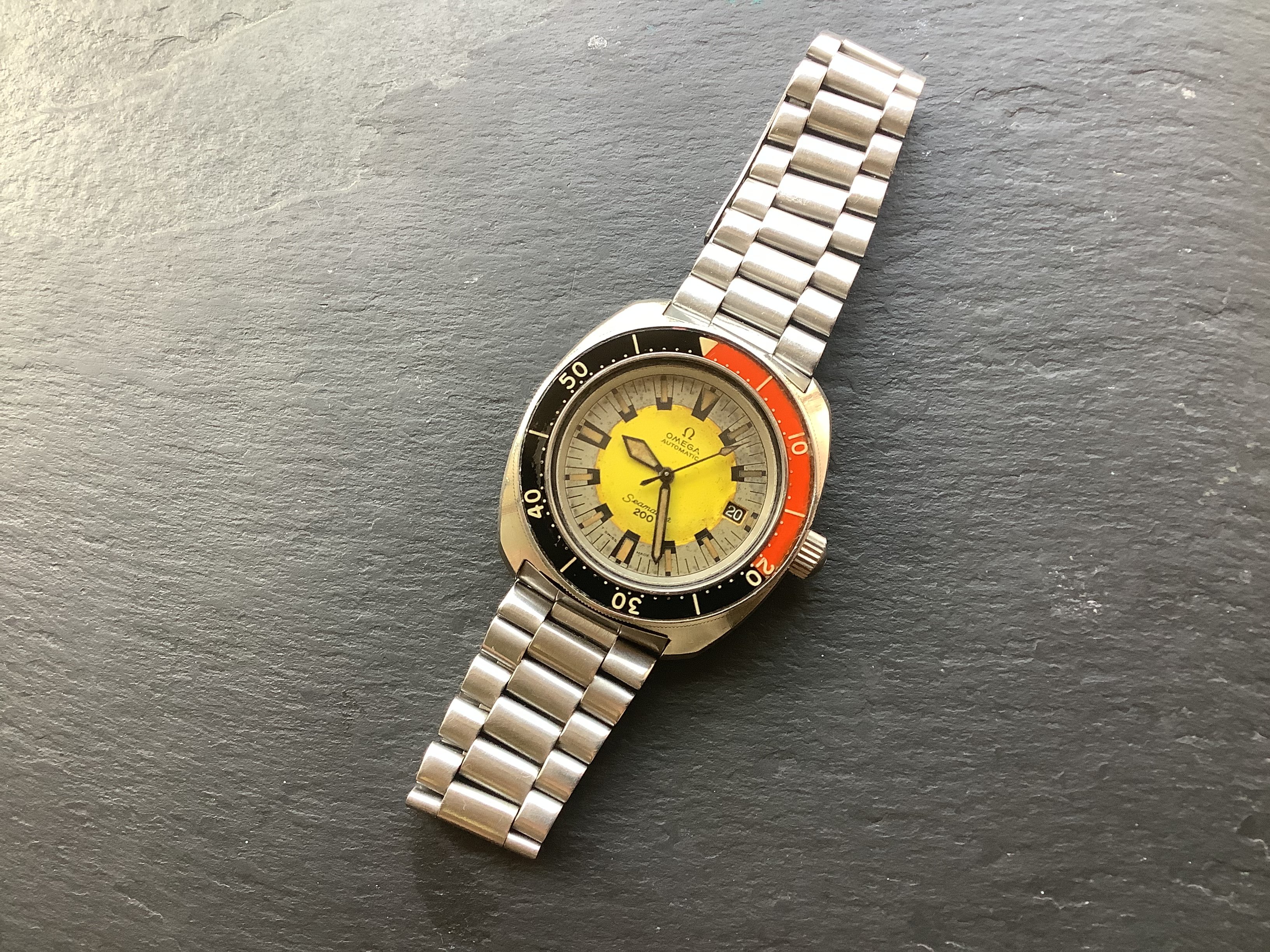 These come up for sale relatively infrequently, only being in the Omega catalogue for a year or two in the early 70’s. Even less common are examples, like this one, that have an undamaged bezel and all original parts.