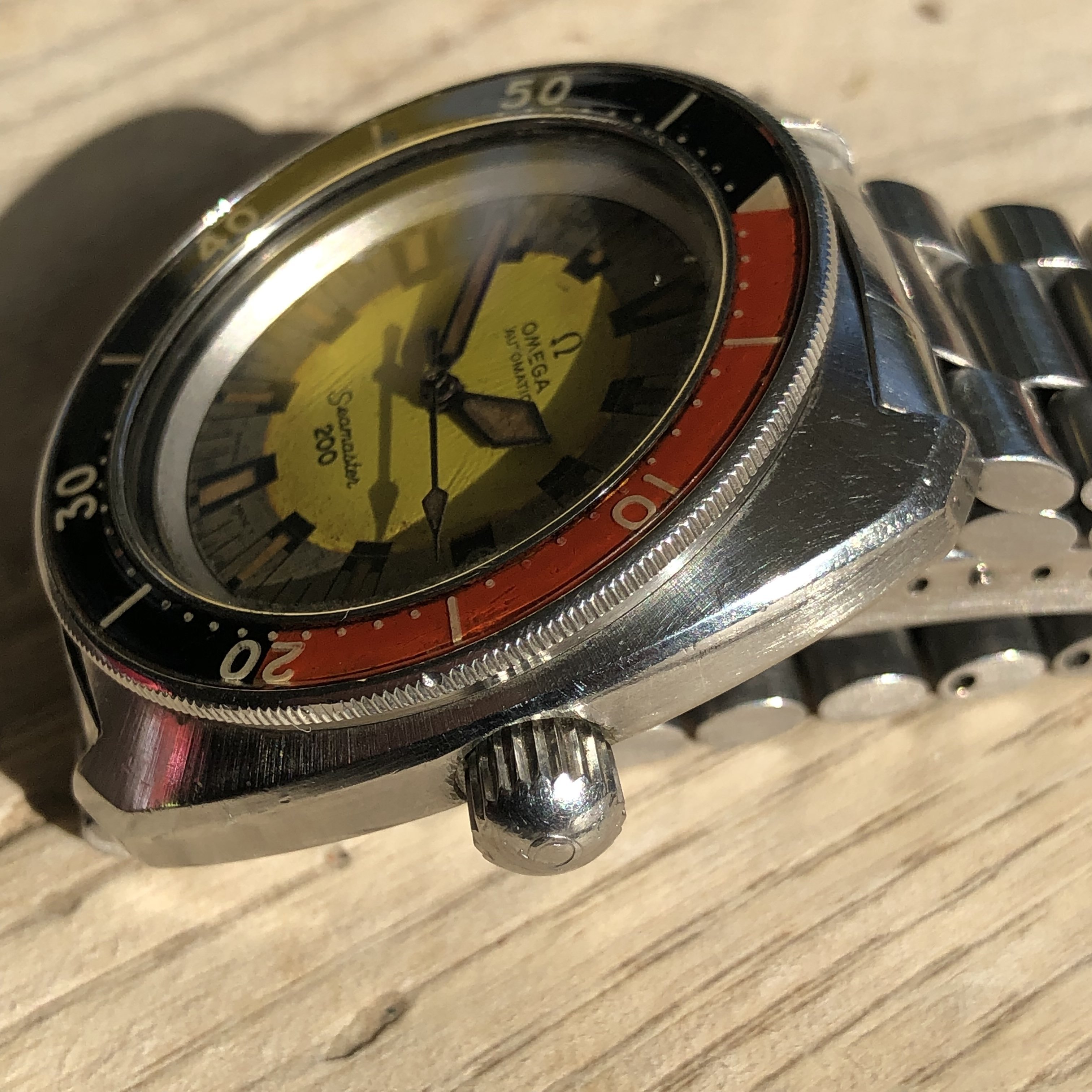 To the best of my knowledge this one is as it left the factory, with original tritium dial and hands that have aged to a lovely dark caramel colour, the dial has some staining and ageing. The original bezel is in good condition with no major damage, original early screw down crown and the original 1170 bracelet with 631 end links. The case still shows its original brushed finish and is, I believe, un polished.