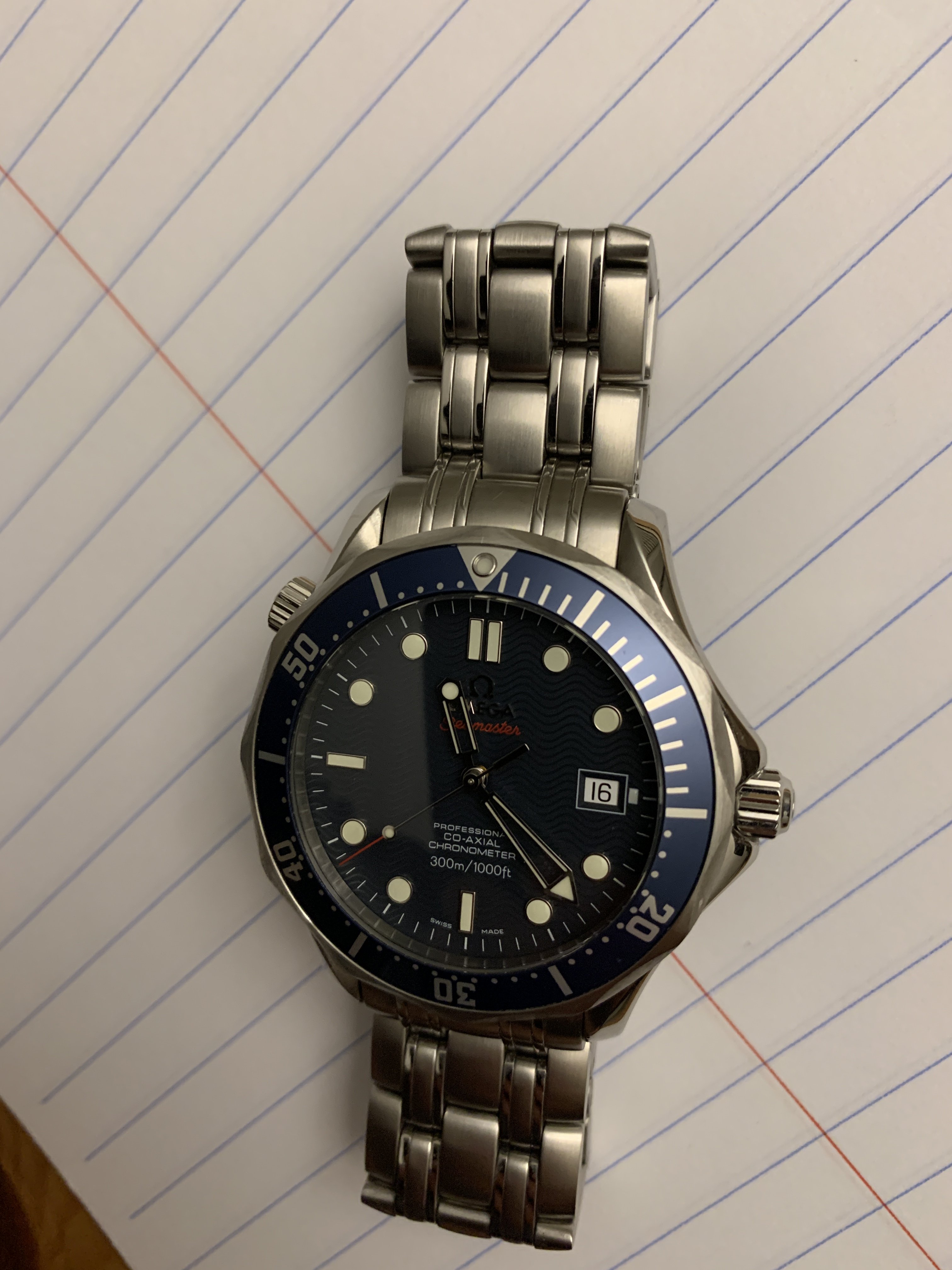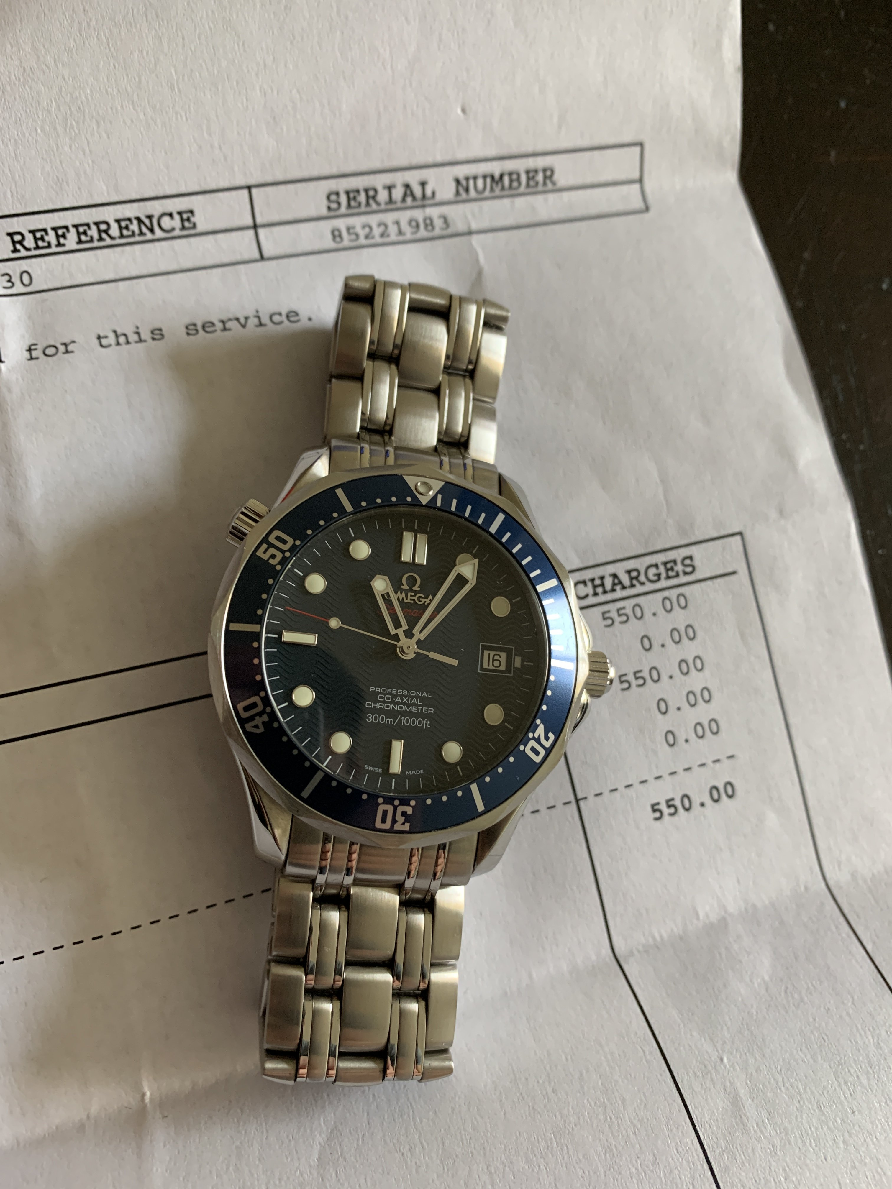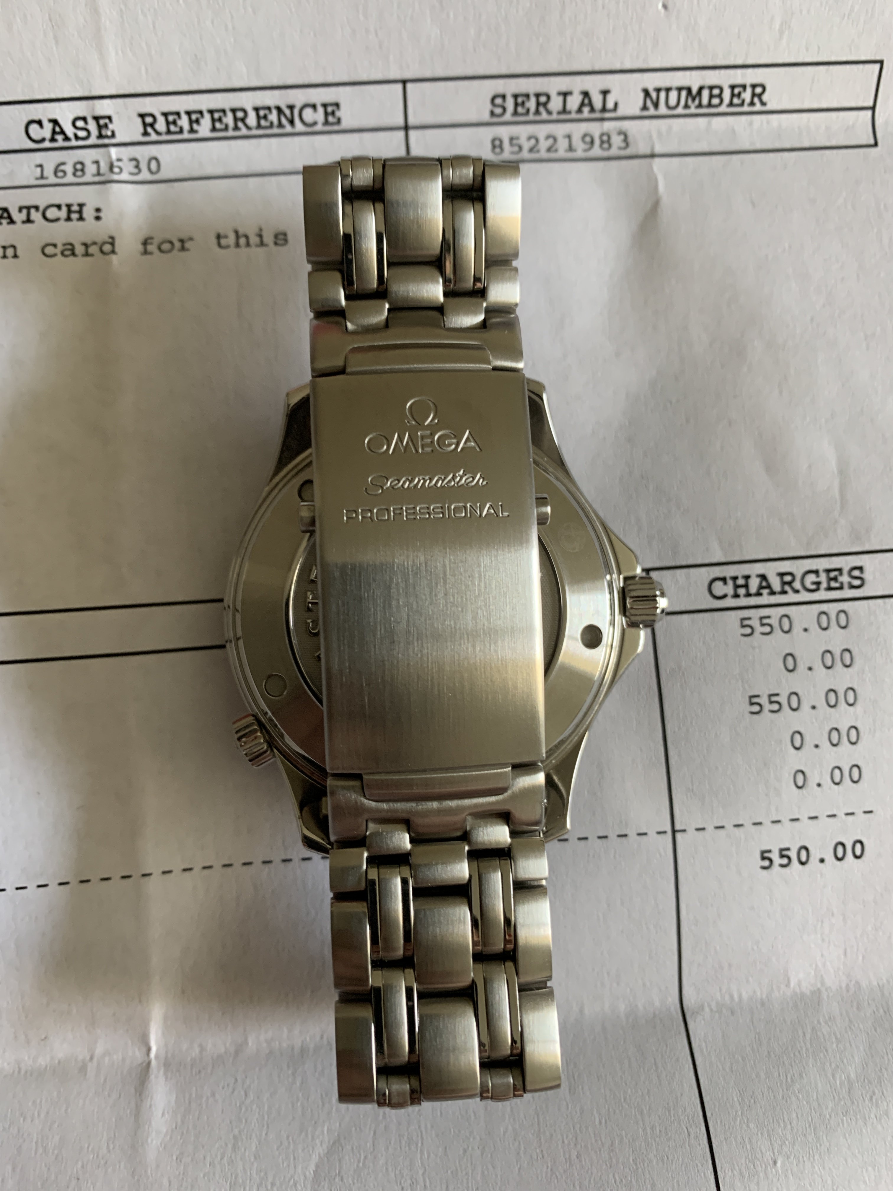 Included is the watch, with a red Omega service pouch, and service paperwork and service payment receipt from last year. No extra links, and no red box, and no warranty papers/cards/instruction booklet. See image below for # of links it's currently equipped with.