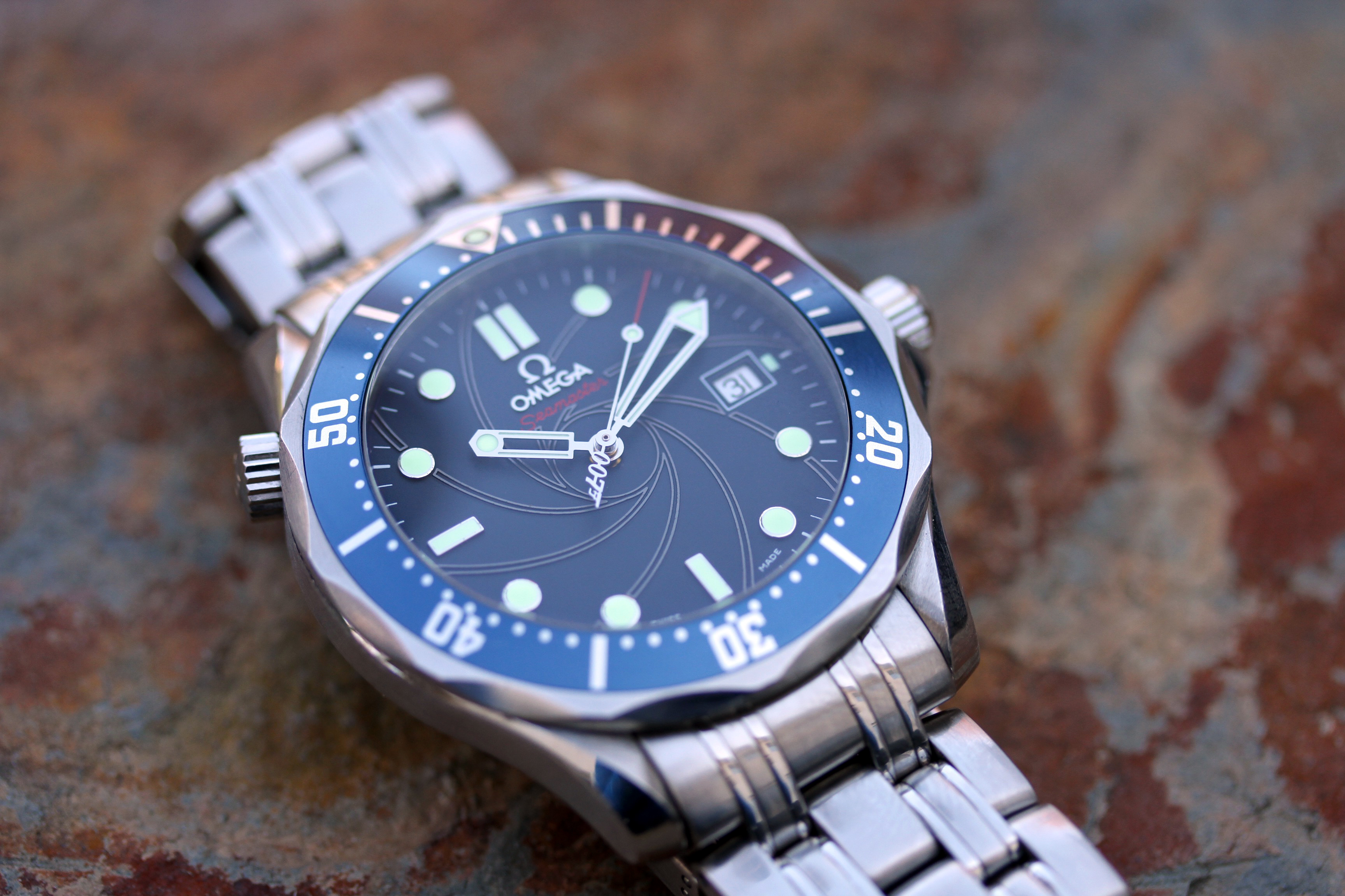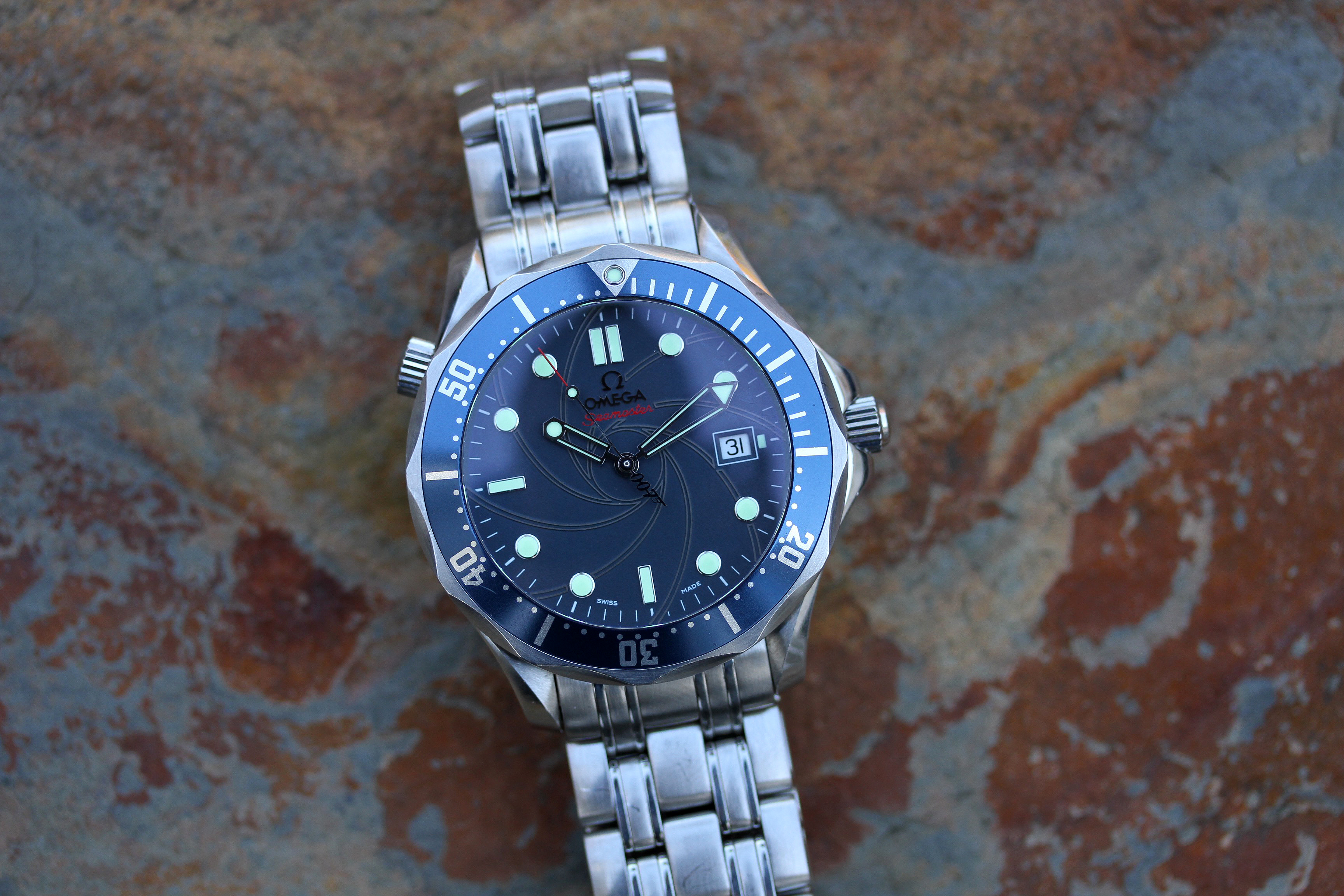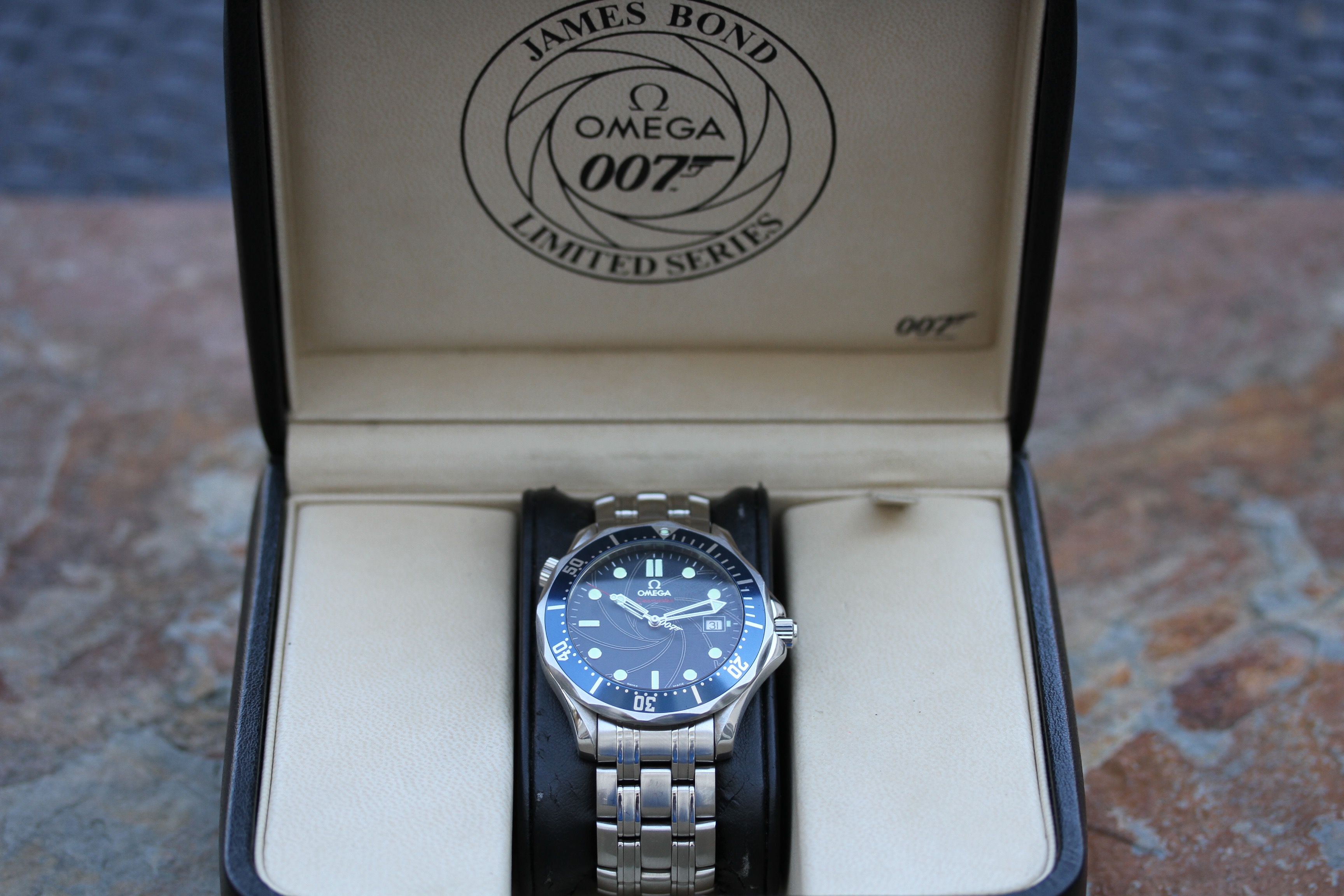 Watch comes with original Omega 007 box, but no other accessories or boxes or papers.