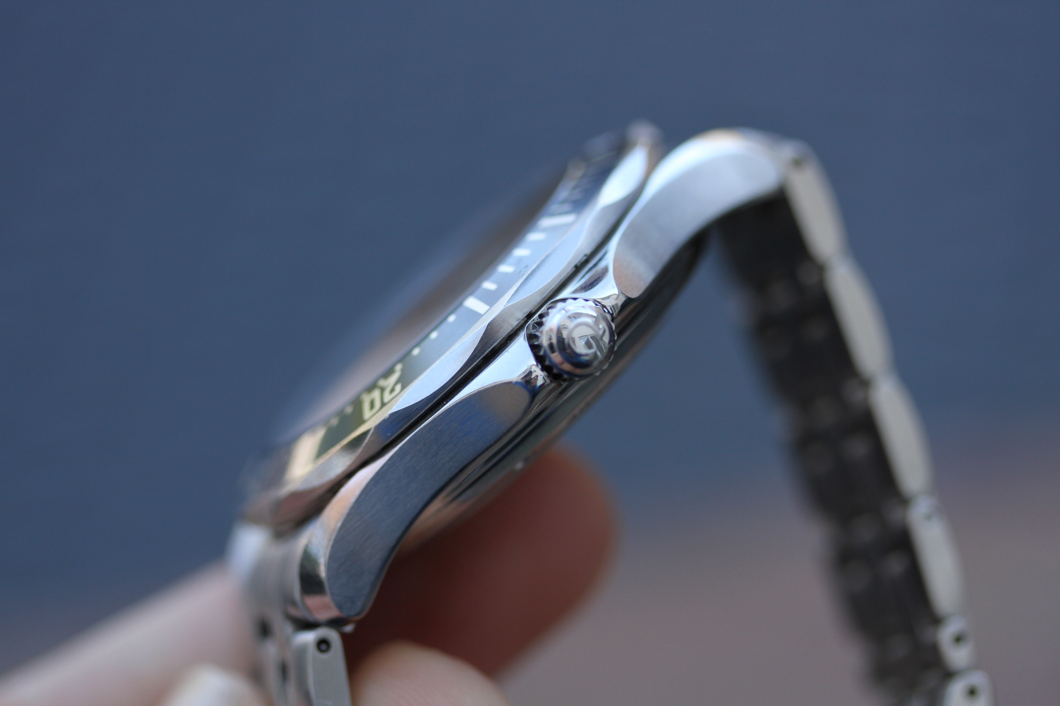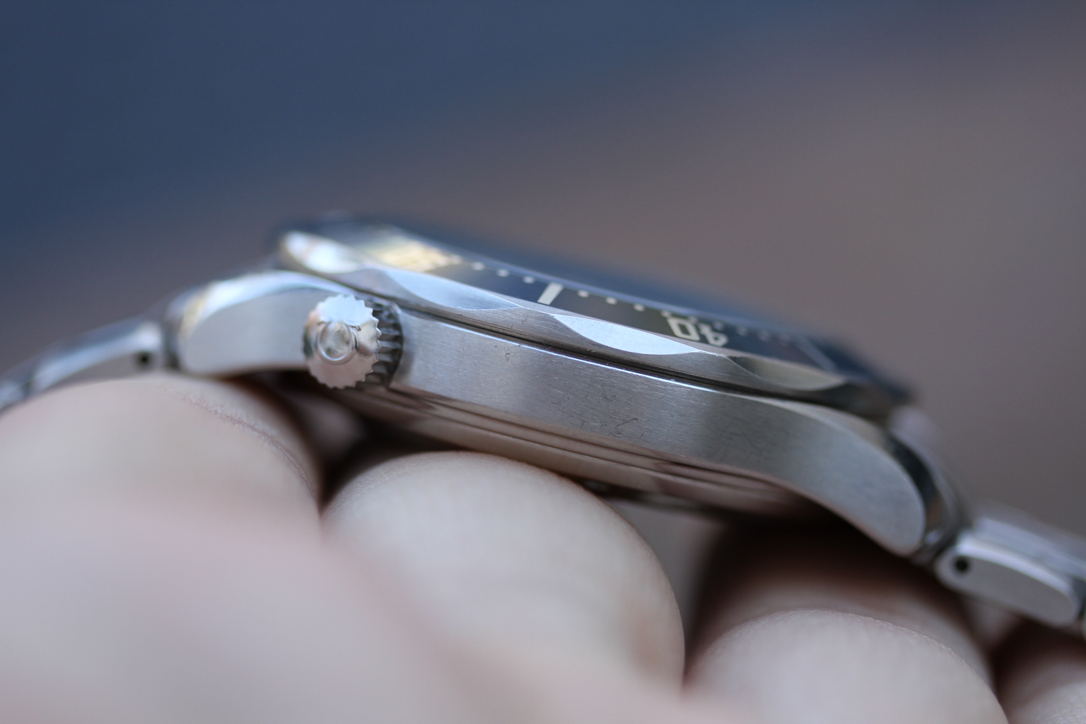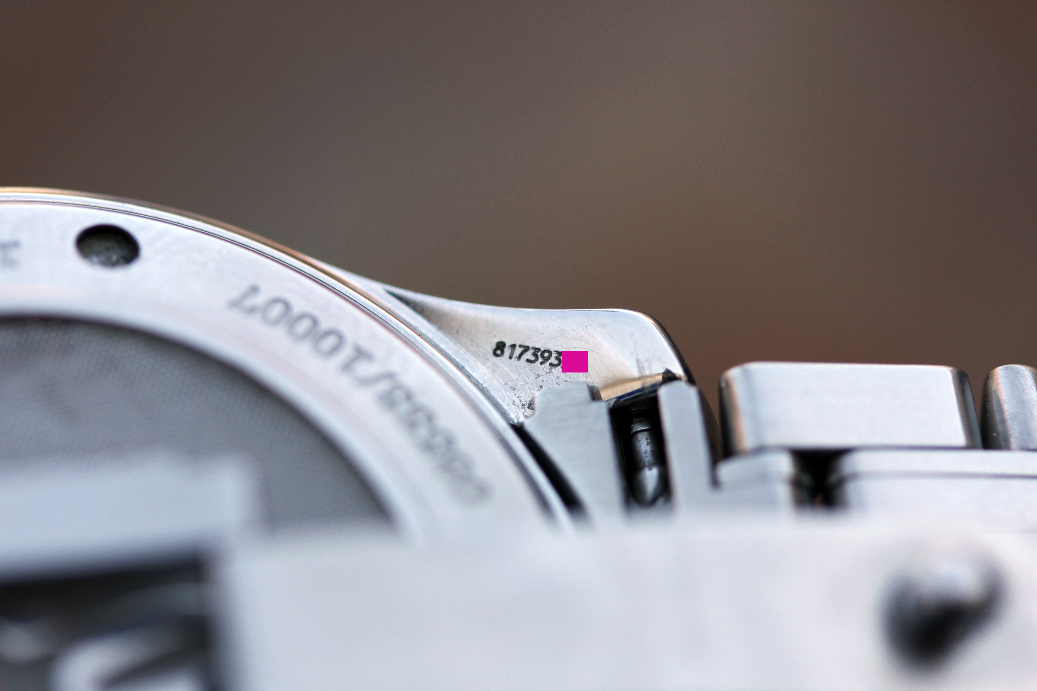 Excellent condition with no major dings or dents. Appears to be unpolished with original factory finish. Serial number and red dot are fully intact and clearly visible. This watch has never been opened since it left factory.