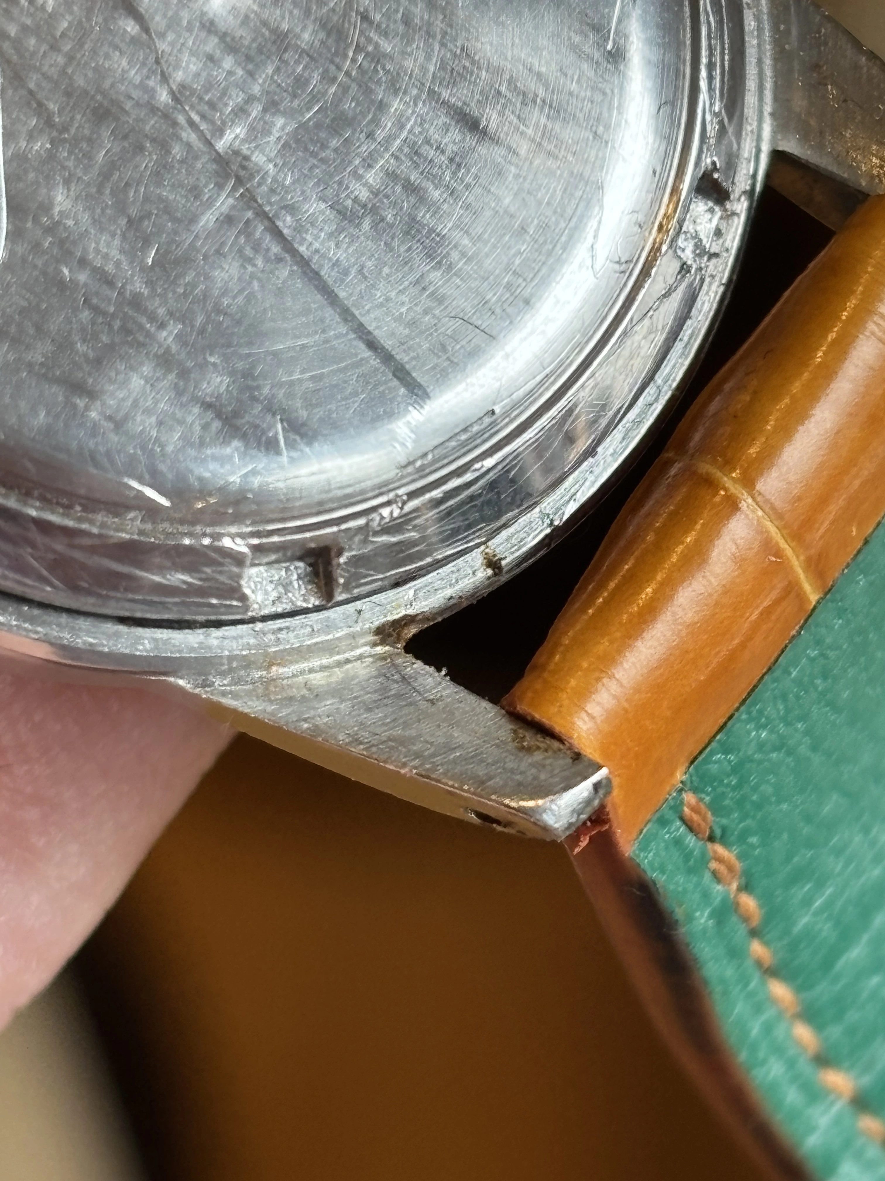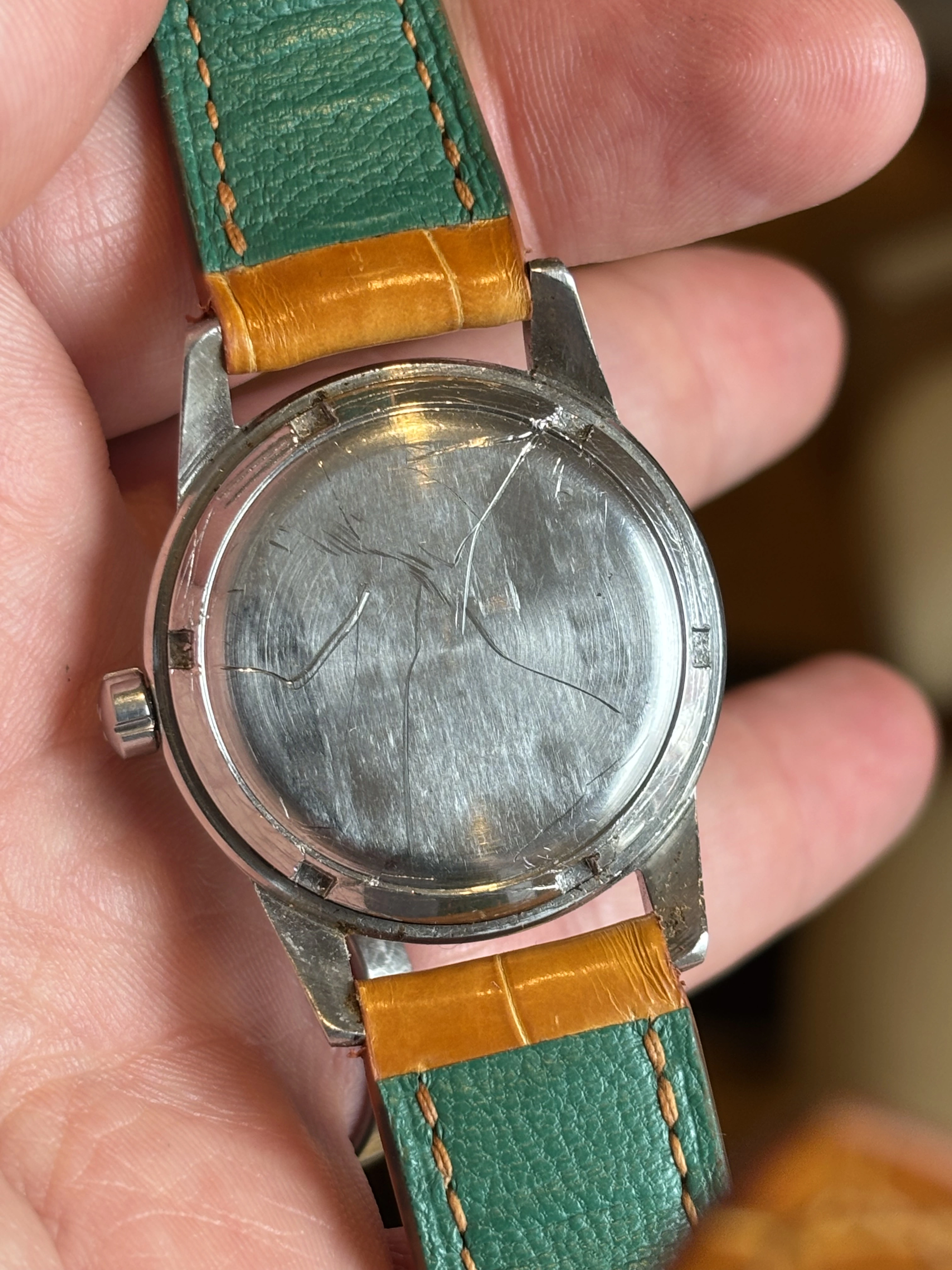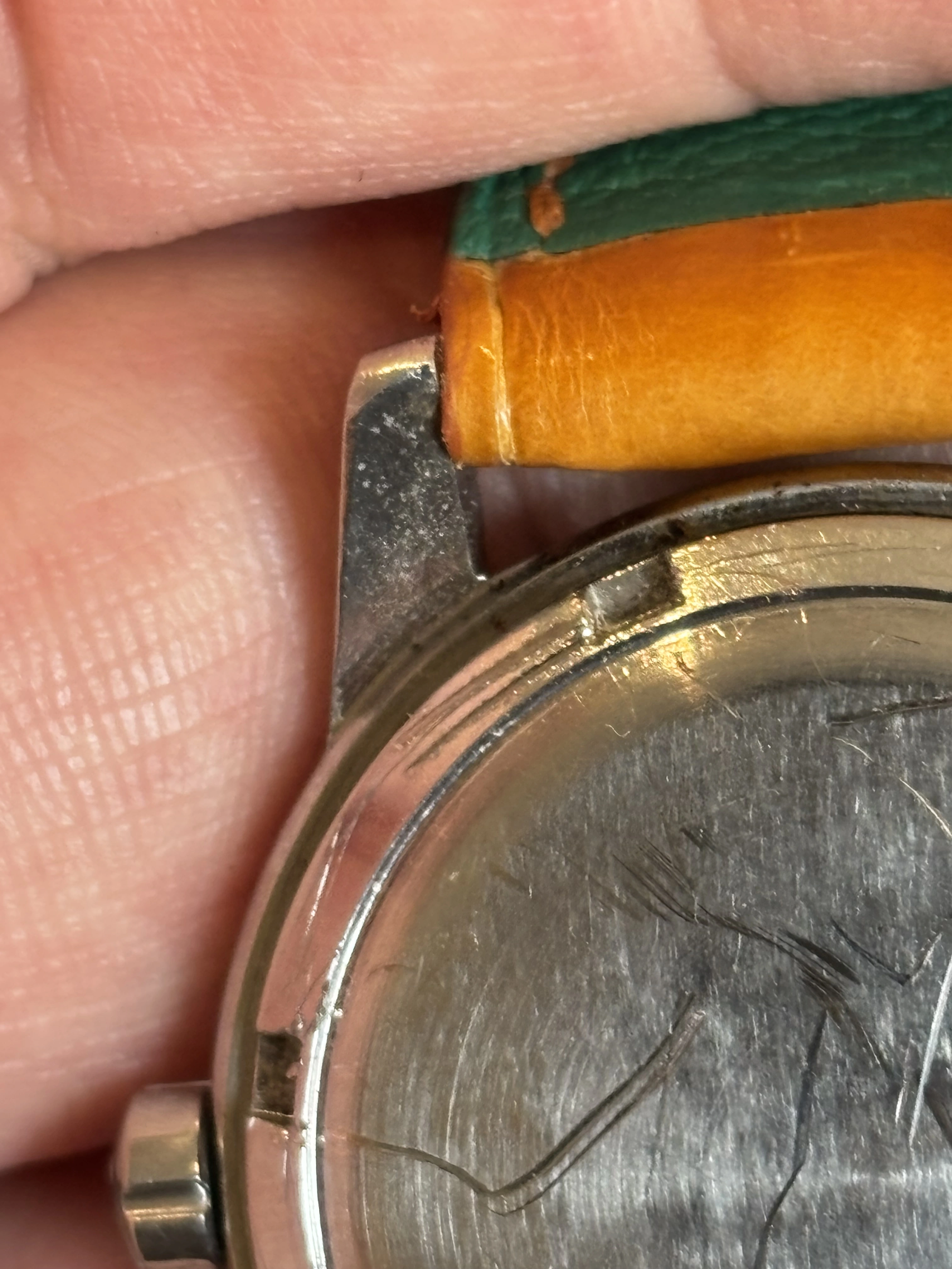 The watch is all original down to the crystal, in very good condition with some surface scratching on the caseback and back of the lugs. There's some dirt in the scratches but it comes off with a toothpick; I don't think it's pitting but I'm pricing that in just in case.