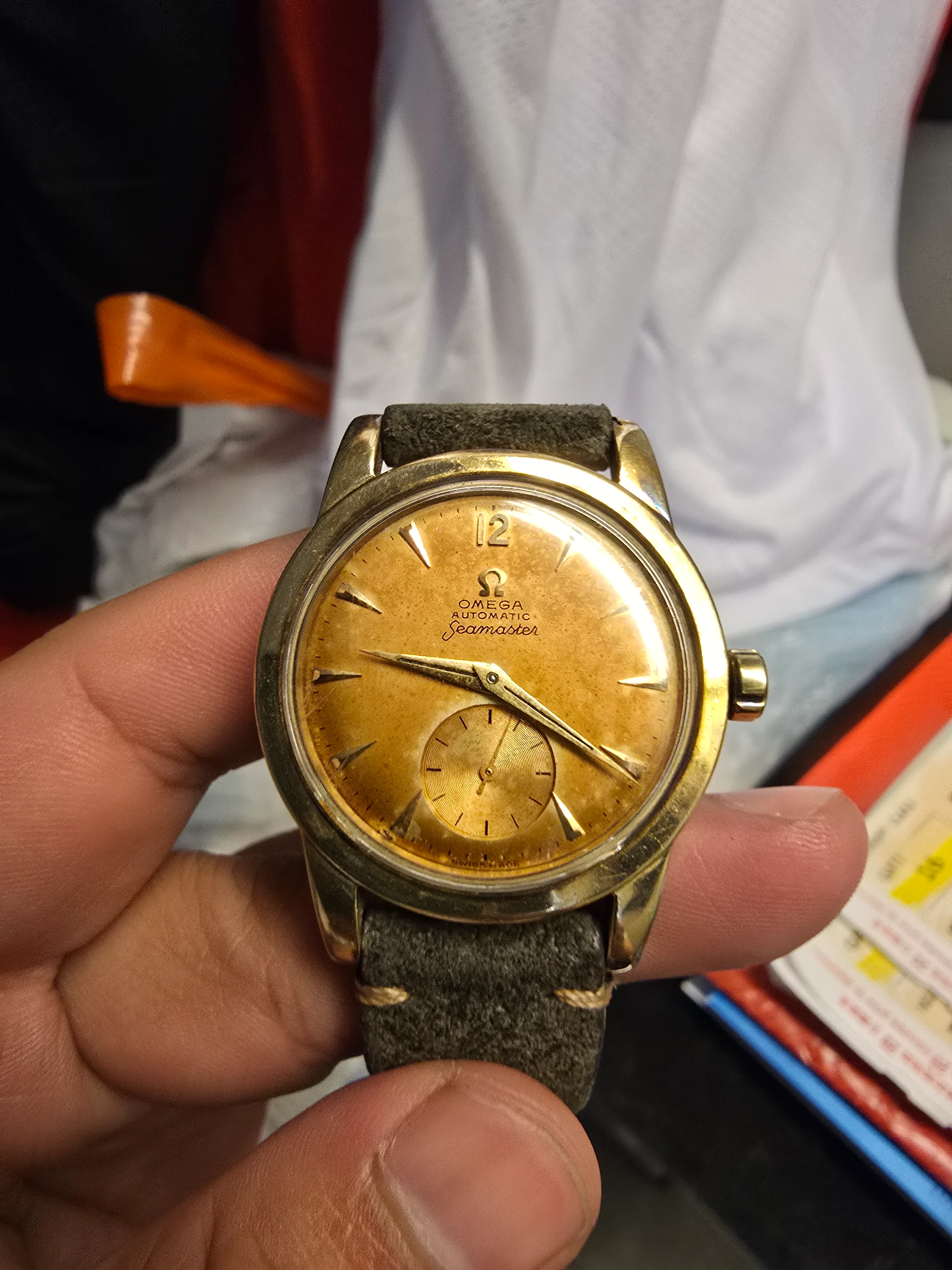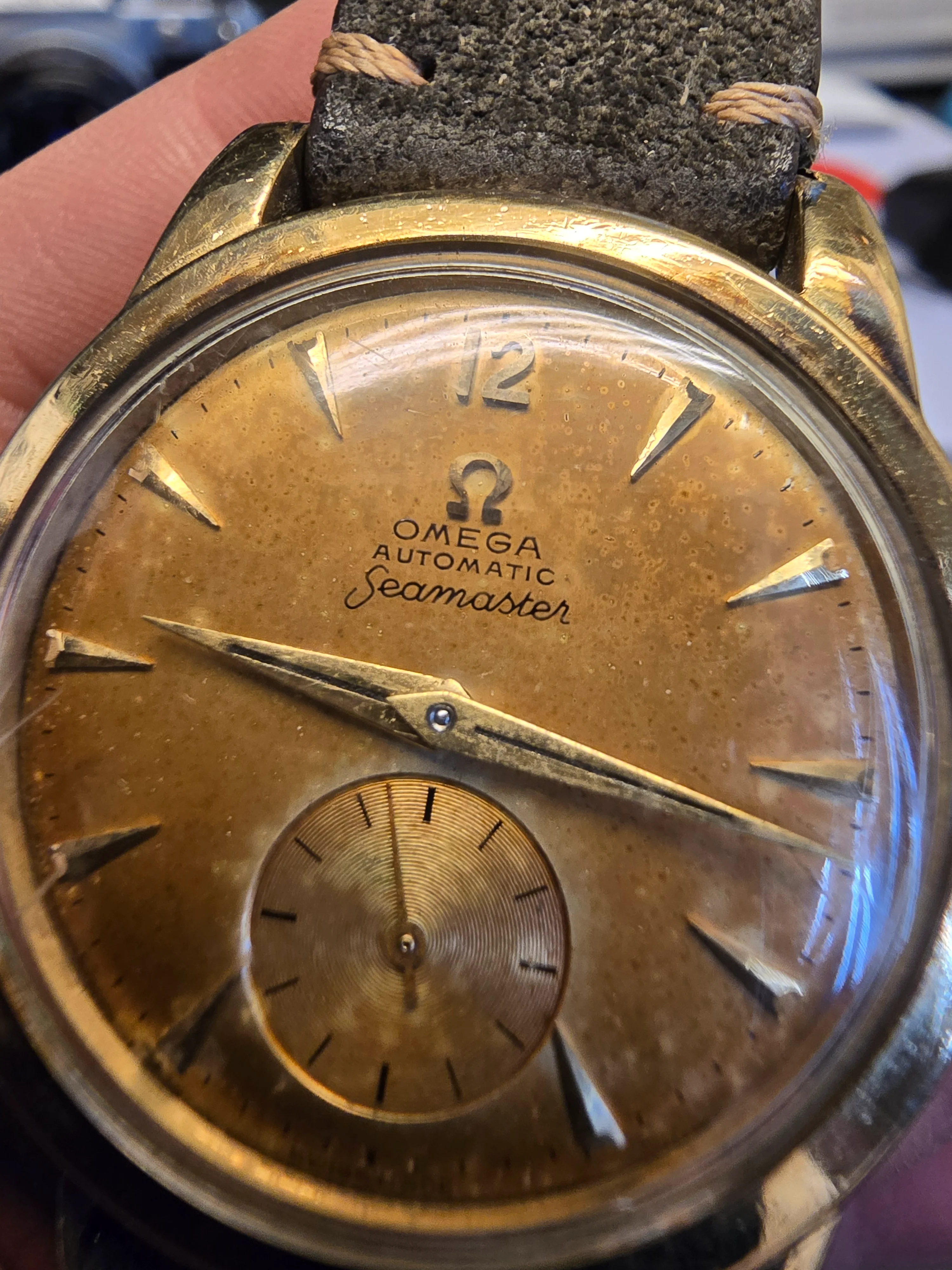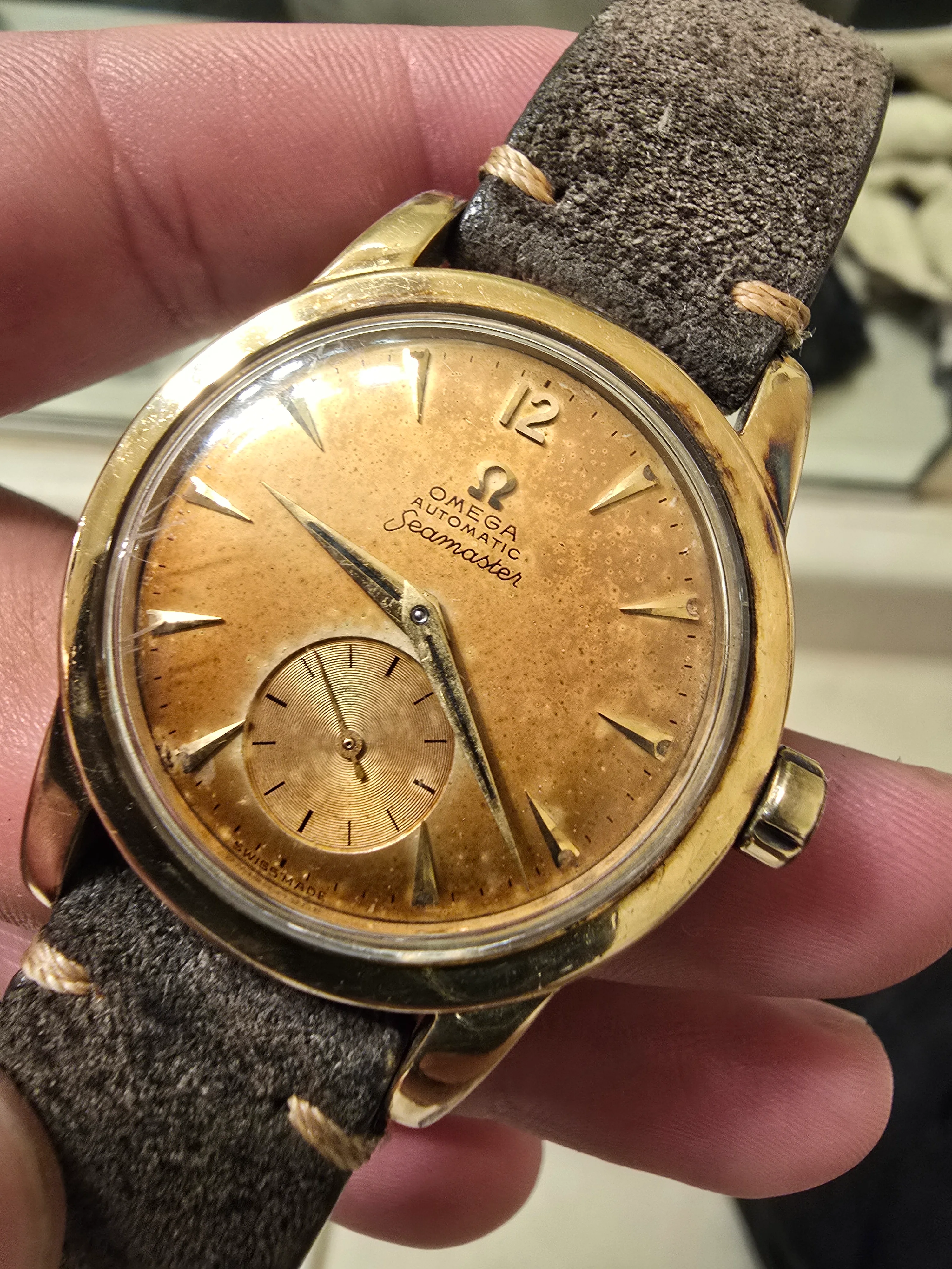 I'm sellimg a beautiful 1953 Omega Seamaster with a stunning caramel-color patina on the dial. (Original dial, no repainted)