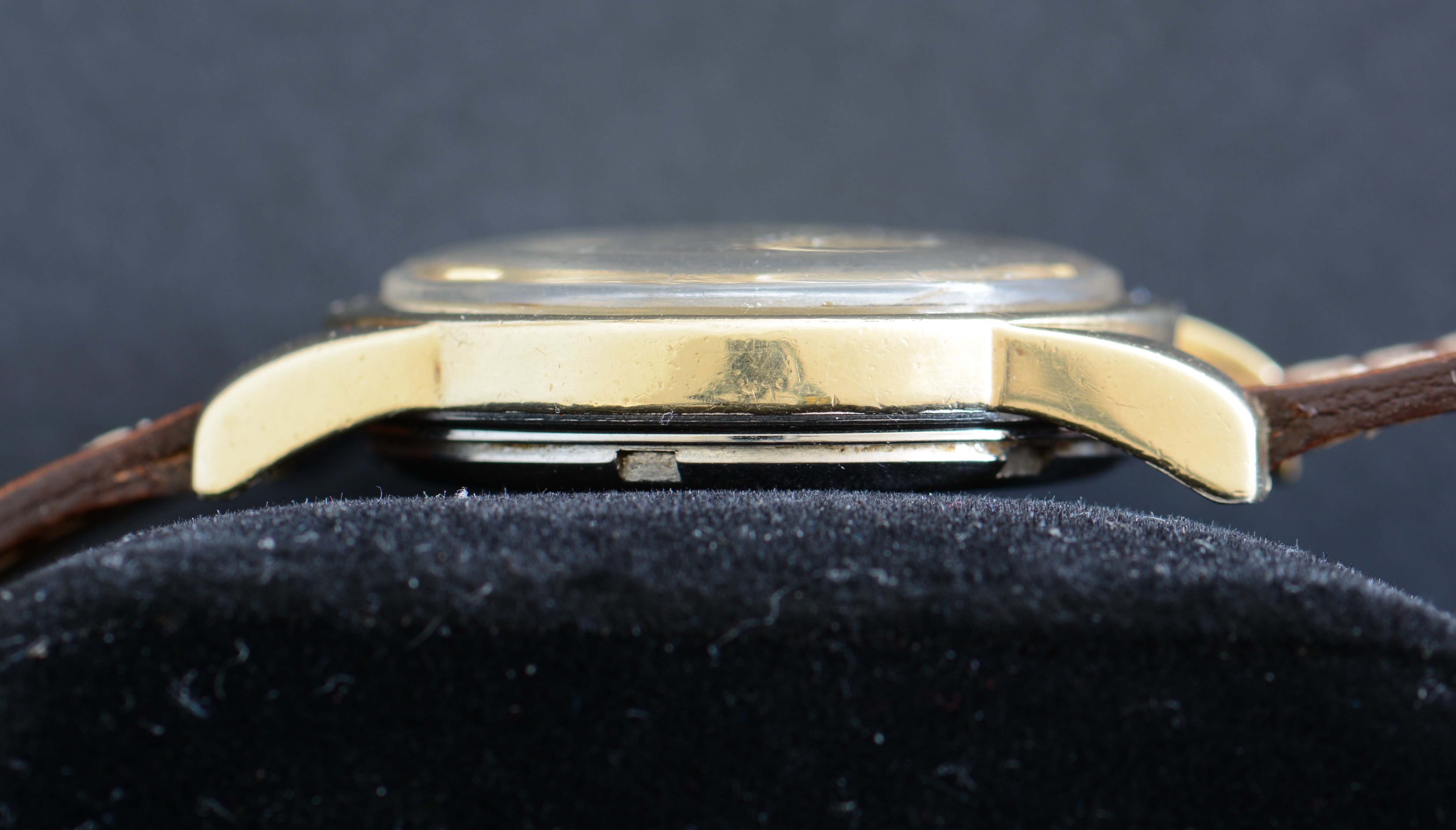 Case: Gold cap over stainless steel. It's an honest case with signs of age such as dings and scratches here and there. It has probably seen a polish in the past. However, note that not all 2577 had sharp facets to begin with. The gold capping is largely in place with exception of the tip of the upper right lug (see picture). A competent gold smith could probably fix that easily. It never bothered me as it's not visible when you wear the watch.