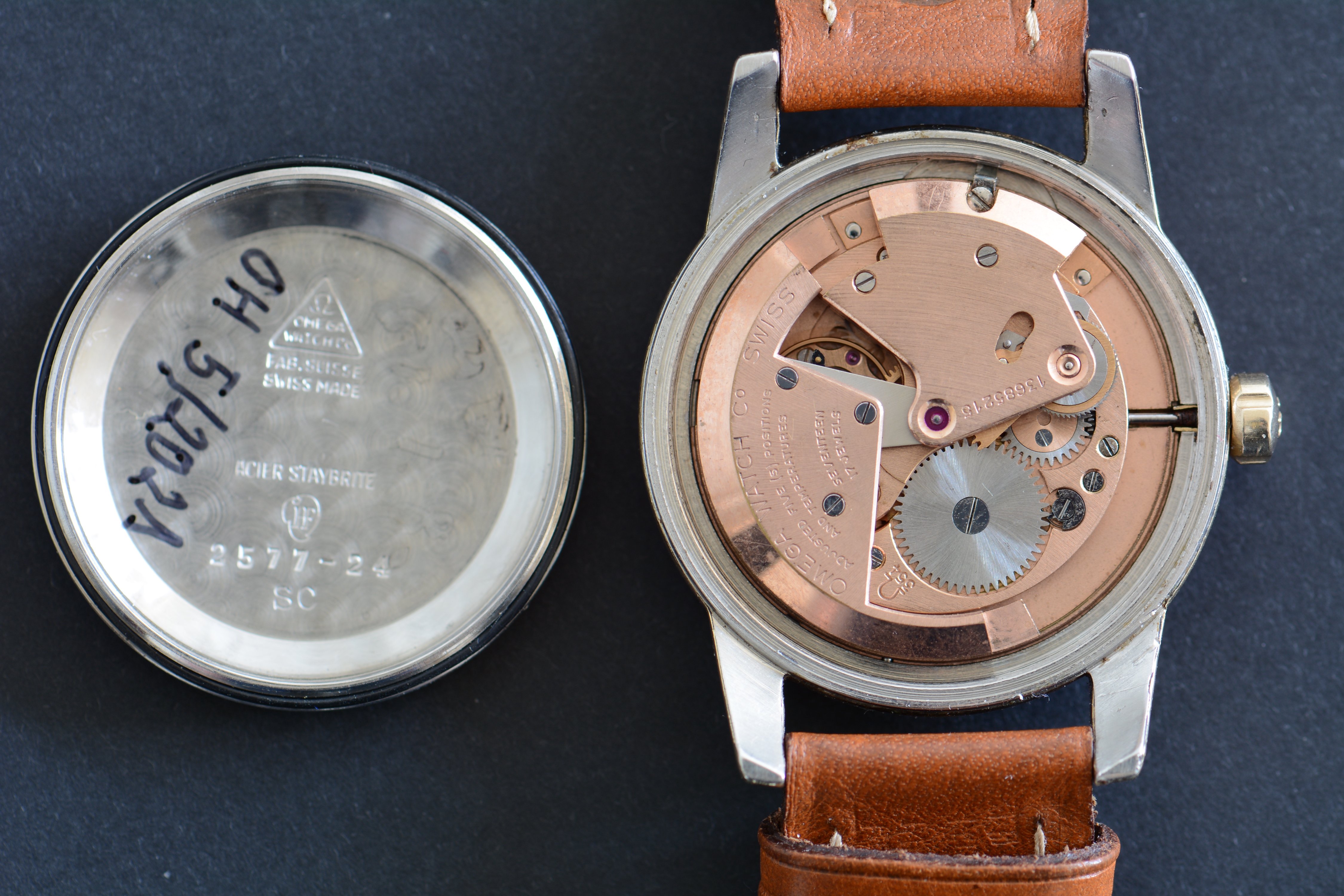 Movement: Calibre 354, chronometre certified, the serial number dates the watch to approx. 1952. It was not serviced during my possession nor do I know the service history. It sets and winds well, but runs with a lag of 1-2 mins per day. A full service may be required before regular use.