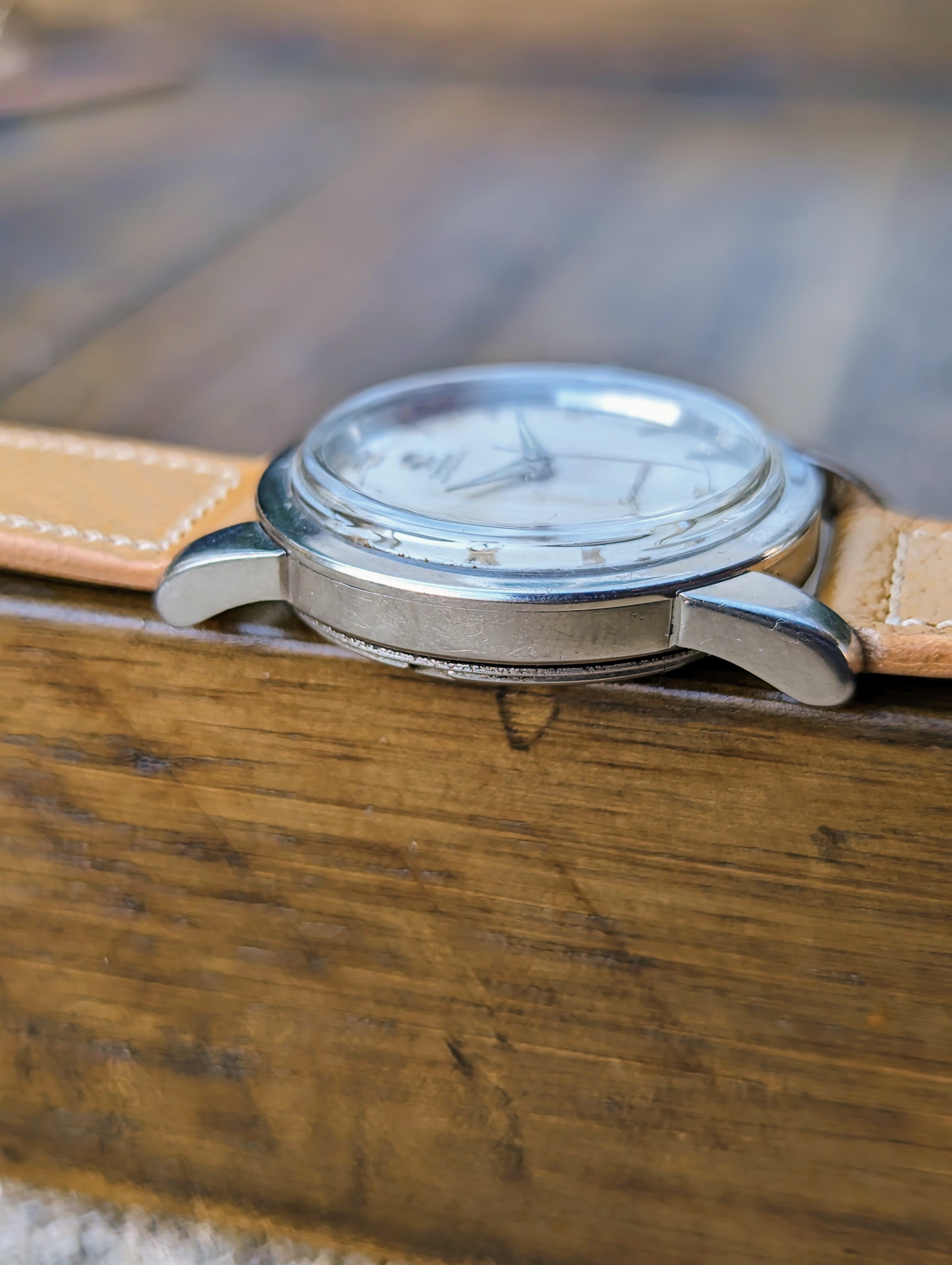 DIAL: The original dial is in good shape. The dial has a linen esk texture to it. It sports silver, applied, Breguet numerals at the 12, 3, 6, and 9 position with alternated dagger style hour markers. The lume is beautiful, full and puffy and has taken on a wonderful patina to it. The lume on the hands has aged a shade or two lighter than the dial.