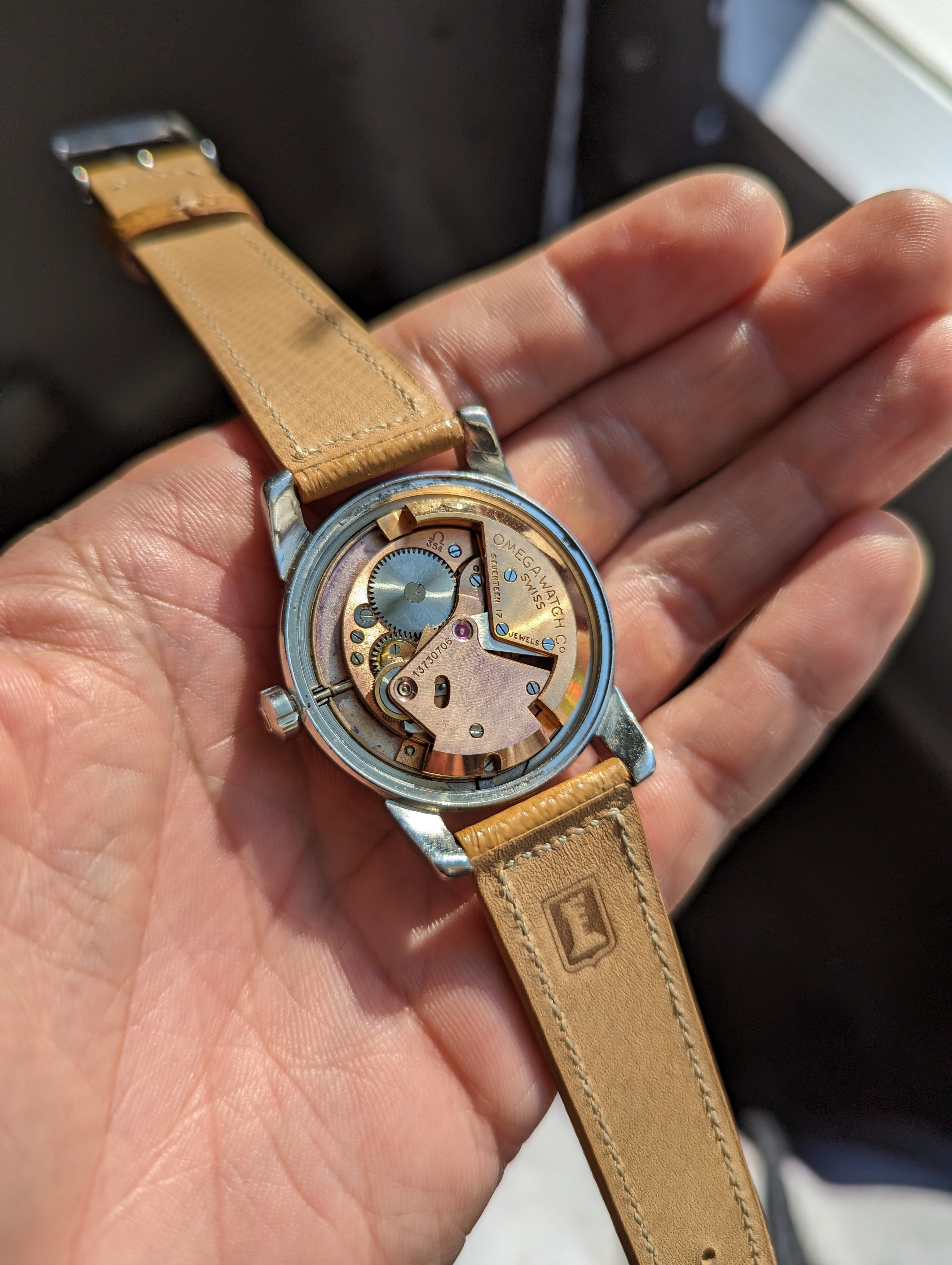 MOVEMENT: Omega bumper automatic caliber 354. The movement has just returned from service which cost $400. The invoice will be provided with the sale of the watch and will come with a 1 year warranty.