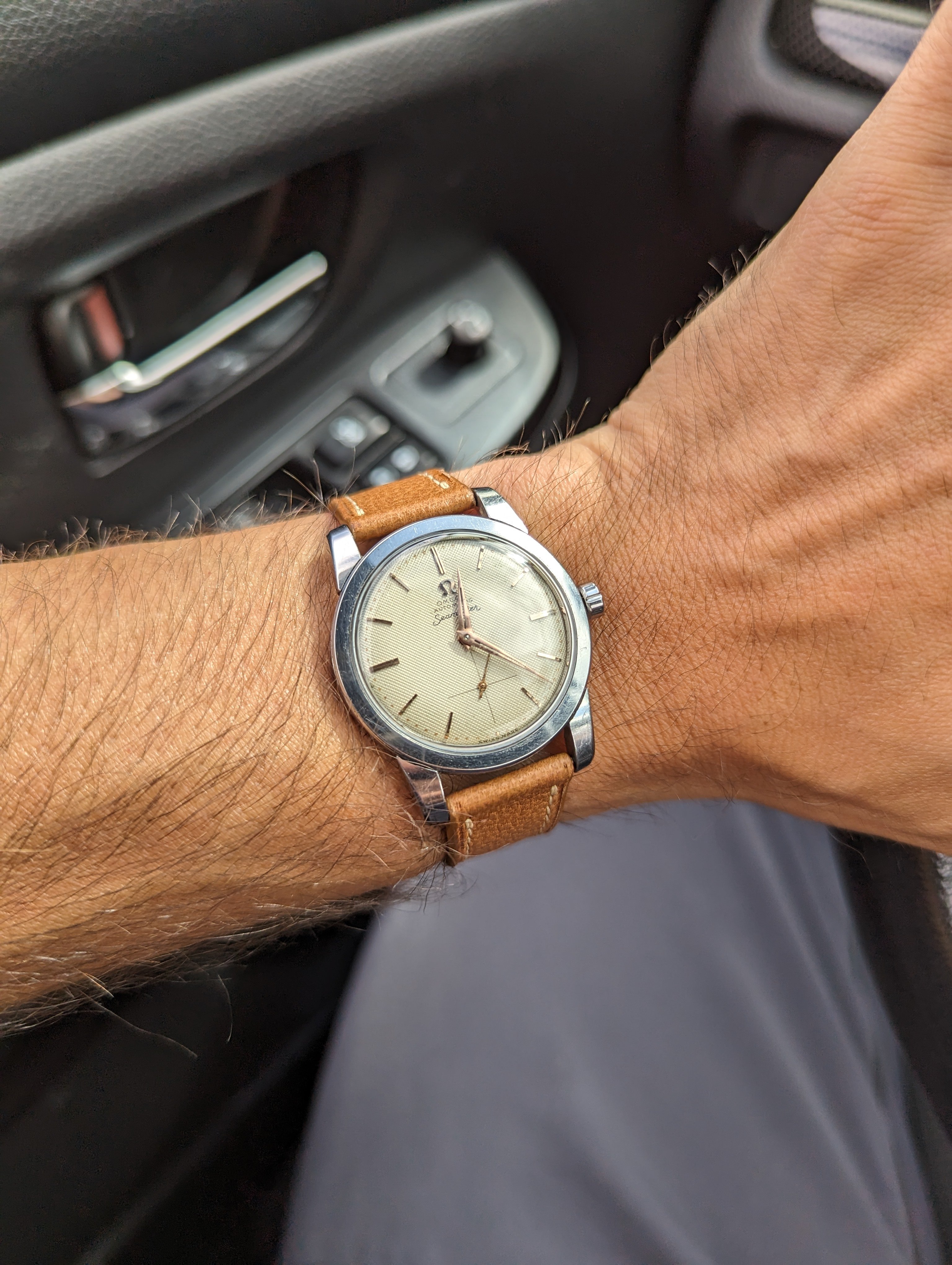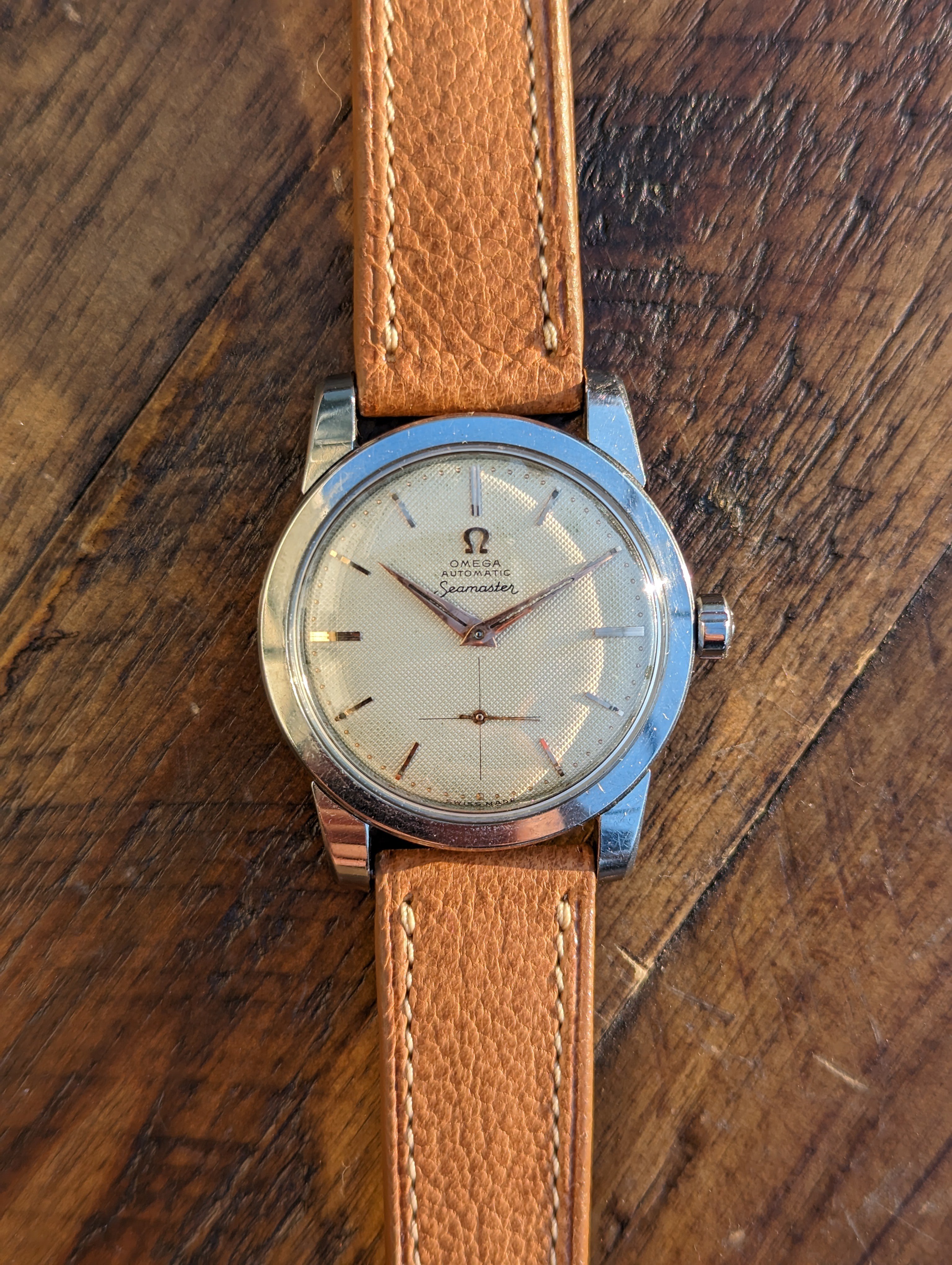 MOVEMENT: Omega automatic bumper caliber. Service history is unknown. The watch was placed on a timegrapher which illustrated that the watch is losing approximately 69 seconds per day and has an amplitude of 169. The watch can be serviced by a friend of mine who is a watchmaker as a hobby should the buyer be interested. Cost for service without parts is approximately $325. Please just let us know!