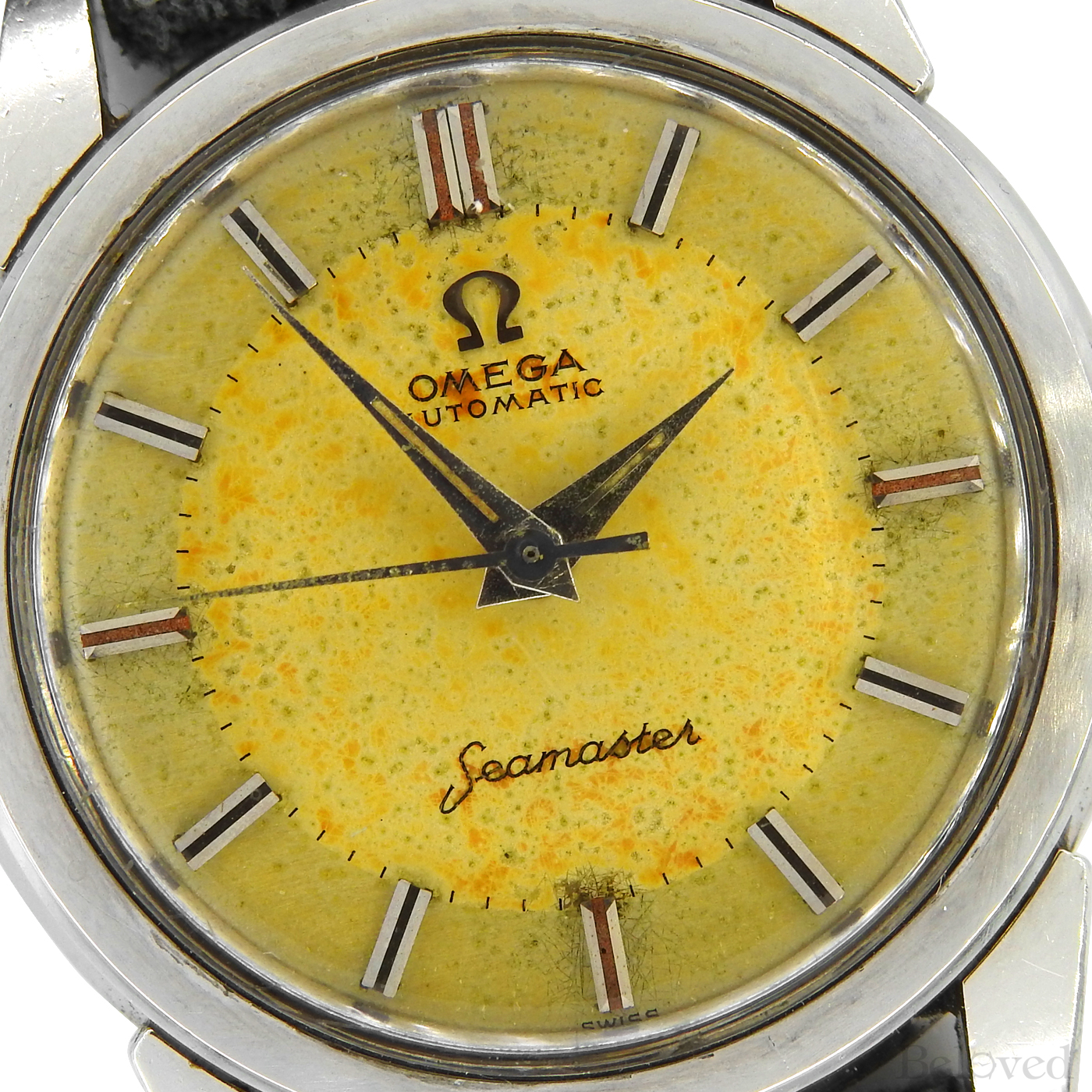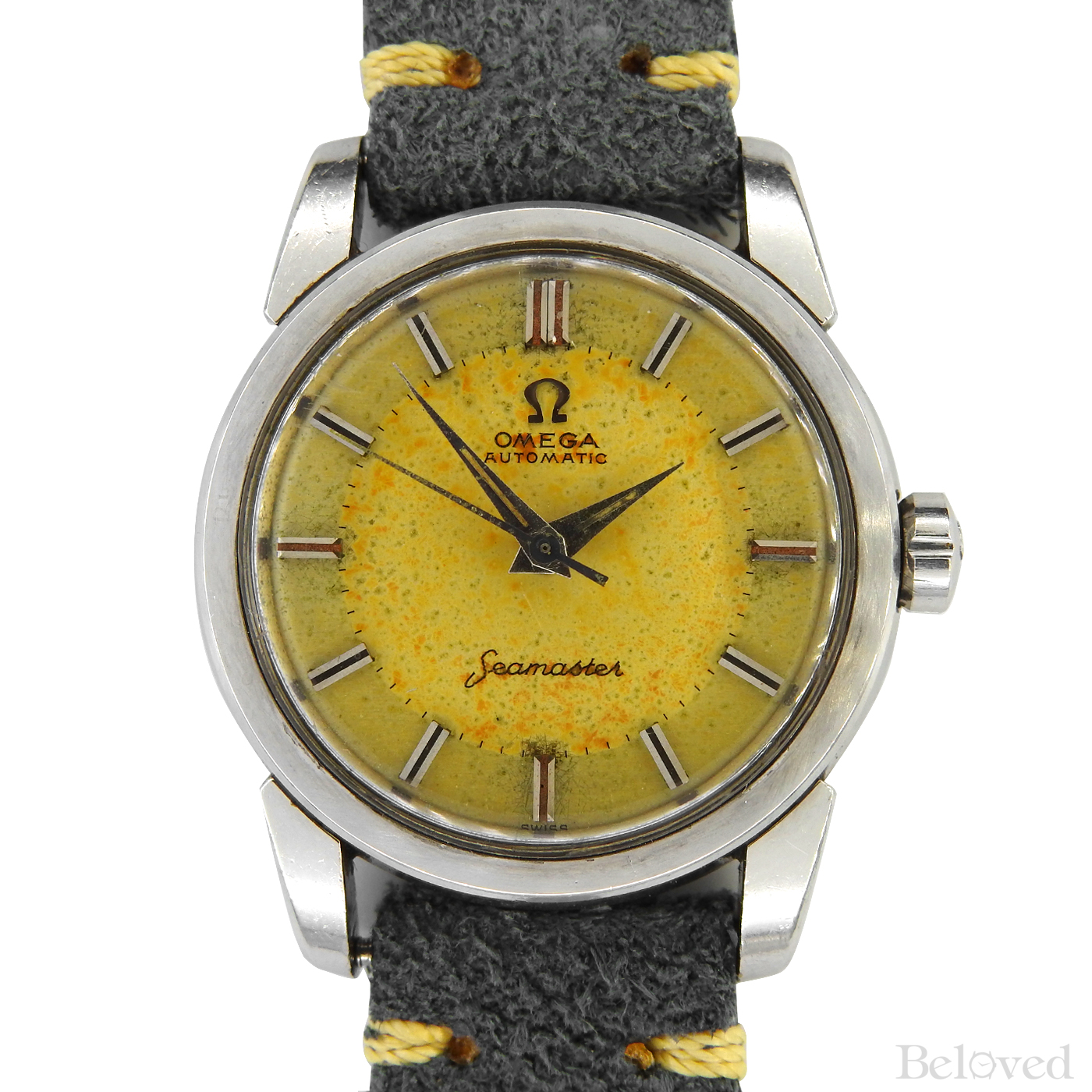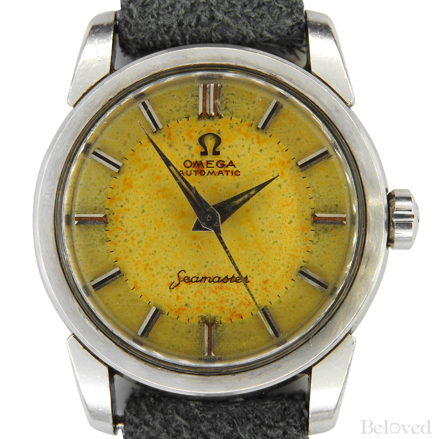 Posts 993 Likes 1,870 MPWATCH ·Aug 31, 2020 Produced in the year 1958 Tropical orange & yellow dial Unpolished case in excellent condition 32.5mm in diameter Powered by an automatic Omega Caliber 470 Original crown *Running and keeping time but requires a service. Not easy to wind. Easy to set. No warranty* $400 OBO Edited: Sep 12, 2020