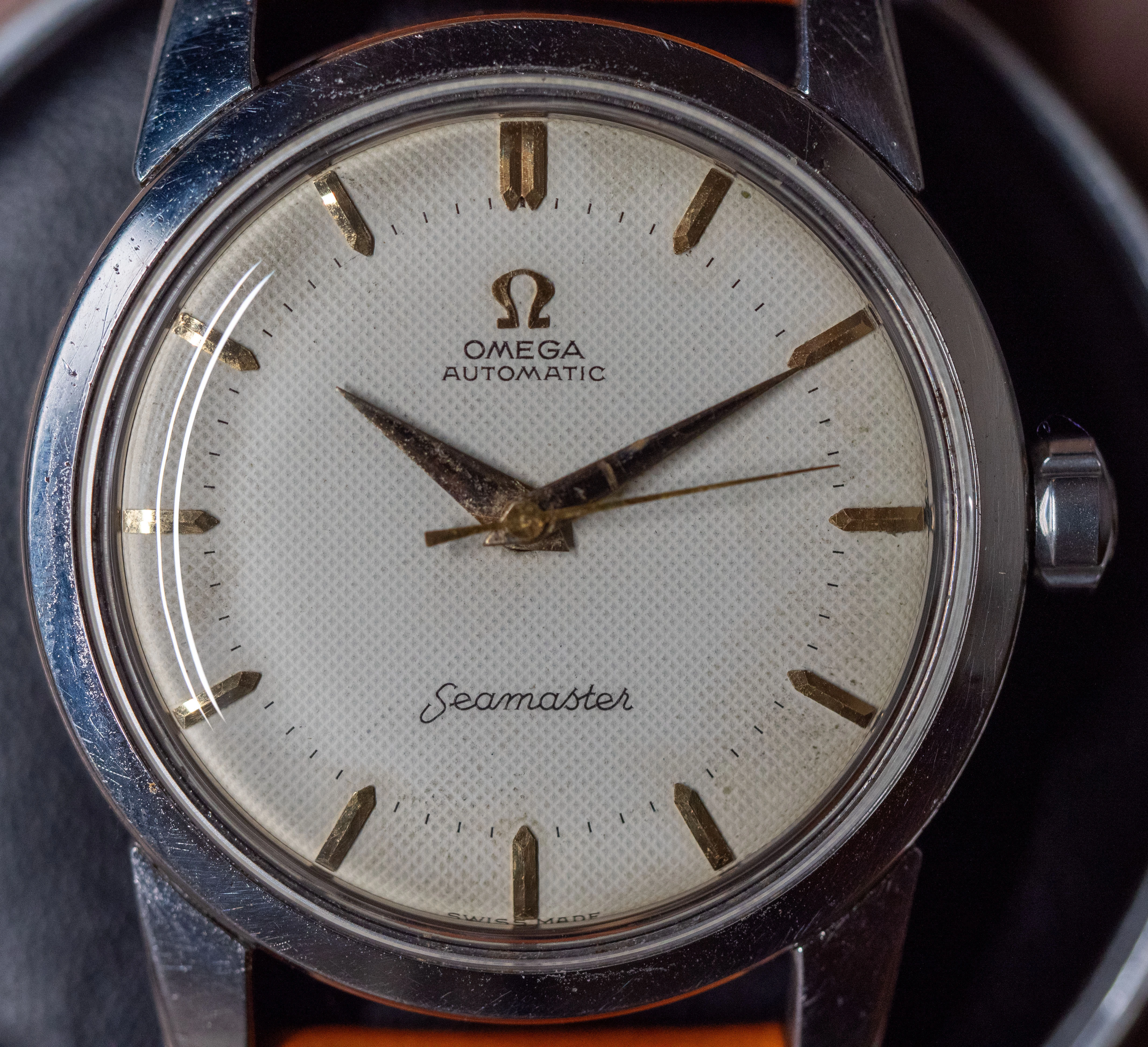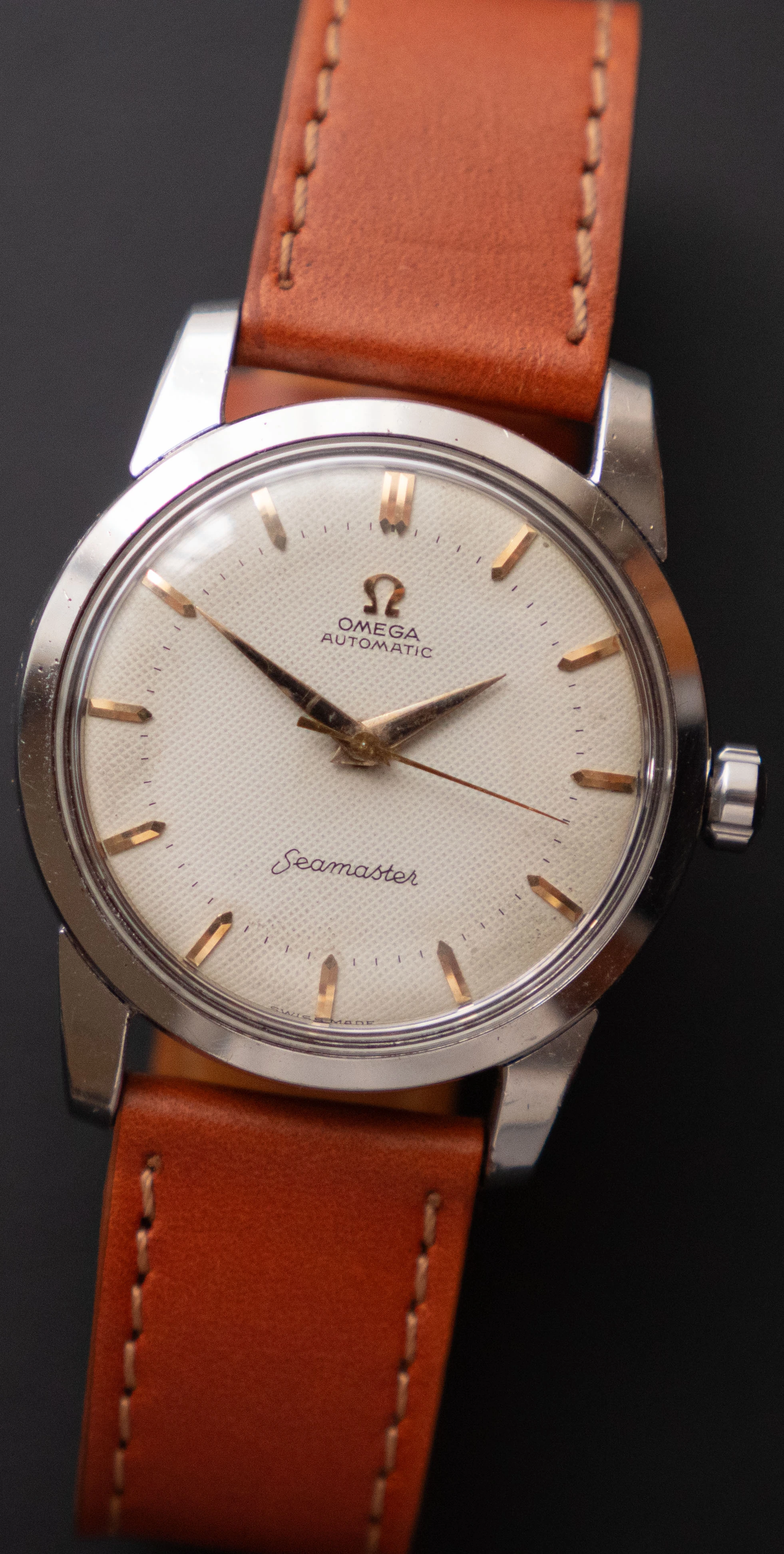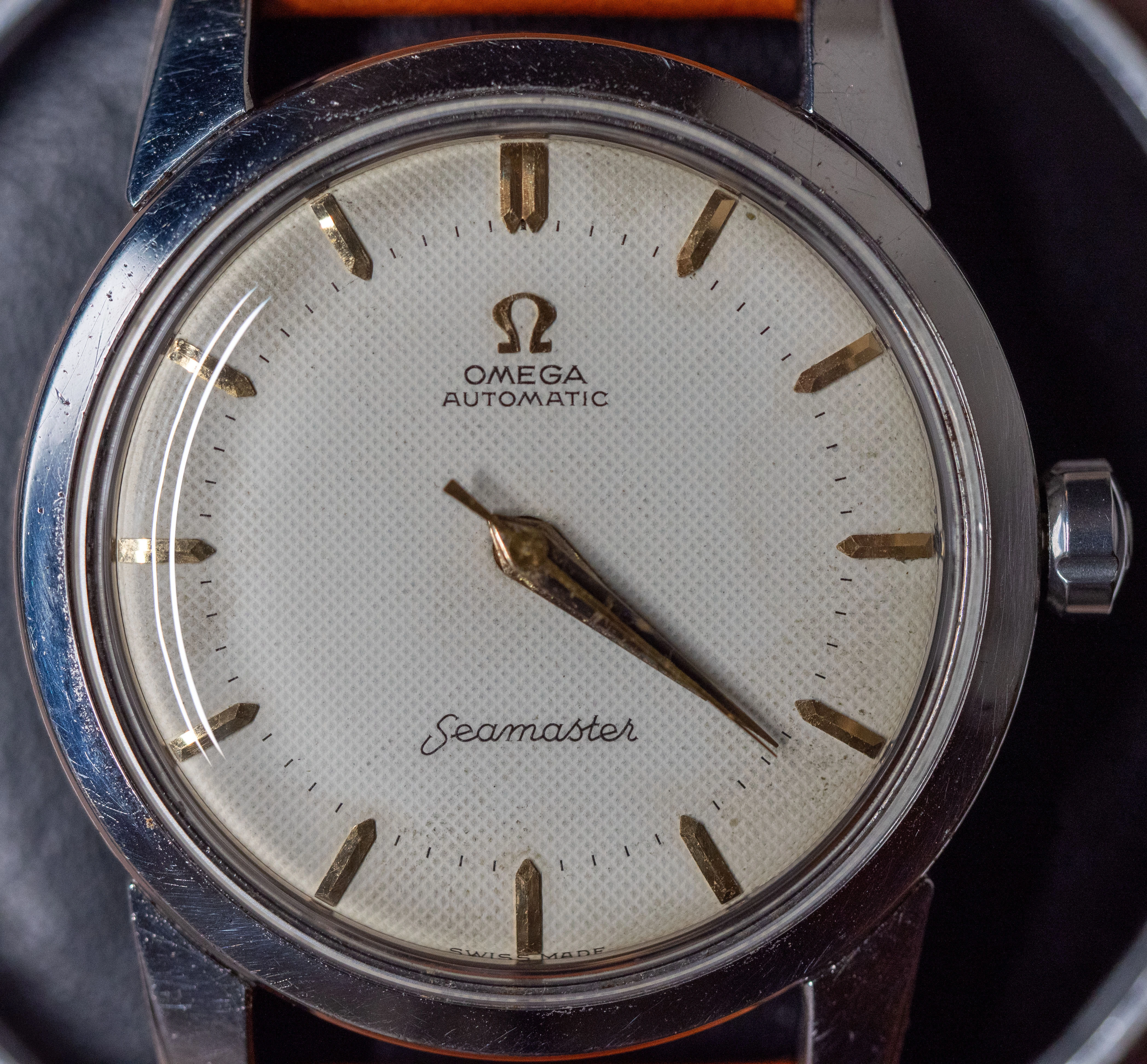 I am putting up for sale a nice waffle-dial Omega Seamaster powered by an automatic caliber 501.