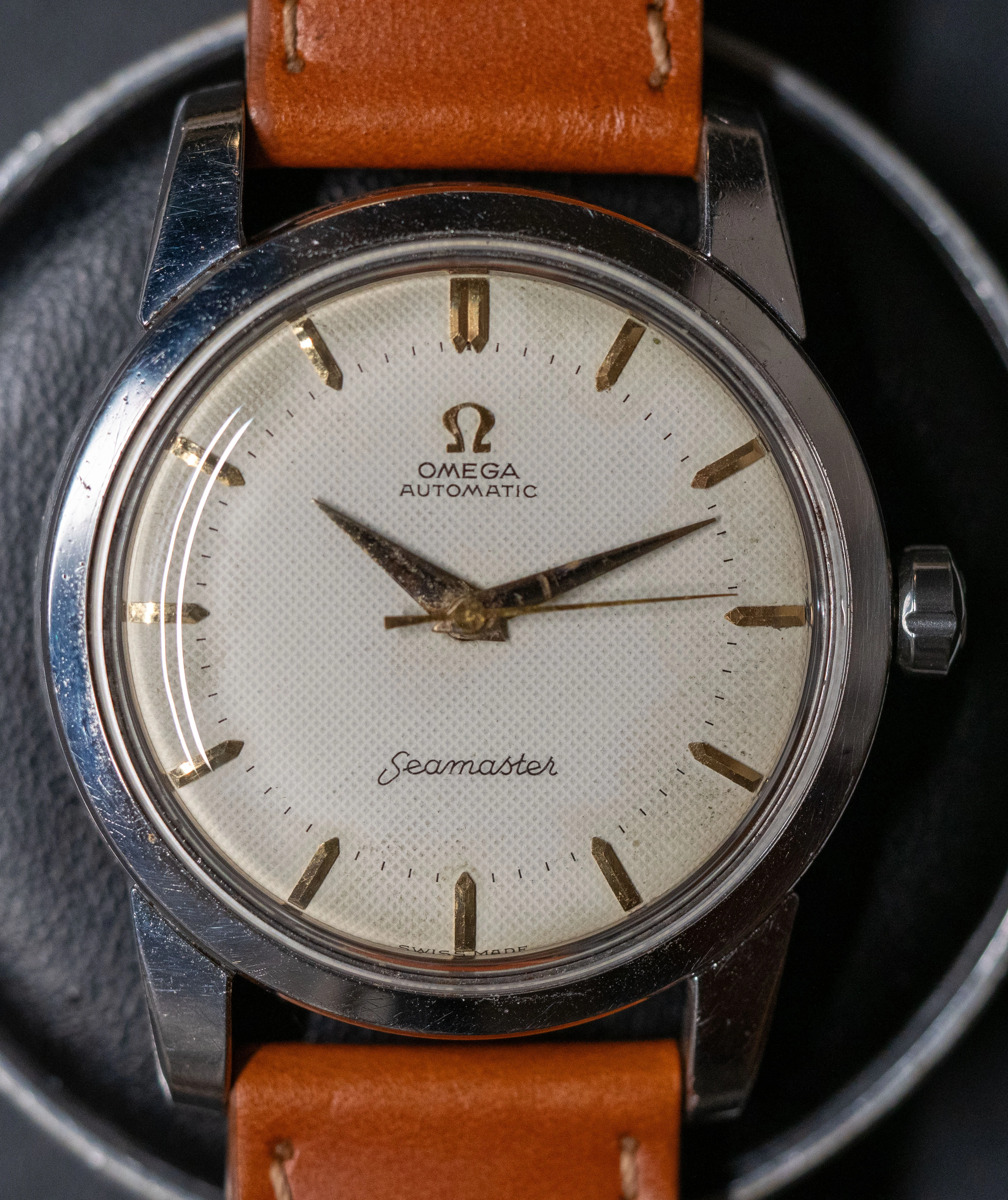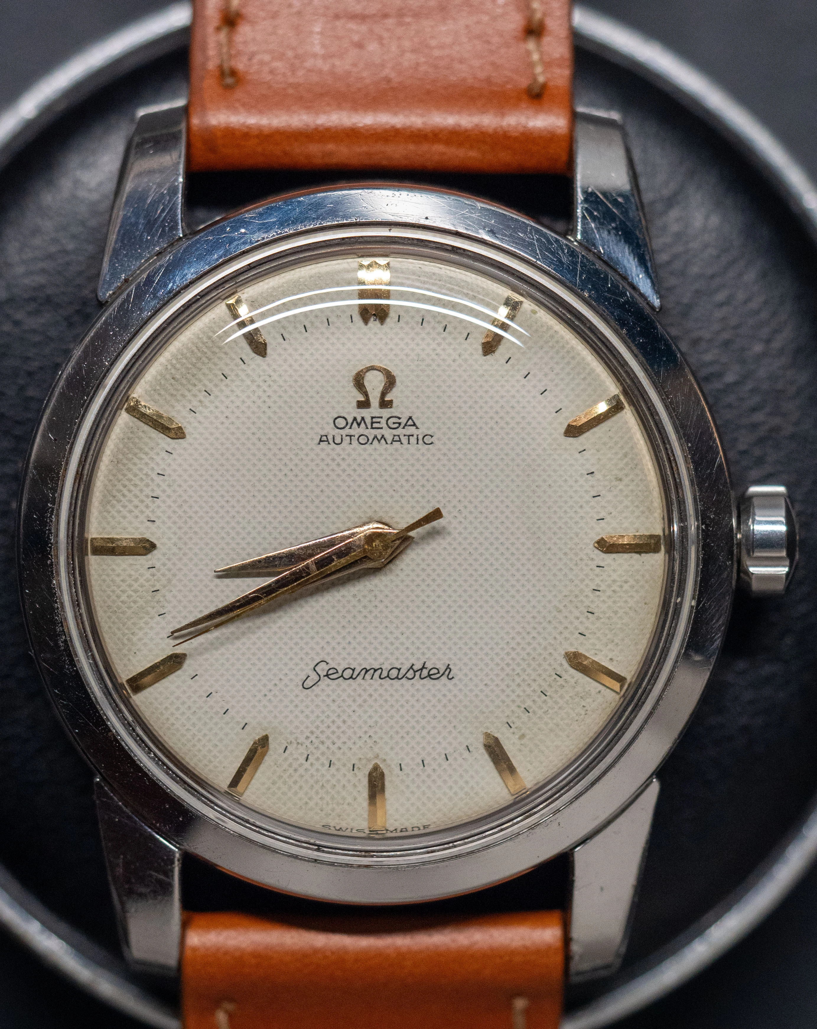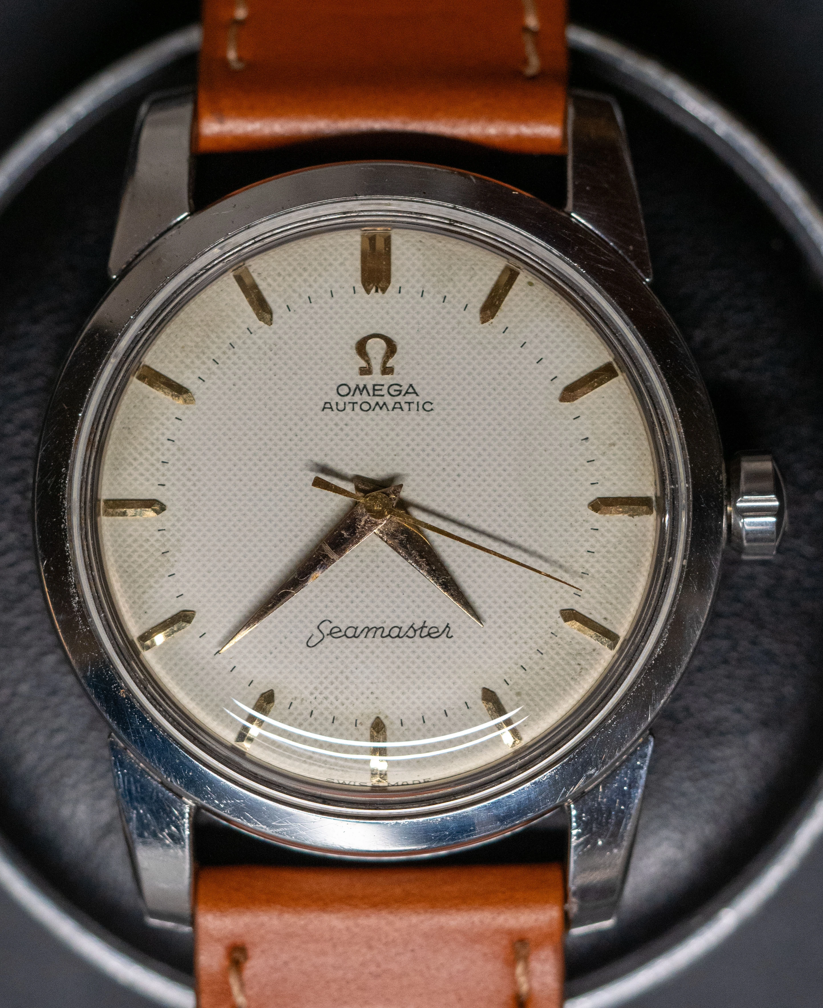 I am putting up for sale a nice waffle-dial Omega Seamaster powered by an automatic caliber 501.