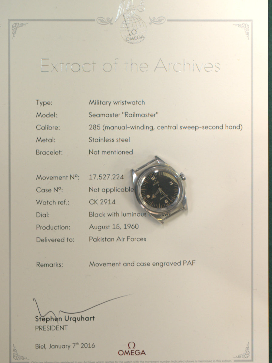 It comes with an extract confirming the delivery to PAF and the engraving on both movement and case.