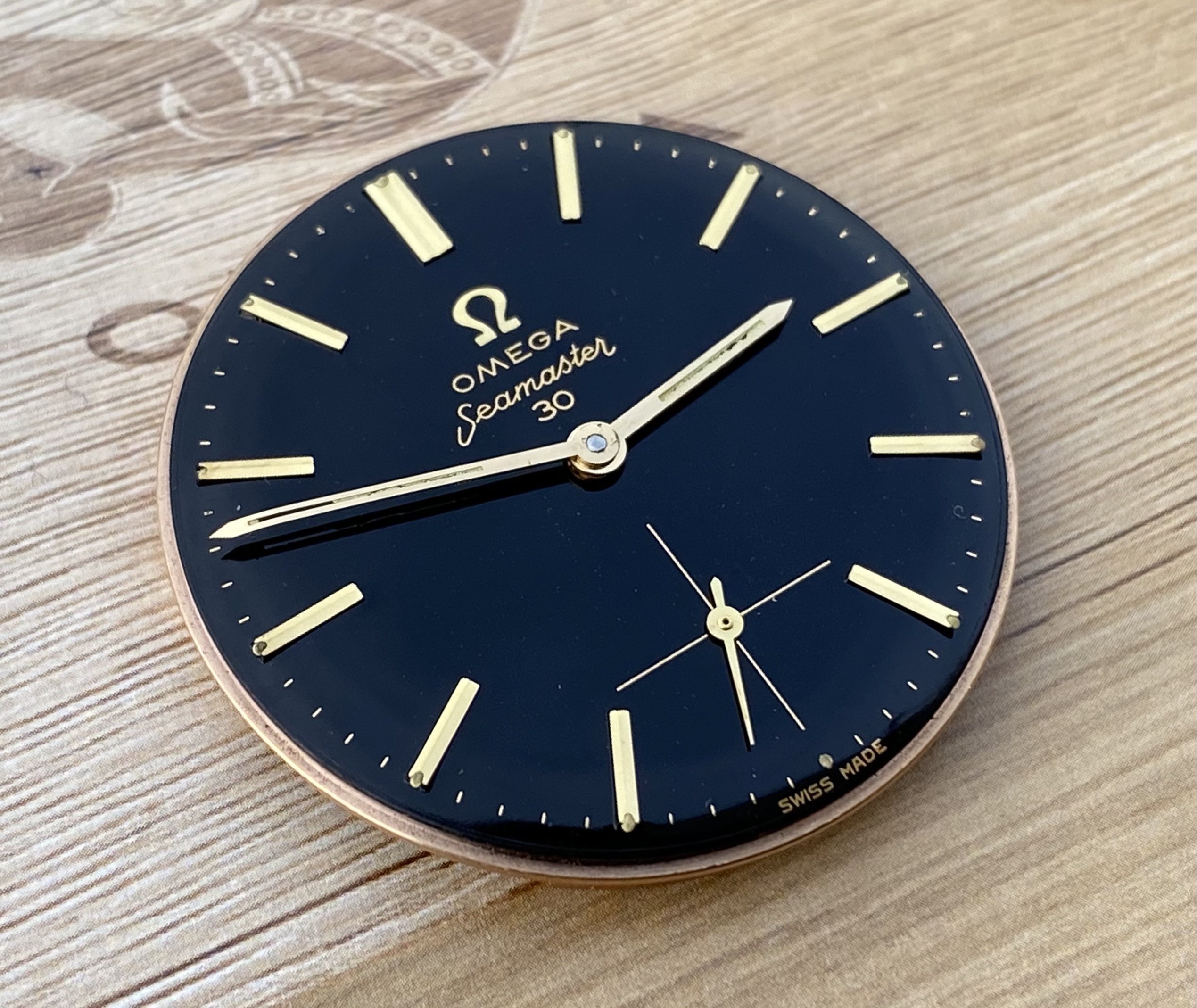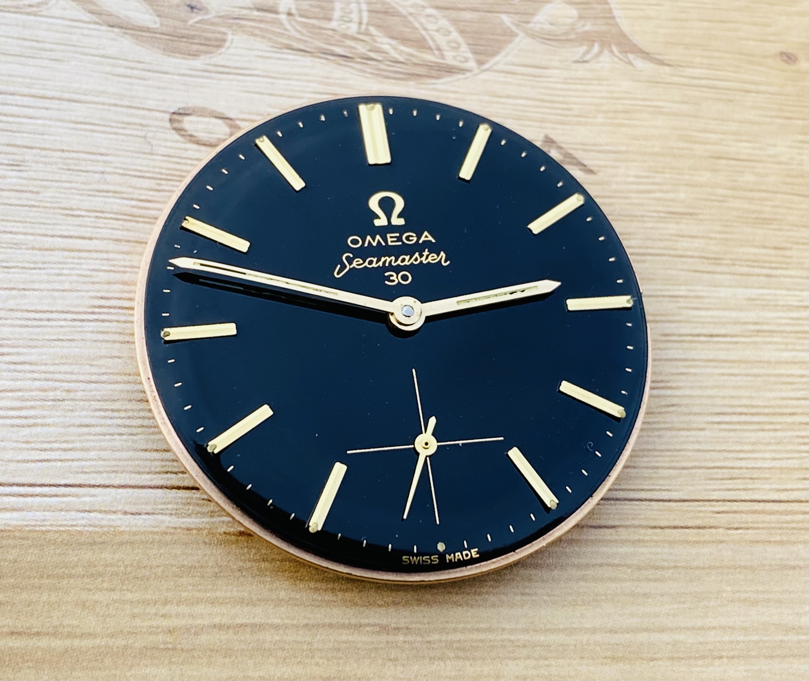 DIAL: with original black dial in very nice condition with applied stick indexes, applied Omega logo, and lume filled hands.