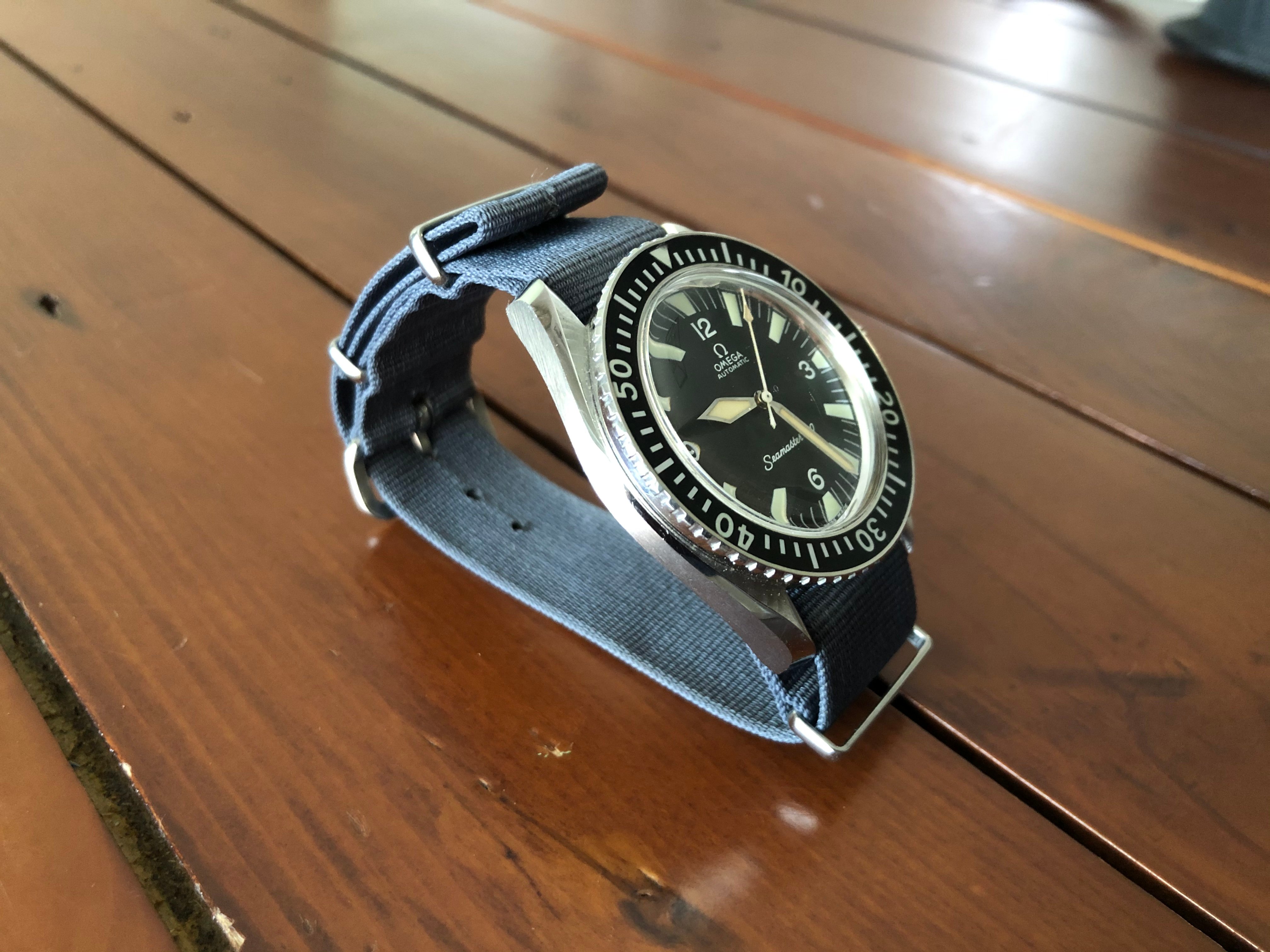 Comes with a admiralty grey Phoenix Nato and a red omega service case.