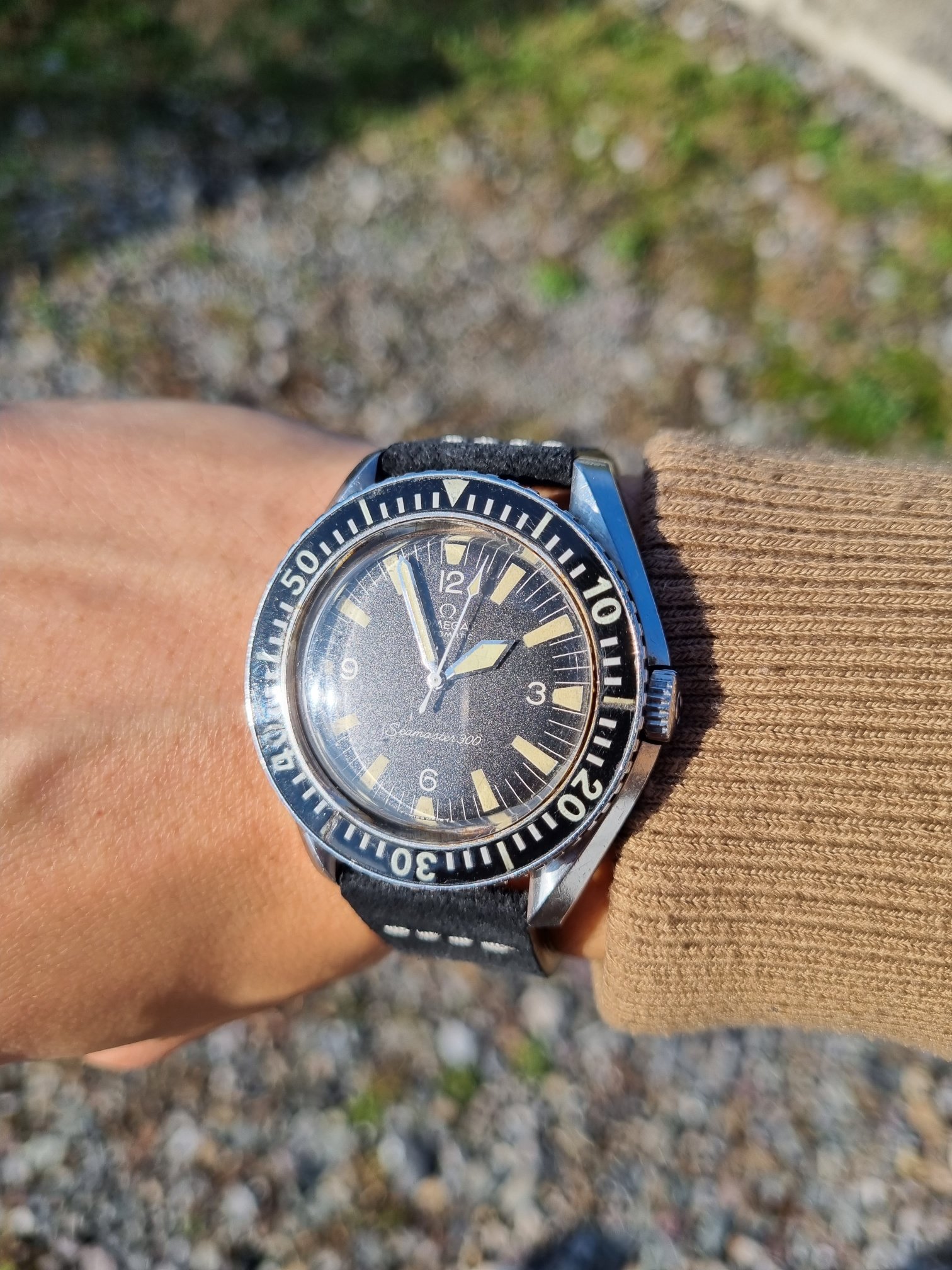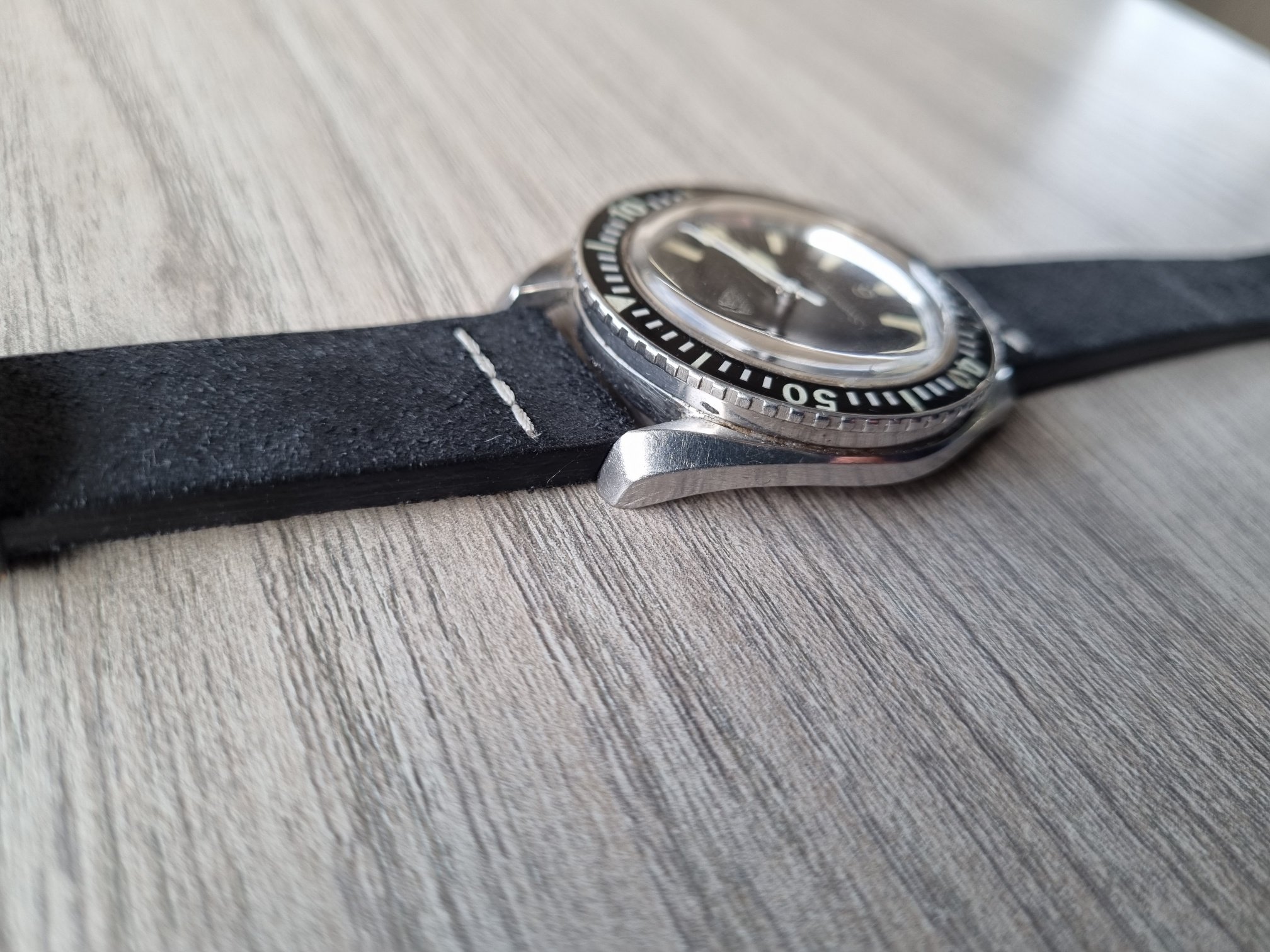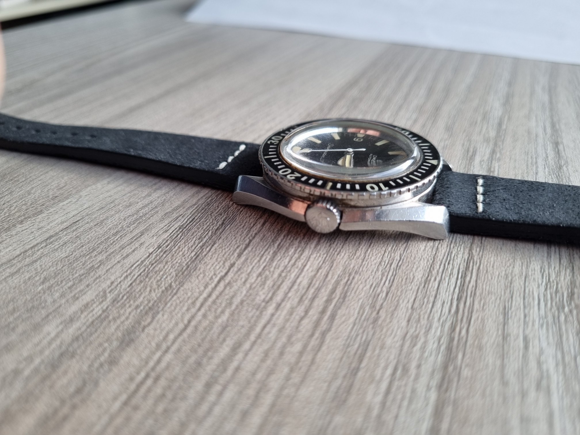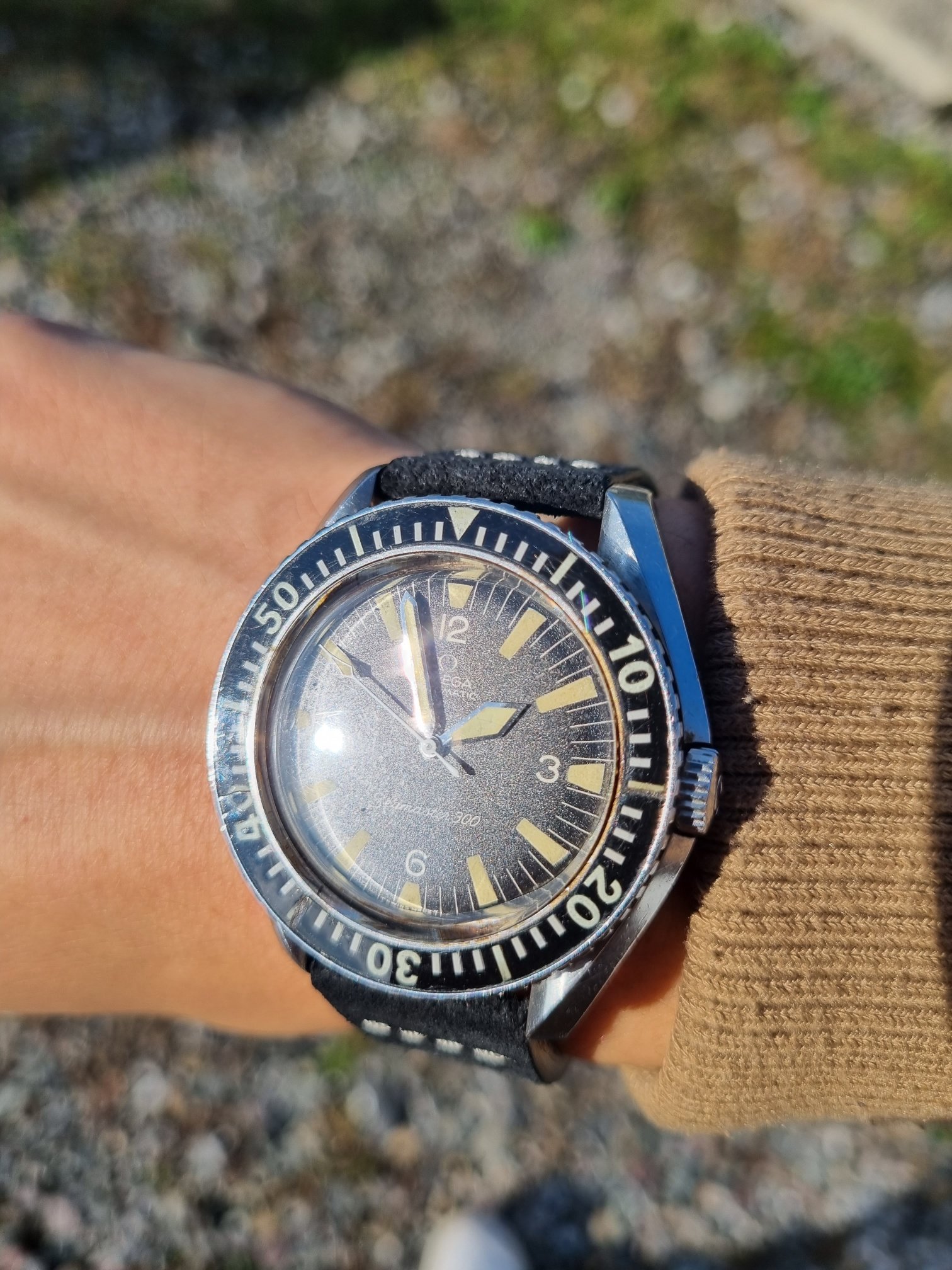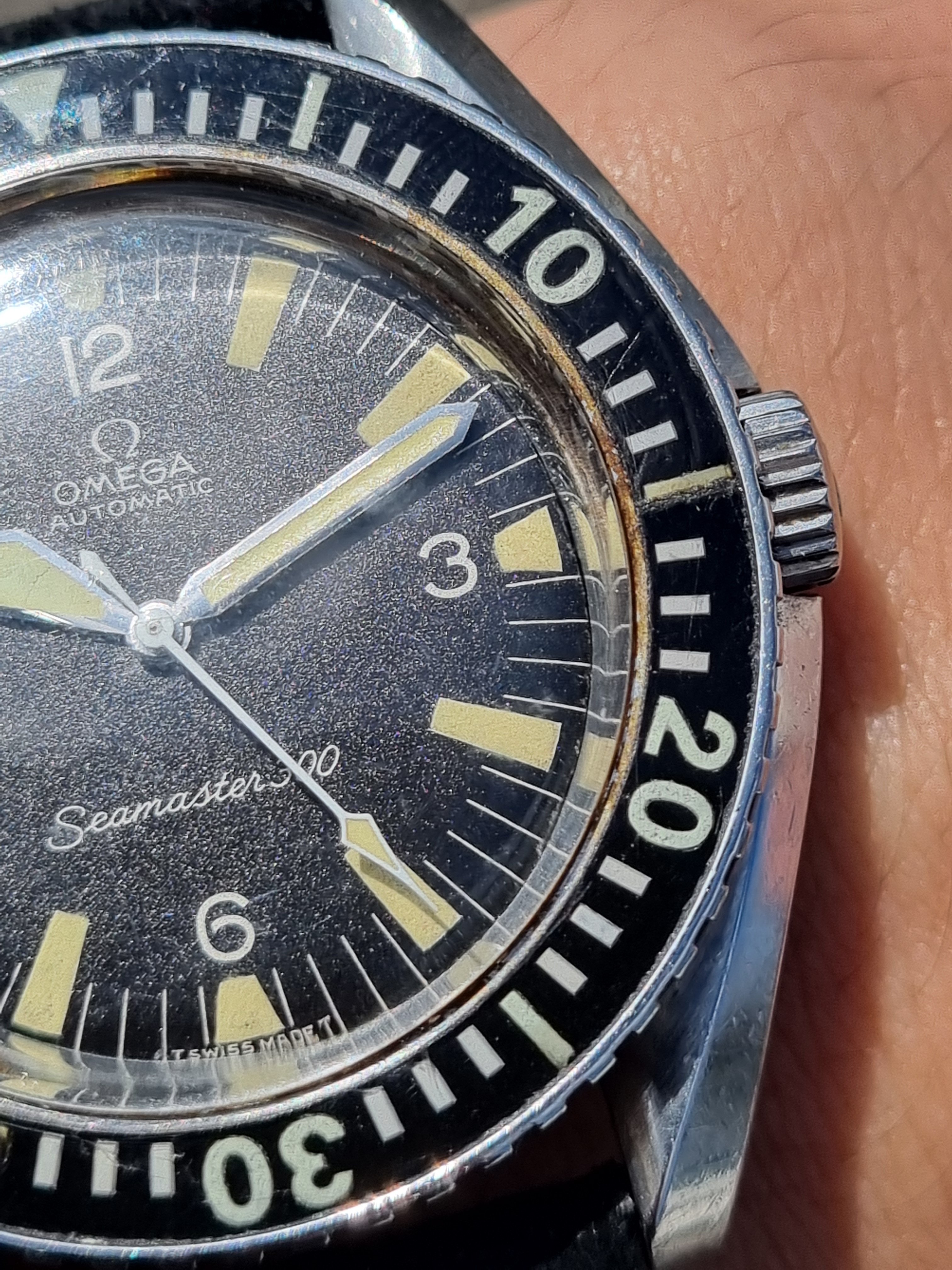 The dial is so cool. It has no signs on it. The tritium has aged well. It has a small missing point on the 11 hour index as you can see but nothing that compromises the looking of the watch.