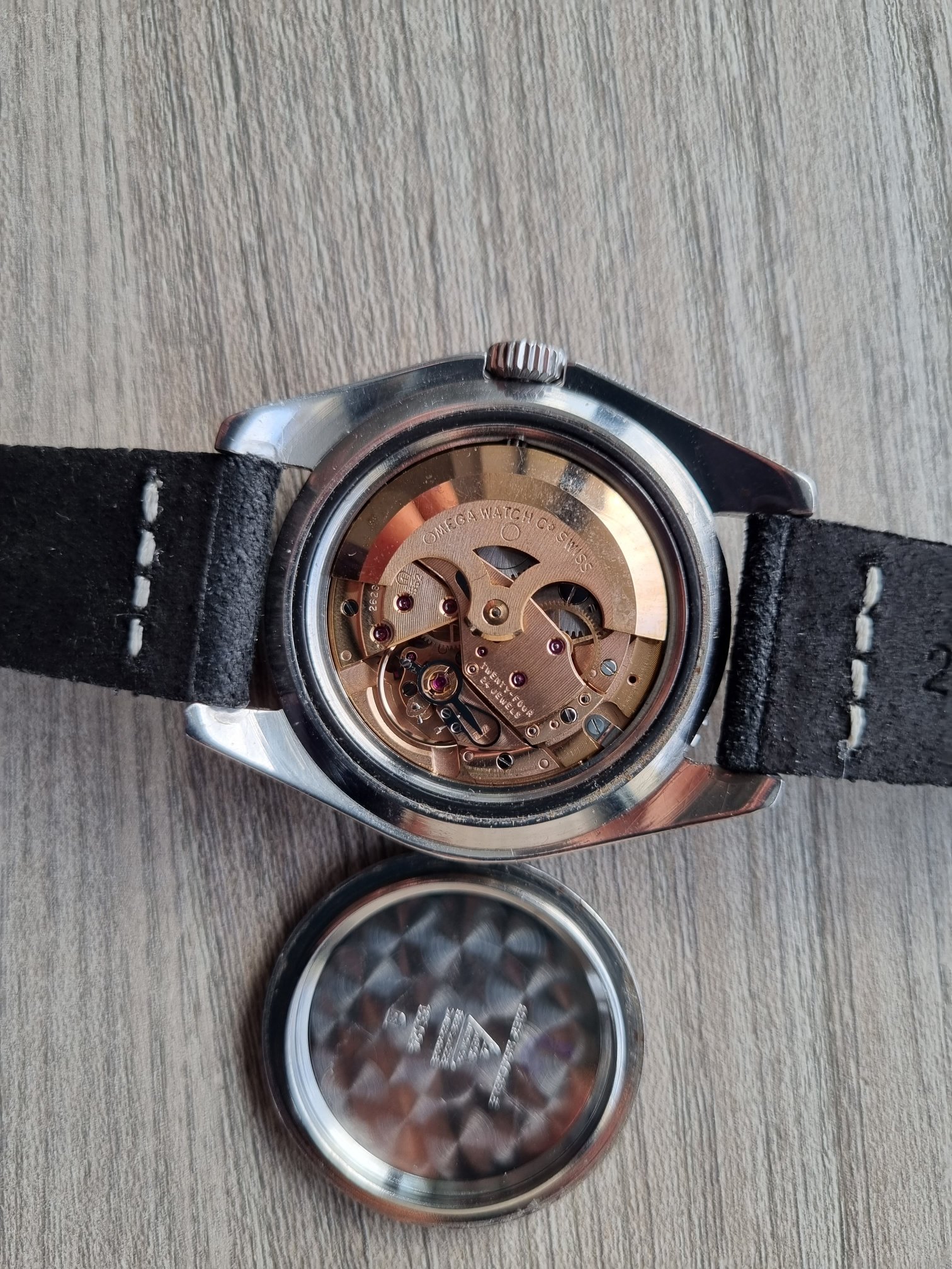 It has no extract, unfortunately. We all know that Omega has momentarily shut down the service. It comes from the daughter of the original owner here in Italy. It still has some wrist cheese on it.