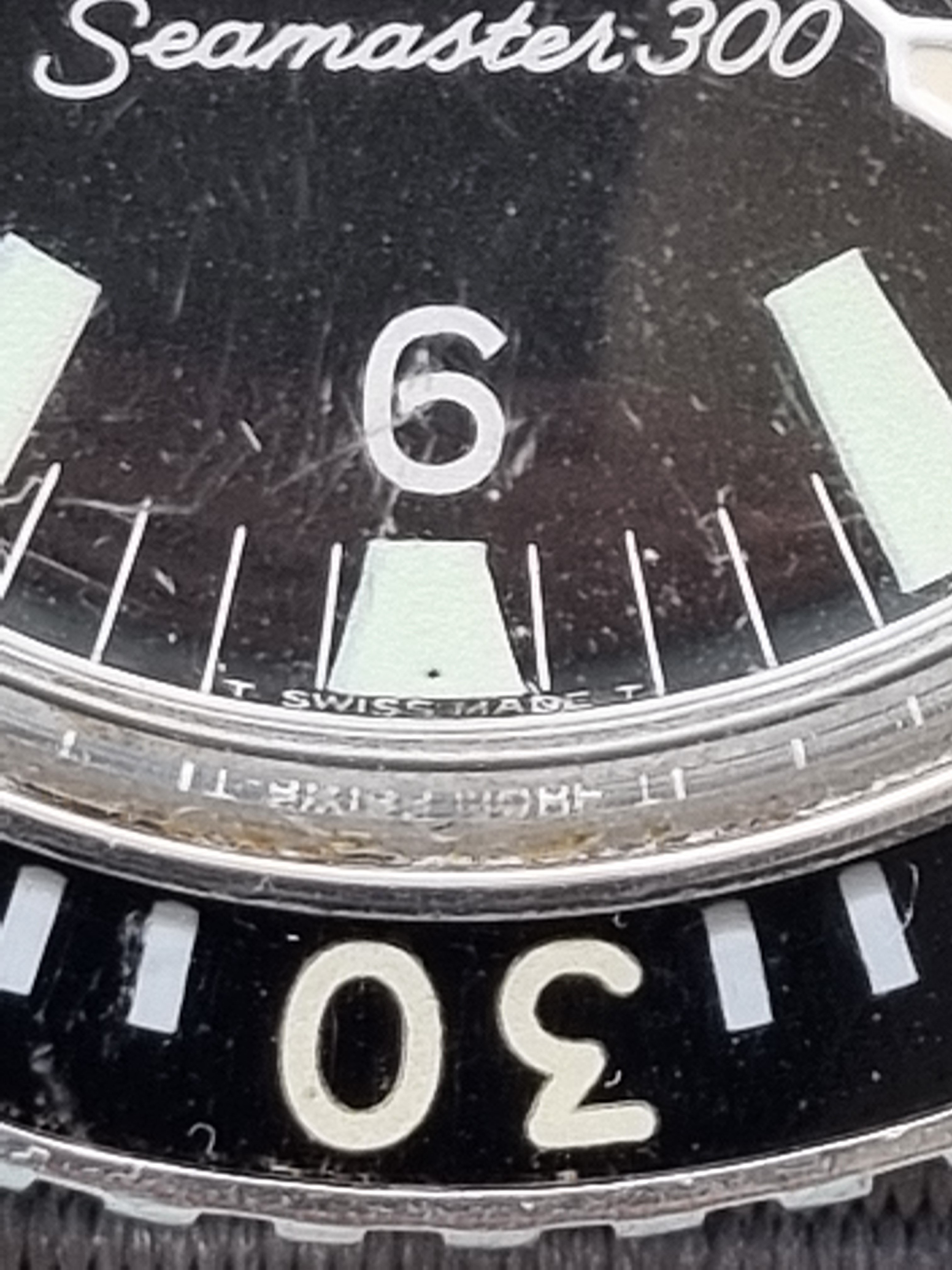 The tritium dial is perfect. It has T SWISS MADE T writing on it. It has two holes at 6 and 12 hours confirming his originality.