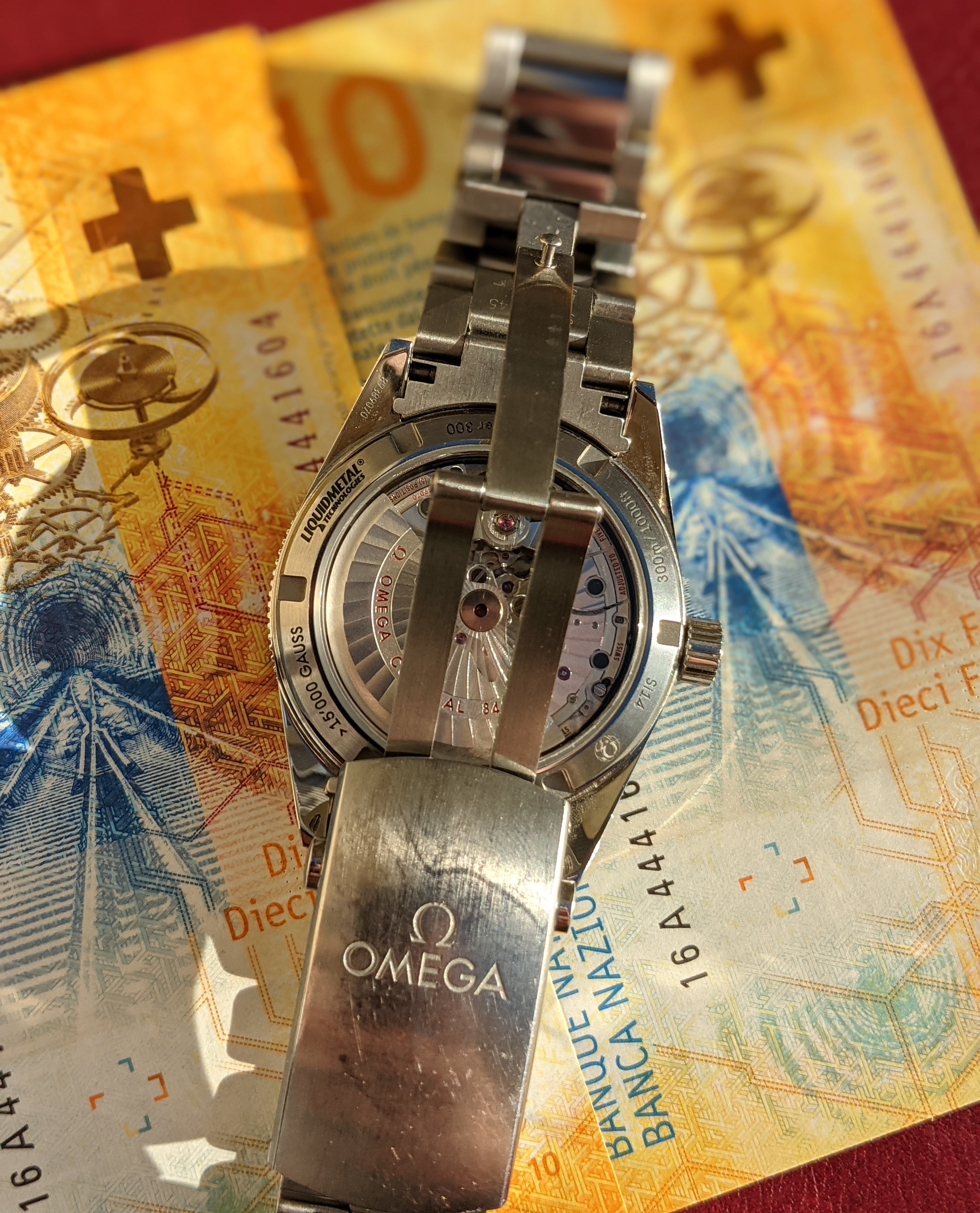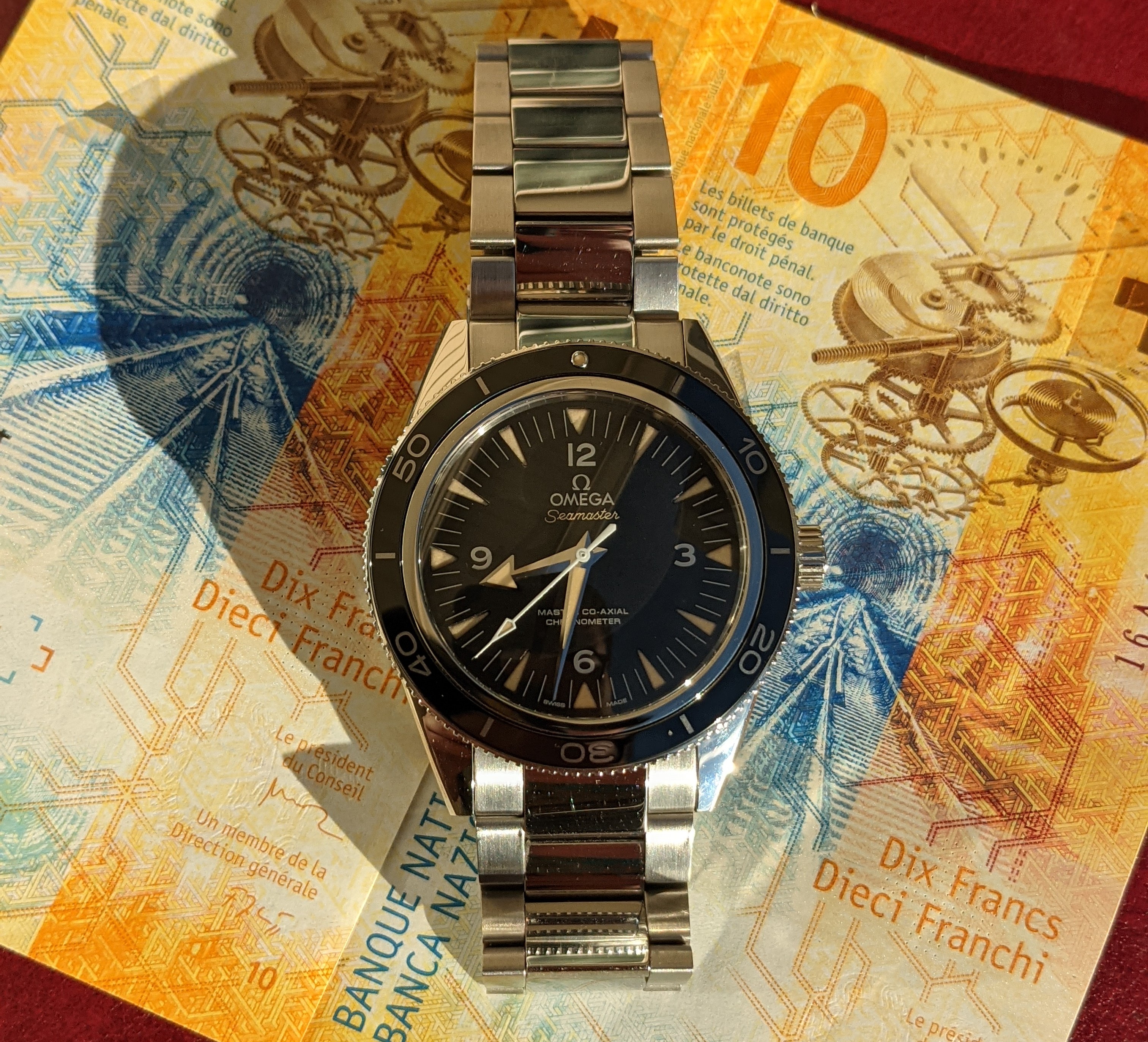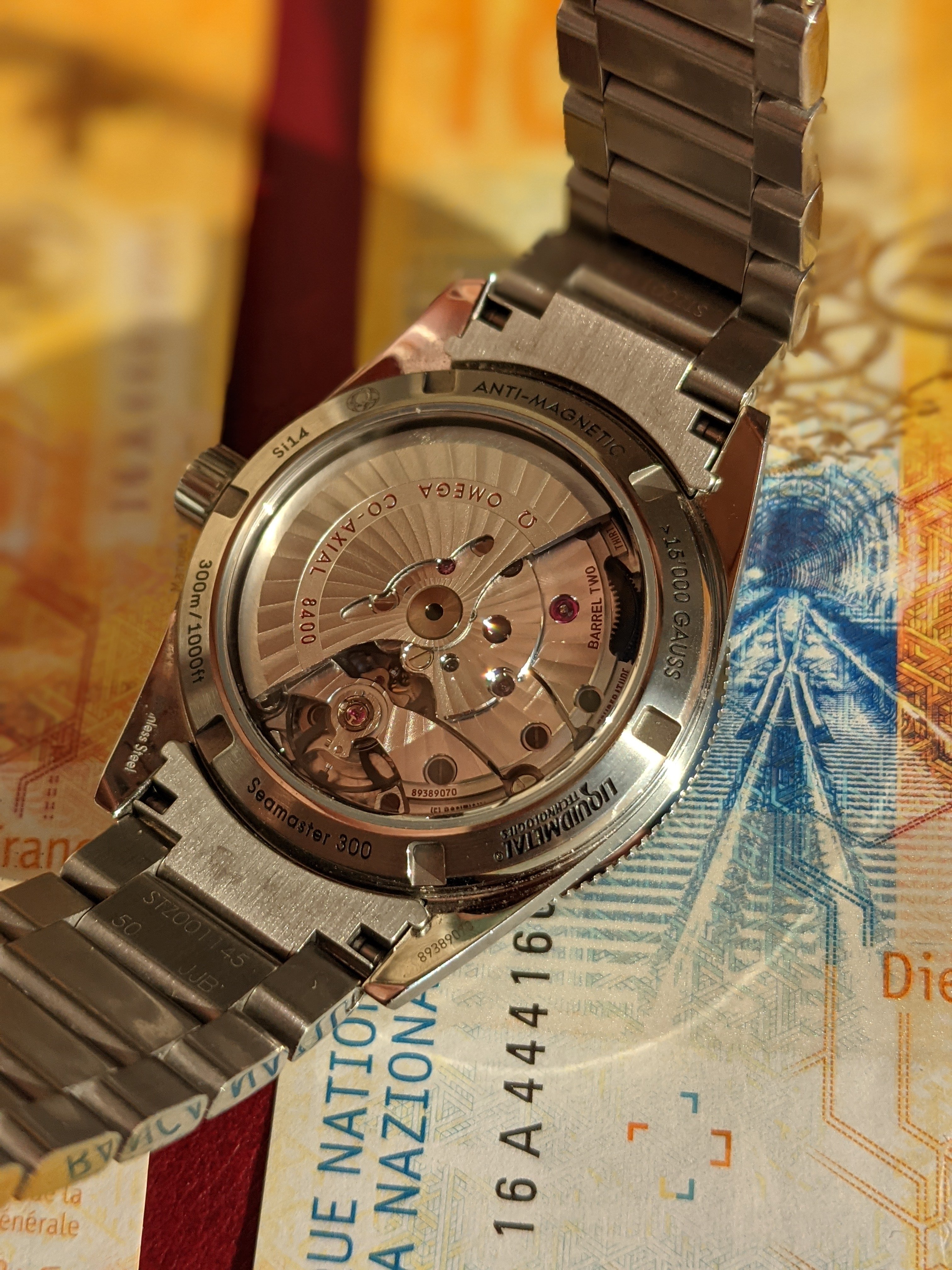 ·Caliber 8400 Co-Axial Movement. 300M dive rating. Anti-Magnetic 15,000 Gauss. Ceramic Bezel. Micro-Adjustable clasp. Bracelet fits 7.5 inch on the smallest setting and likely near 8 inch on the largest. Comes with omega issued pictogram card. Watch runs well and keeps great time.