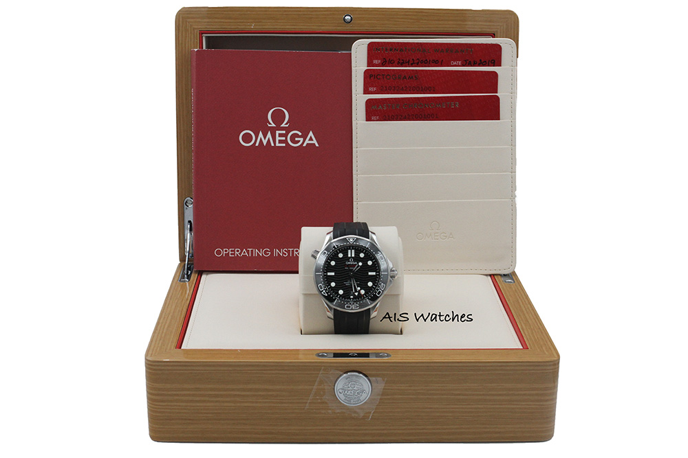 Up for sale is an Omega Seamaster 300 42MM Diver Co-Axial Black Wave Dial on Rubber Strap 210.32.42.20.01.001 Box & Papers. The one-owner timepiece in clean condition.