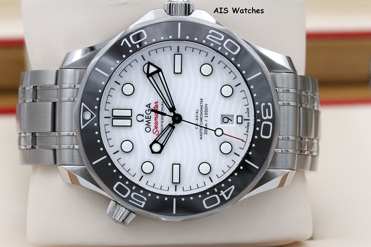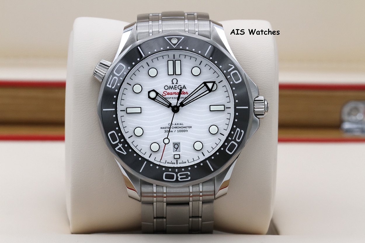 Up for sale is an Omega Seamaster 300 42MM Diver White Wave Dial on Stainless Steel Bracelet - 210.30.42.20.04.001 Box & Papers. The timepiece in excellent condition.