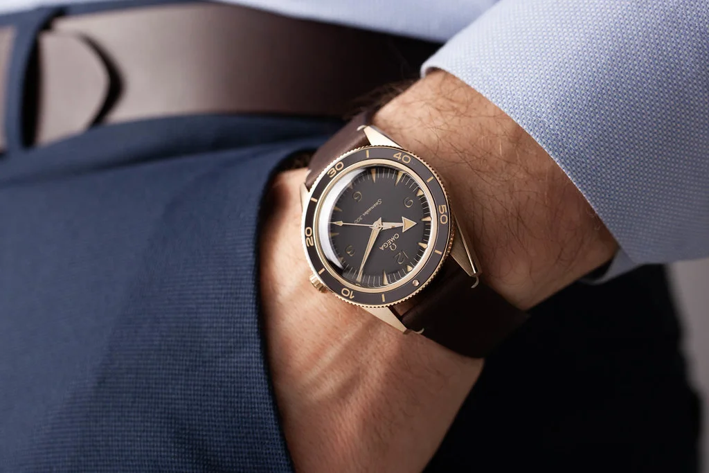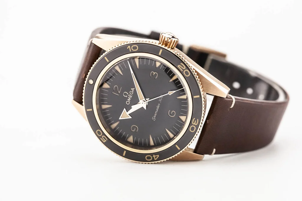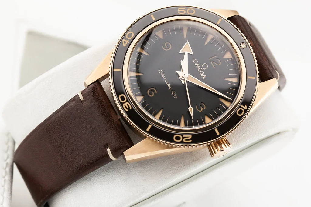 ·Up for sale is an excellent condition Omega Seamaster 300 41mm Bronze Gold on leather strap, reference 234.92.41.21.10.001. It comes with all boxes, papers, booklets, and Omega Warranty Card dated March 2022.