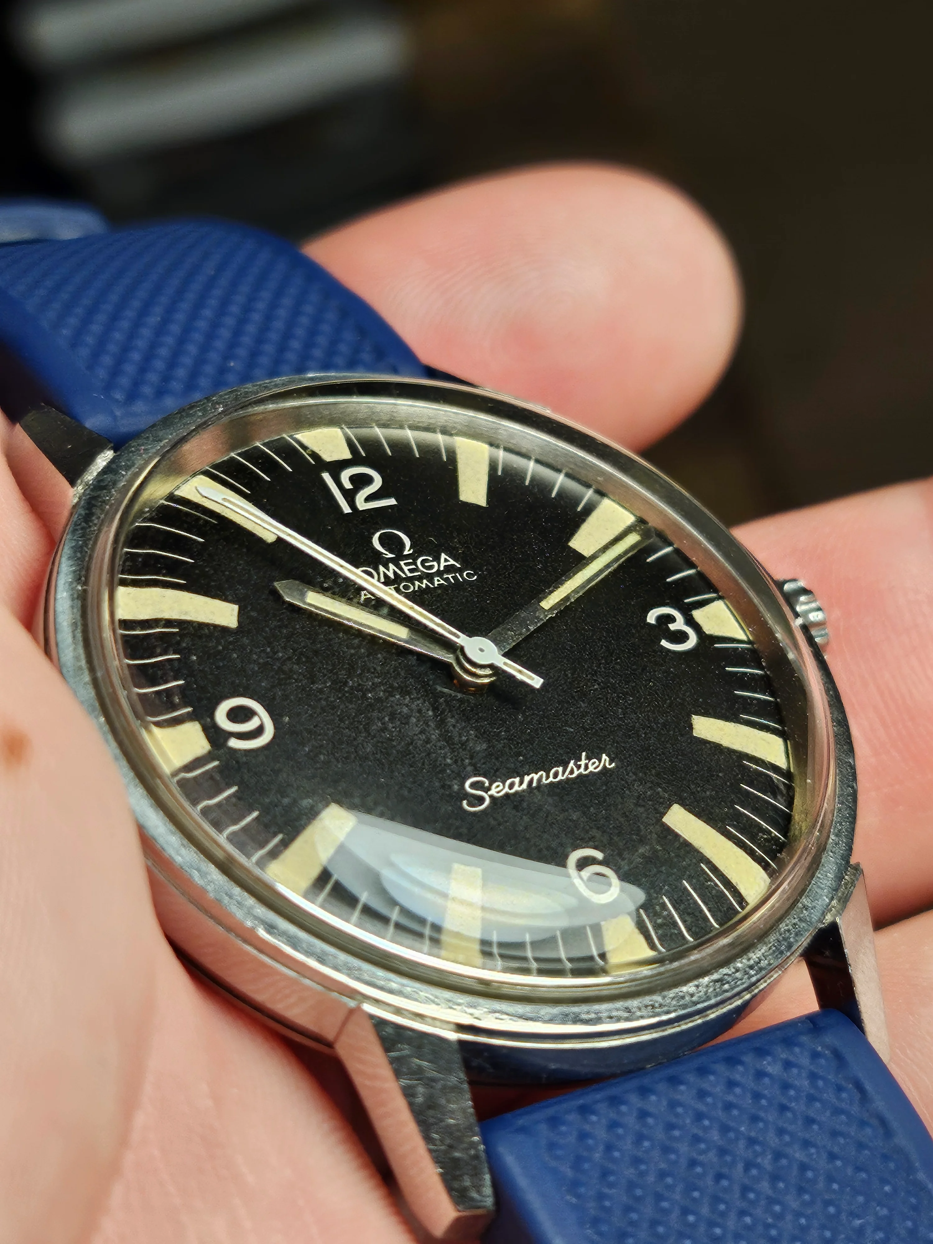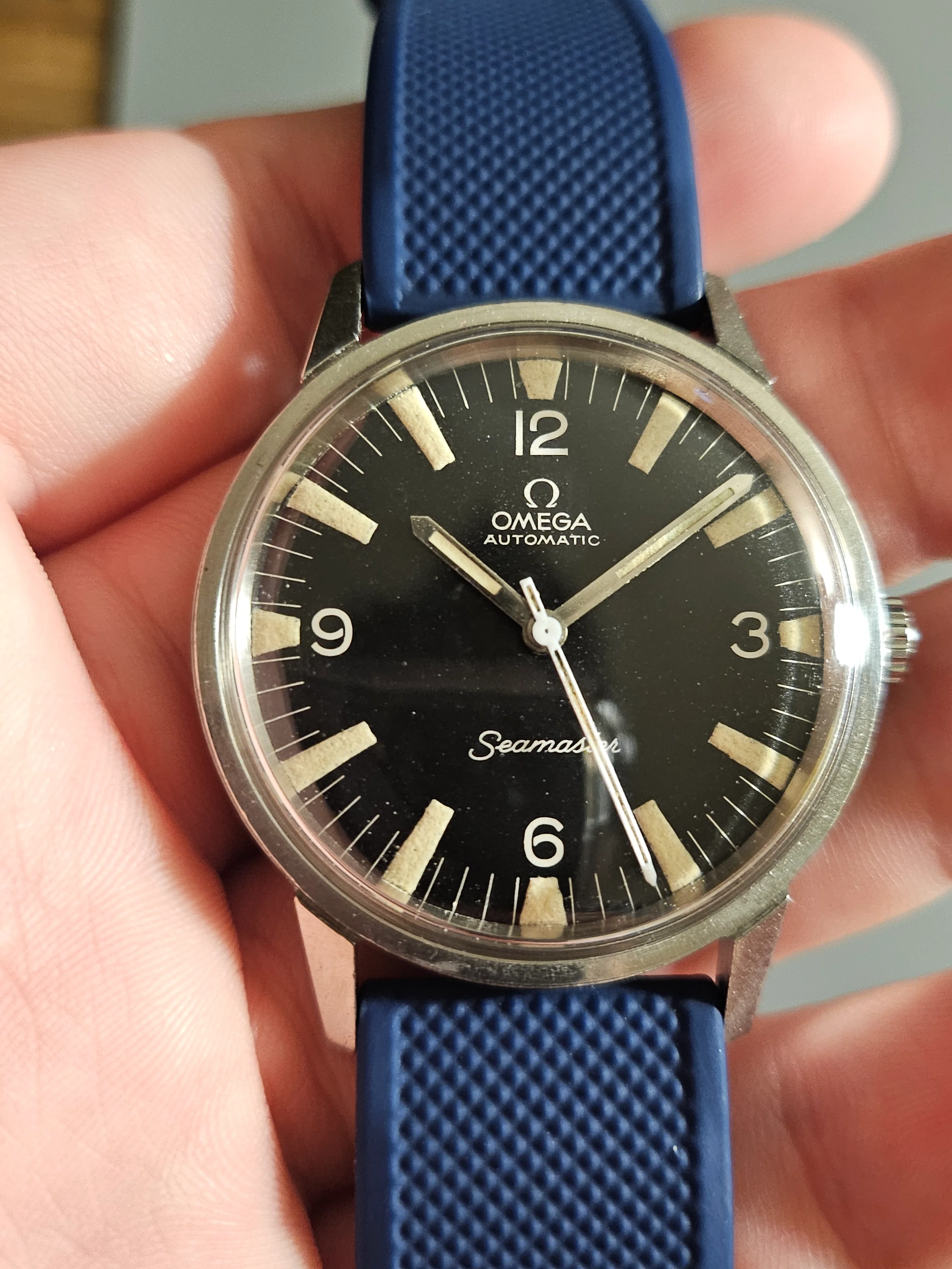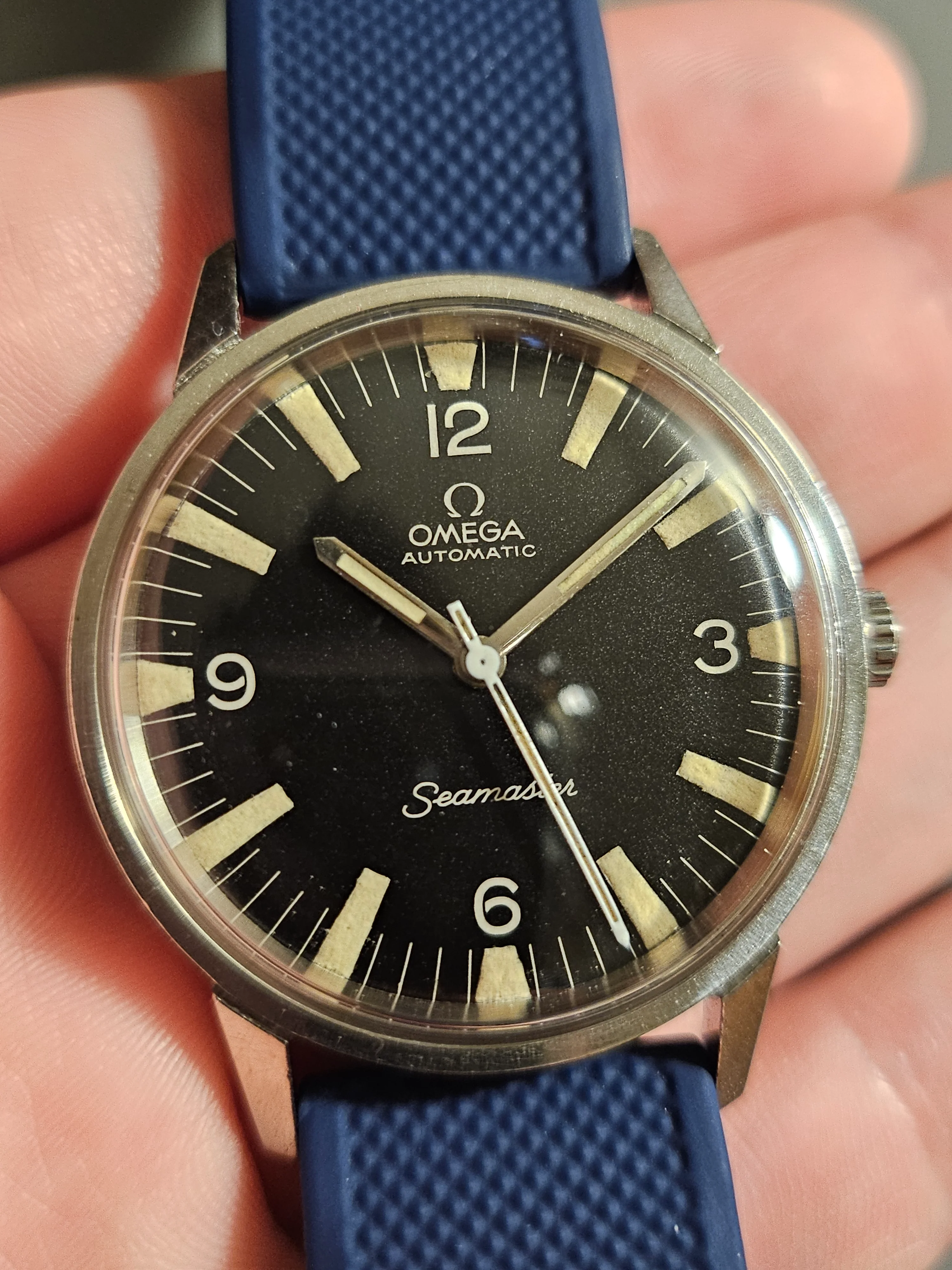 Hands: Minute and hour hand lume is original and matches aging on dial. Seconds has is lumed variant