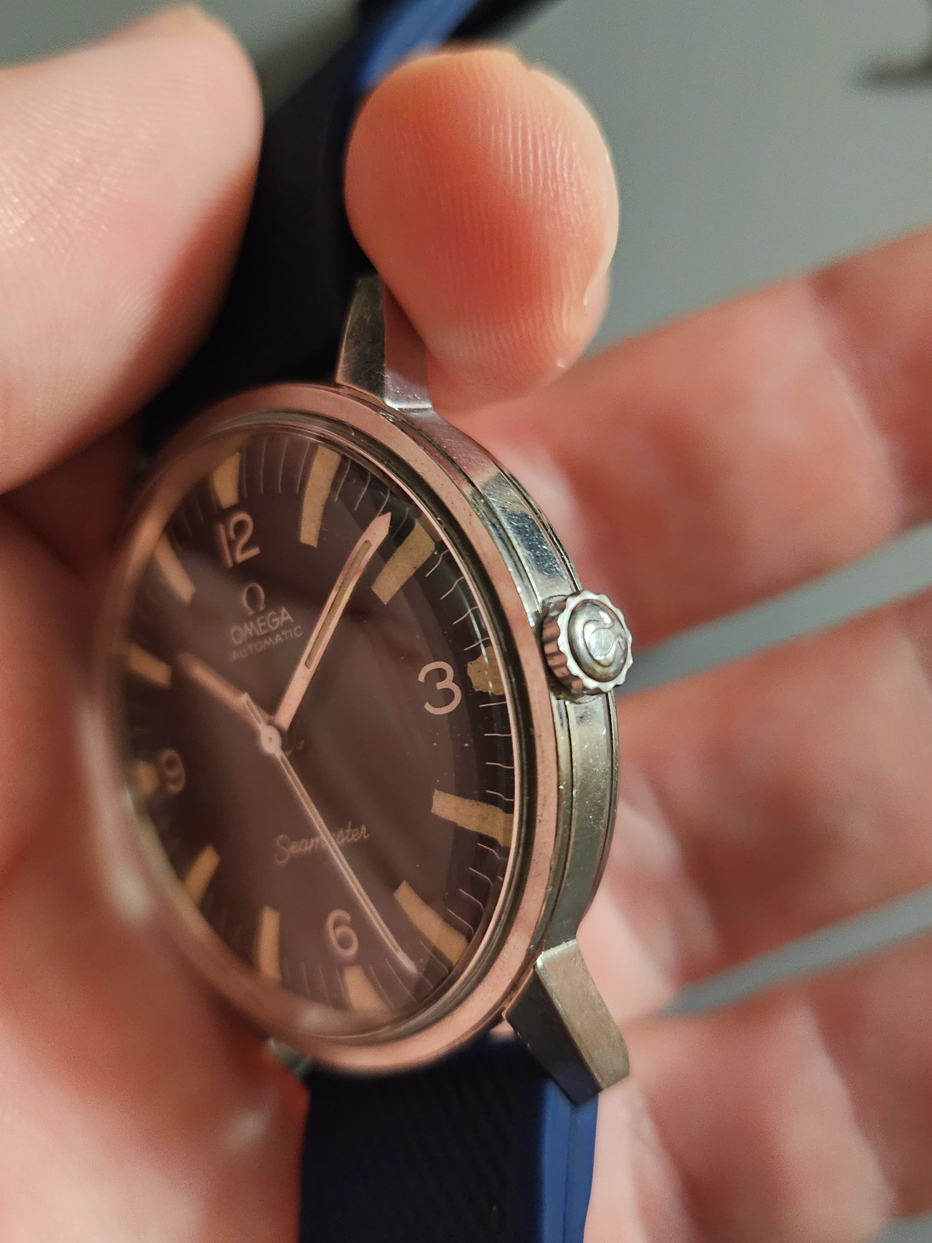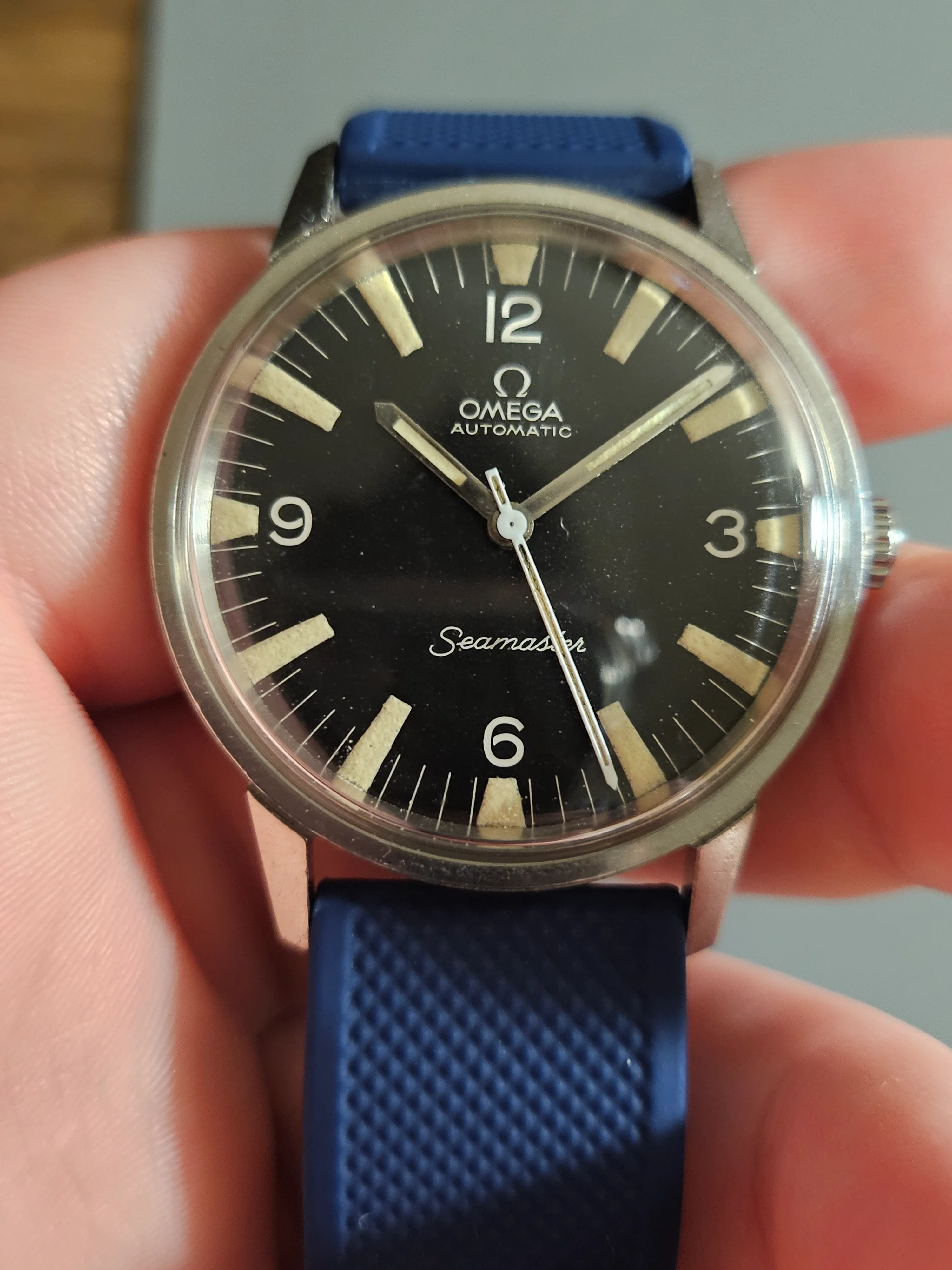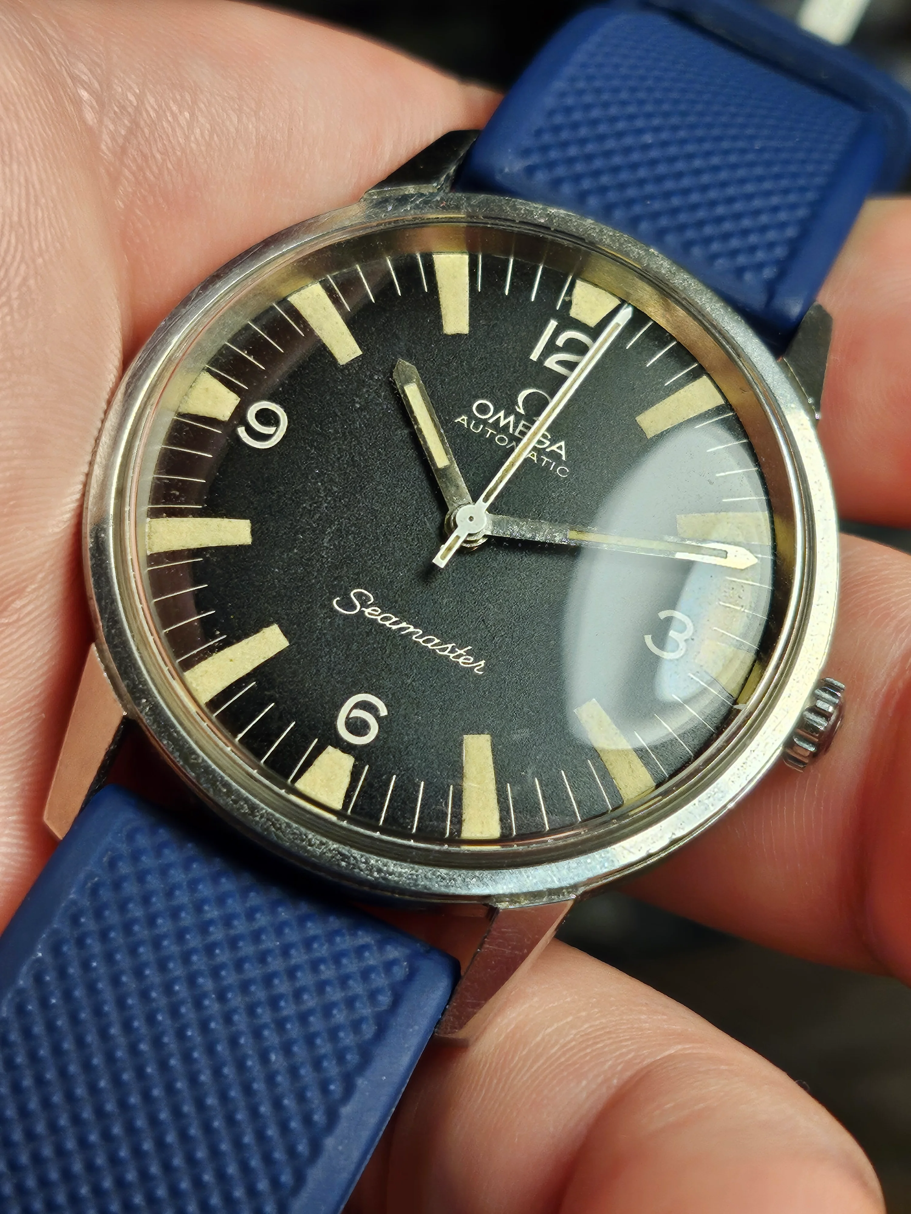 Hands: Minute and hour hand lume is original and matches aging on dial. Seconds has is lumed variant