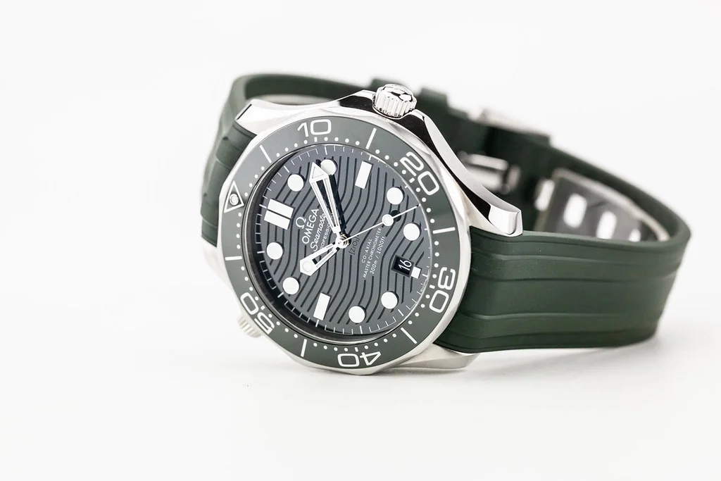 ·Up for sale is a brand new Omega Seamaster 300 Green Wave Dial on Rubber Strap, reference # 210.32.42.20.10.001. It comes complete with all boxes, papers, booklets, hang tag and Omega Warranty Card dated July 2025.