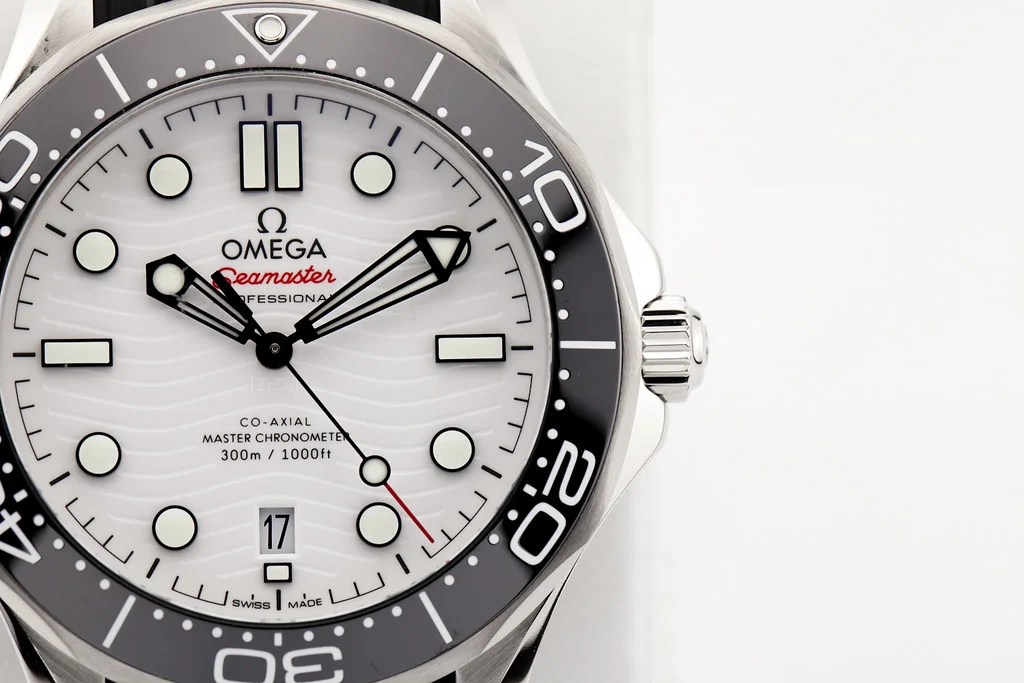 ·Up for sale is a brand new Omega Seamaster 300 White Wave Dial on Rubber Strap, ref # 210.32.42.20.04.001 It comes complete with all boxes, papers, booklets, hang tag and Omega Warranty Card dated February 2025.