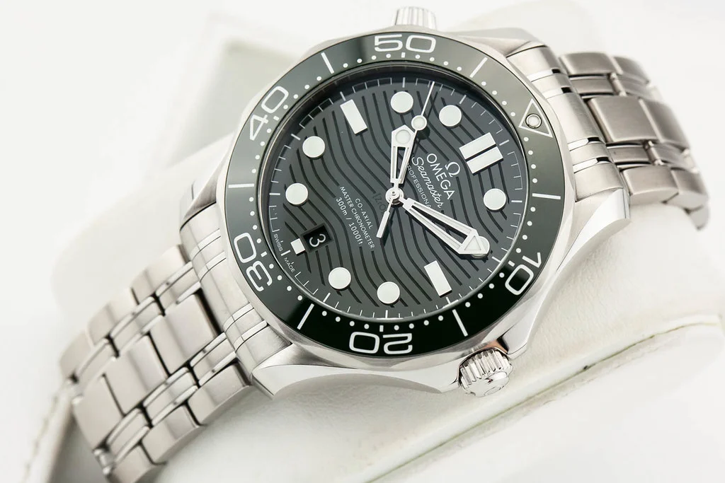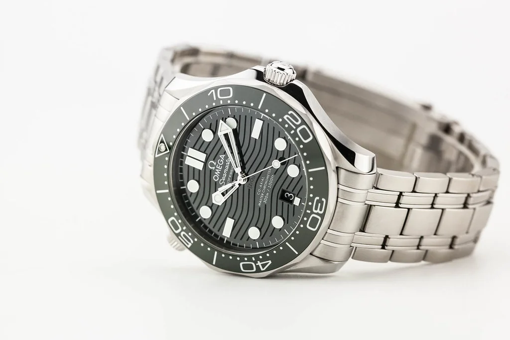 ·Up for sale is a brand new Omega Seamaster 300 Green Wave Dial on Bracelet, reference # 210.30.42.20.10.001. It comes complete with all boxes, papers, booklets, hang tag and Omega Warranty Card dated July 2025.
