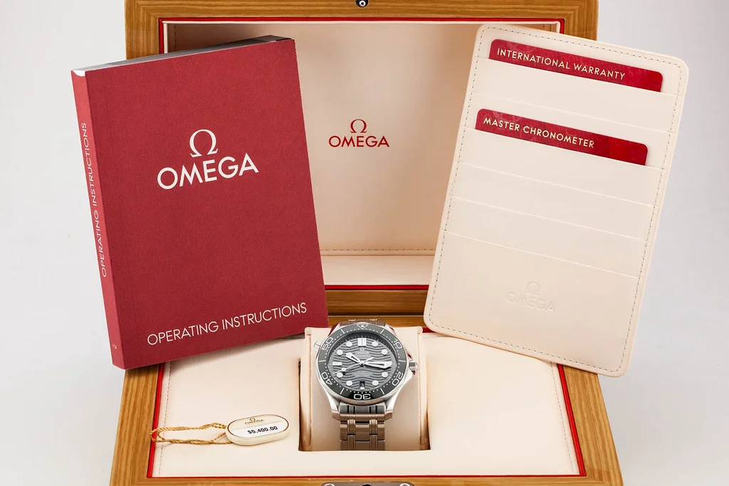 ·Up for sale is a brand new Omega Seamaster 300 Green Wave Dial on Bracelet, reference # 210.30.42.20.10.001. It comes complete with all boxes, papers, booklets, hang tag and Omega Warranty Card dated August 2025.