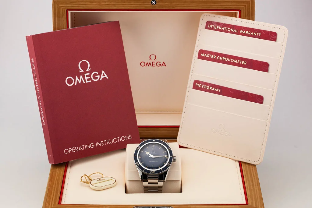 ·Up for sale is a brand new Omega Seamaster 300 Heritage 41mm Blue Dial reference # 234.30.41.21.03.001 It comes complete with all boxes, papers, booklets, hang tag and Omega Warranty Card dated May 2024.