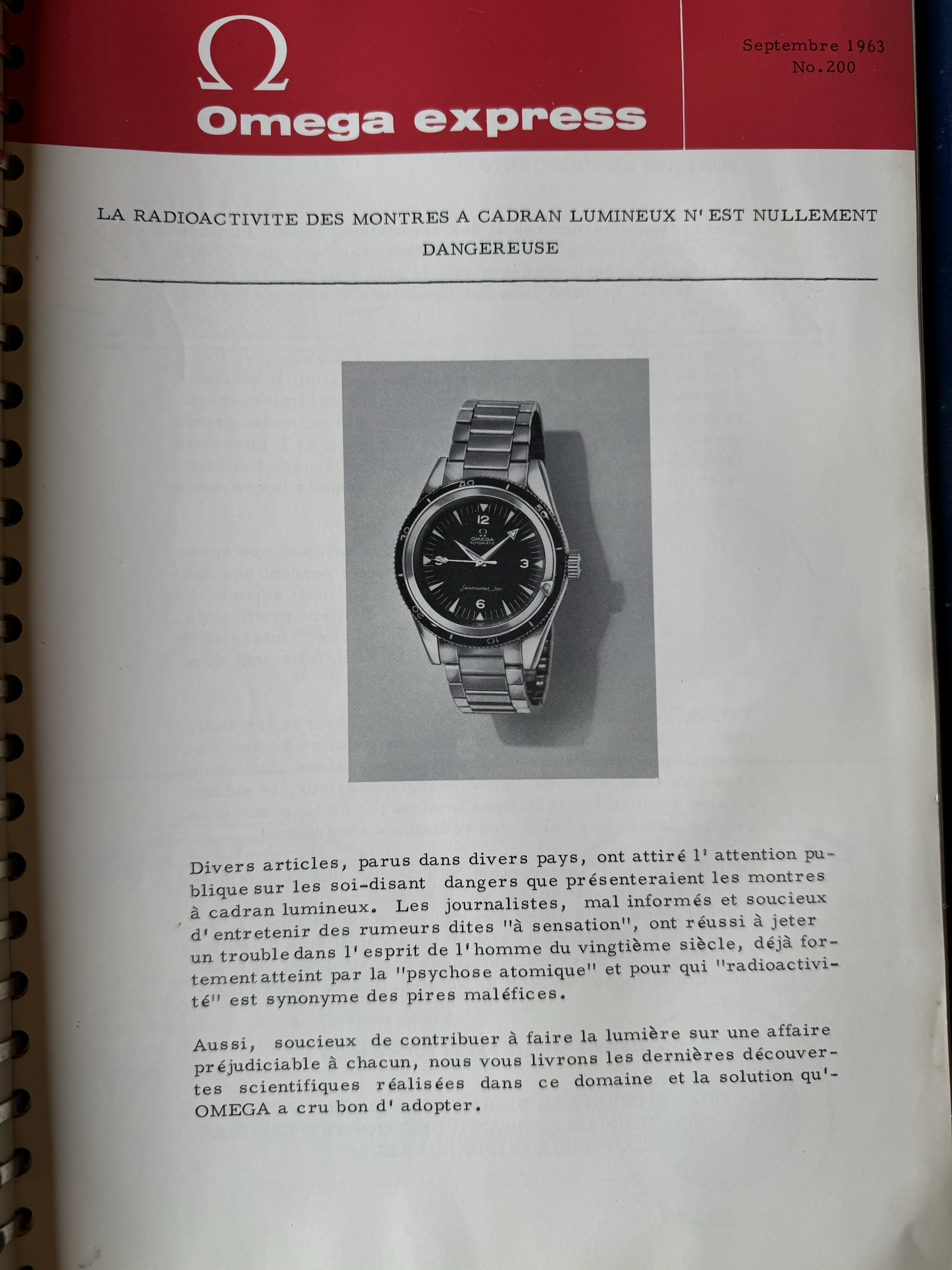Various articles, published in various countries, have drawn public attention to the so-called dangers presented by watches with luminous dials. Journalists, ill-informed and anxious to maintain so-called "sensational" rumors, have succeeded in throwing a wrench into the minds of twentieth-century man, already seriously affected by "atomic psychosis" and for whom "radioactivity" is synonymous with the worst evils.