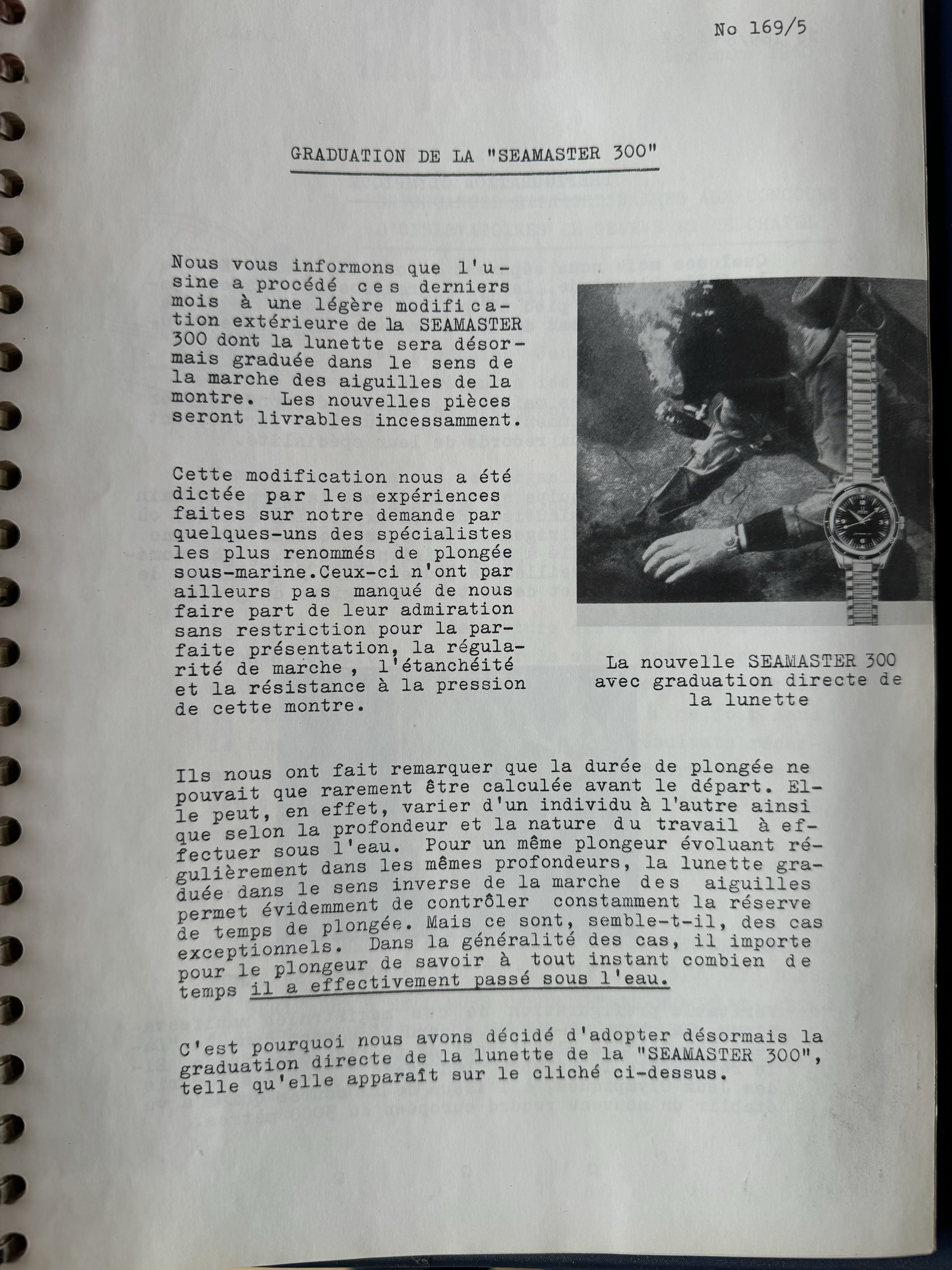 ·Hey guys, lately I was visiting Nicolas from Cenic Watches near Bienne. Despite a huge stock of furnitures, he also has a marvelous collection of official catalogs and documents. One that was new to me, were some issues of what looks like the Omega Magazin for their dealers. I hadn’t time to scroll them all, but I found some interesting pages about the seamaster 300 I would like to share with you: