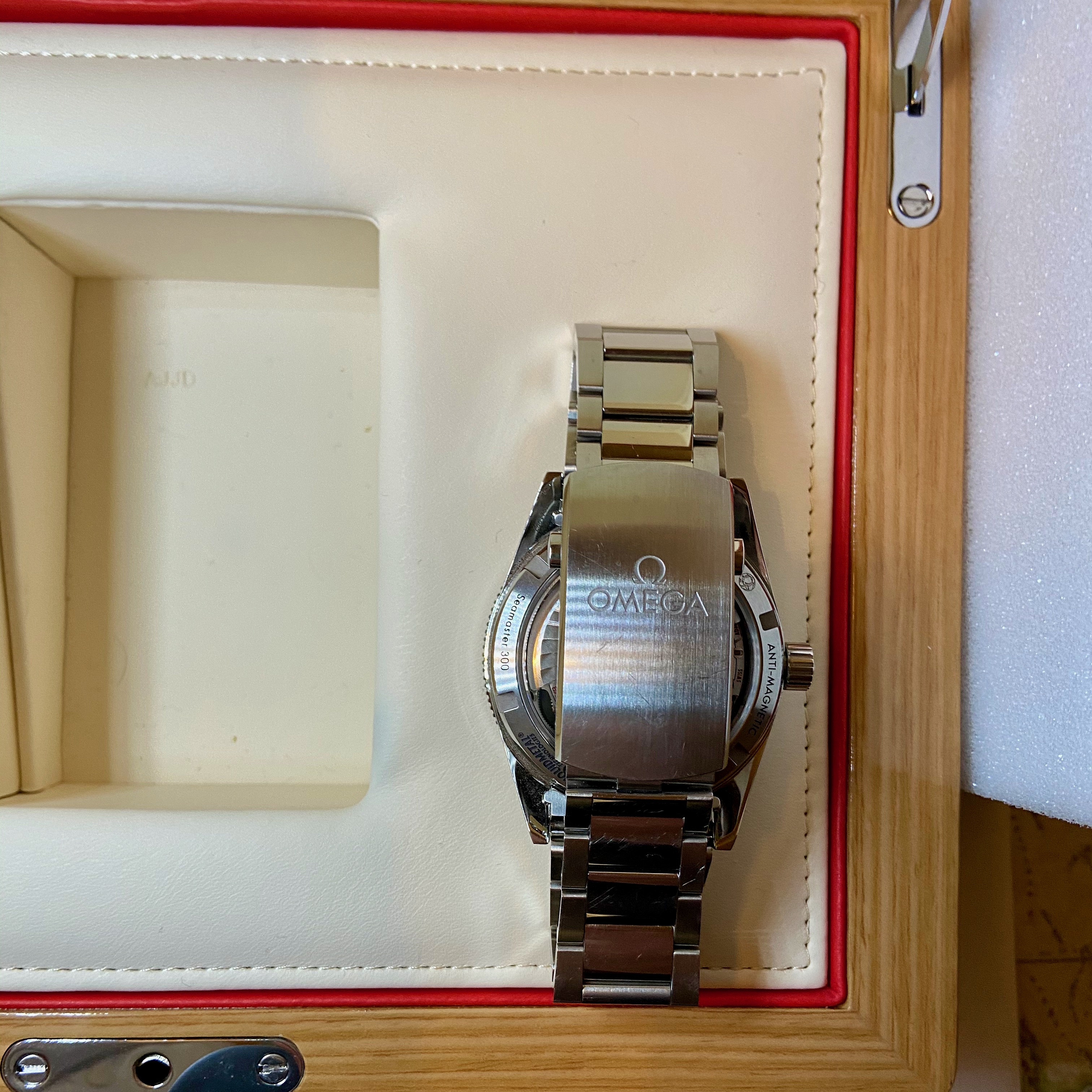 Full set including outer and inner boxes, cards, instructions, and hang tag. Purchased from UK AD Beaverbrooks in September 2017, therefore has around 18 months of the full International Omega Warranty remaining. Bracelet currently sized for between 7" and 7.5" wrist (there are 5 adjustments in the clasp), with 3 spare links provided meaning it will fit any wrist.