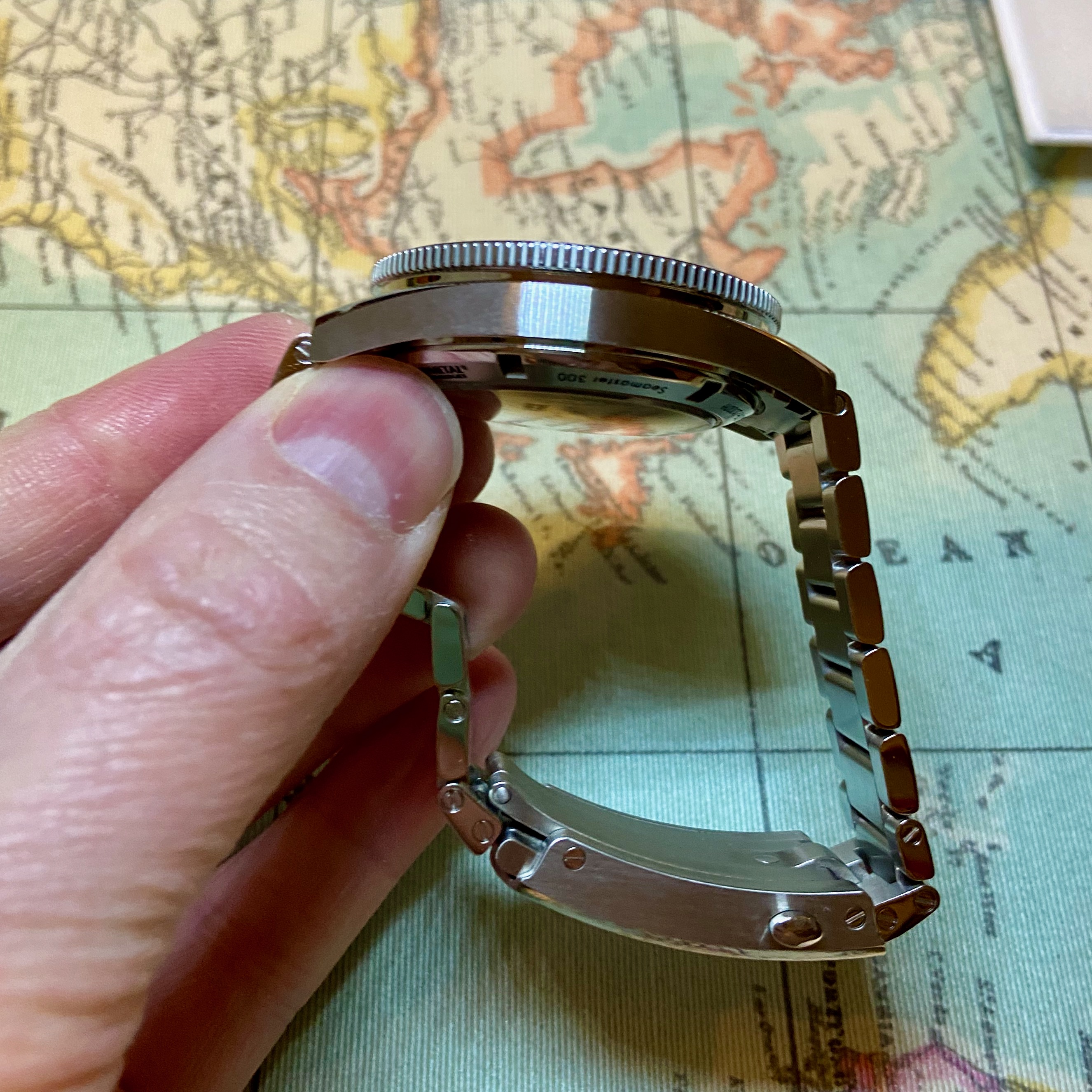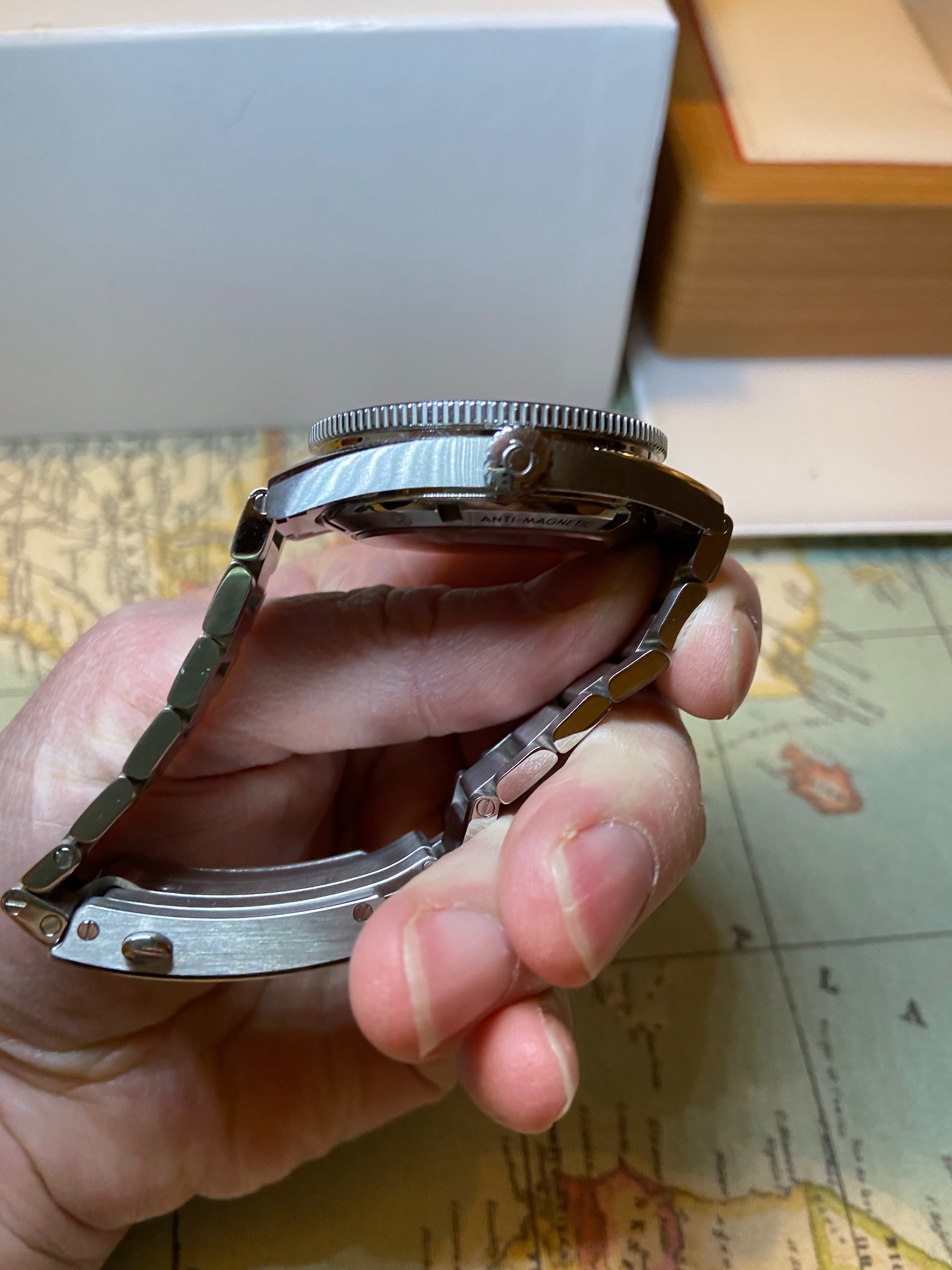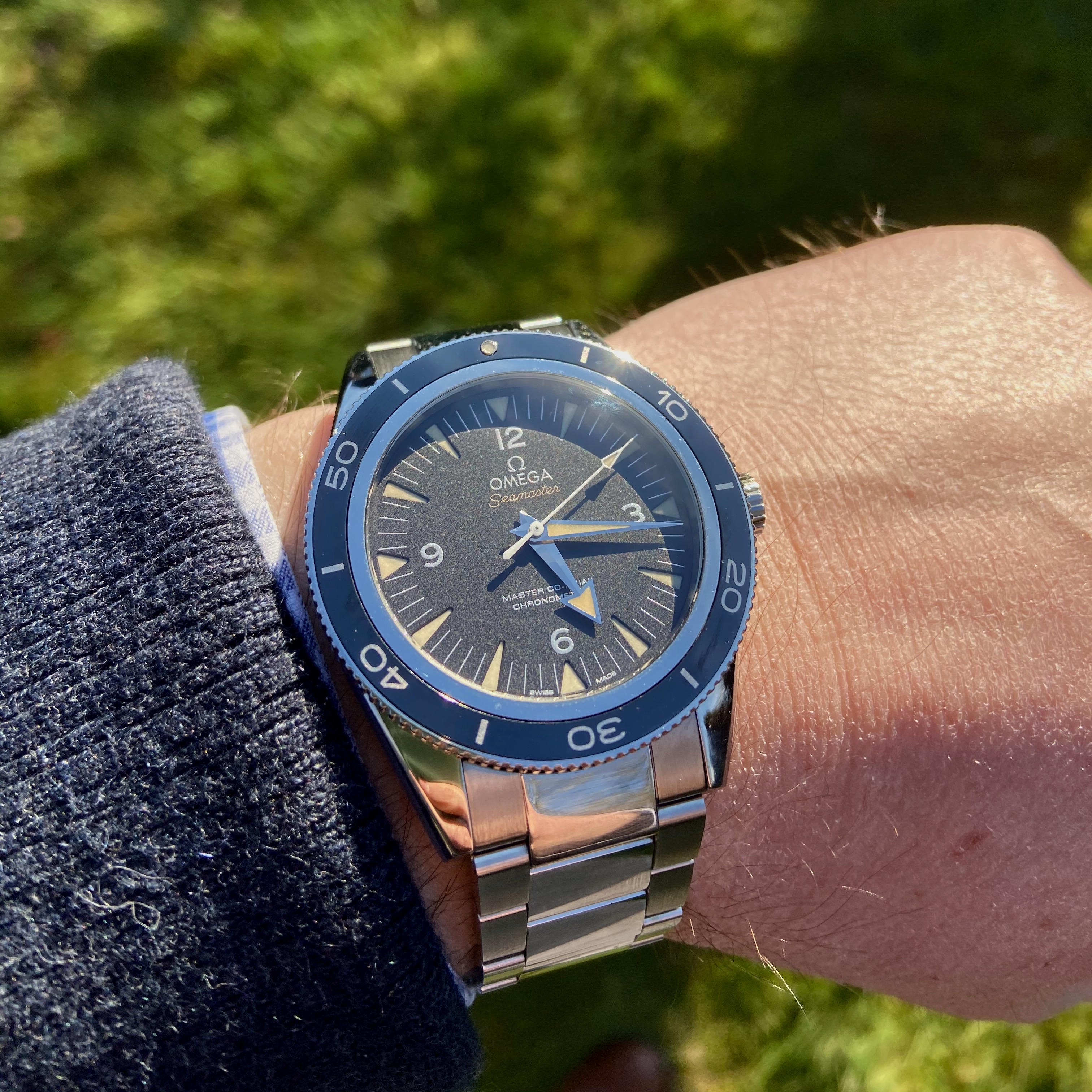 In excellent fully working condition, keeping very good time within a couple of seconds a day as should be expected from a Master Chronometer rated piece. The sapphire crystal and ceramic bezel are perfect, there are no dings on the head or bracelet, just a very few desk diving marks, mostly on the clasp.