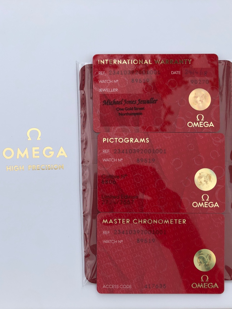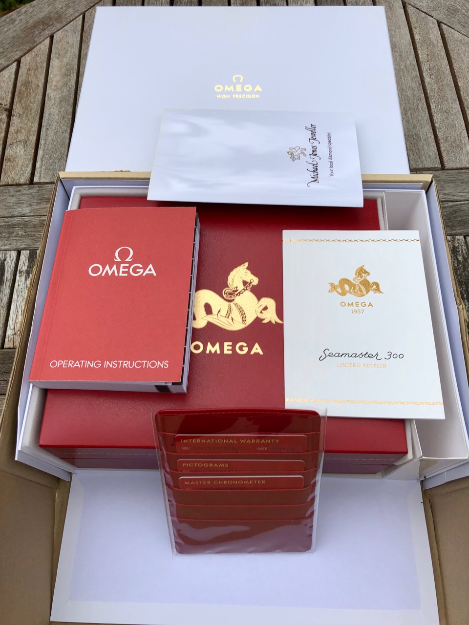 Supplied as a full set with all original accessories including the untouched and brand new leather strap and fabric NATO. Includes hang tag, 3 original cards, booklet, instruction book and removed spare bracelet links. Purchased by me originally in April 2018 from a UK AD, so has around 2.5 years of the 4 year International warranty still to run. Serial and LE number redacted on the pics below but fully complete on the cards. LE 27XX of 3557.