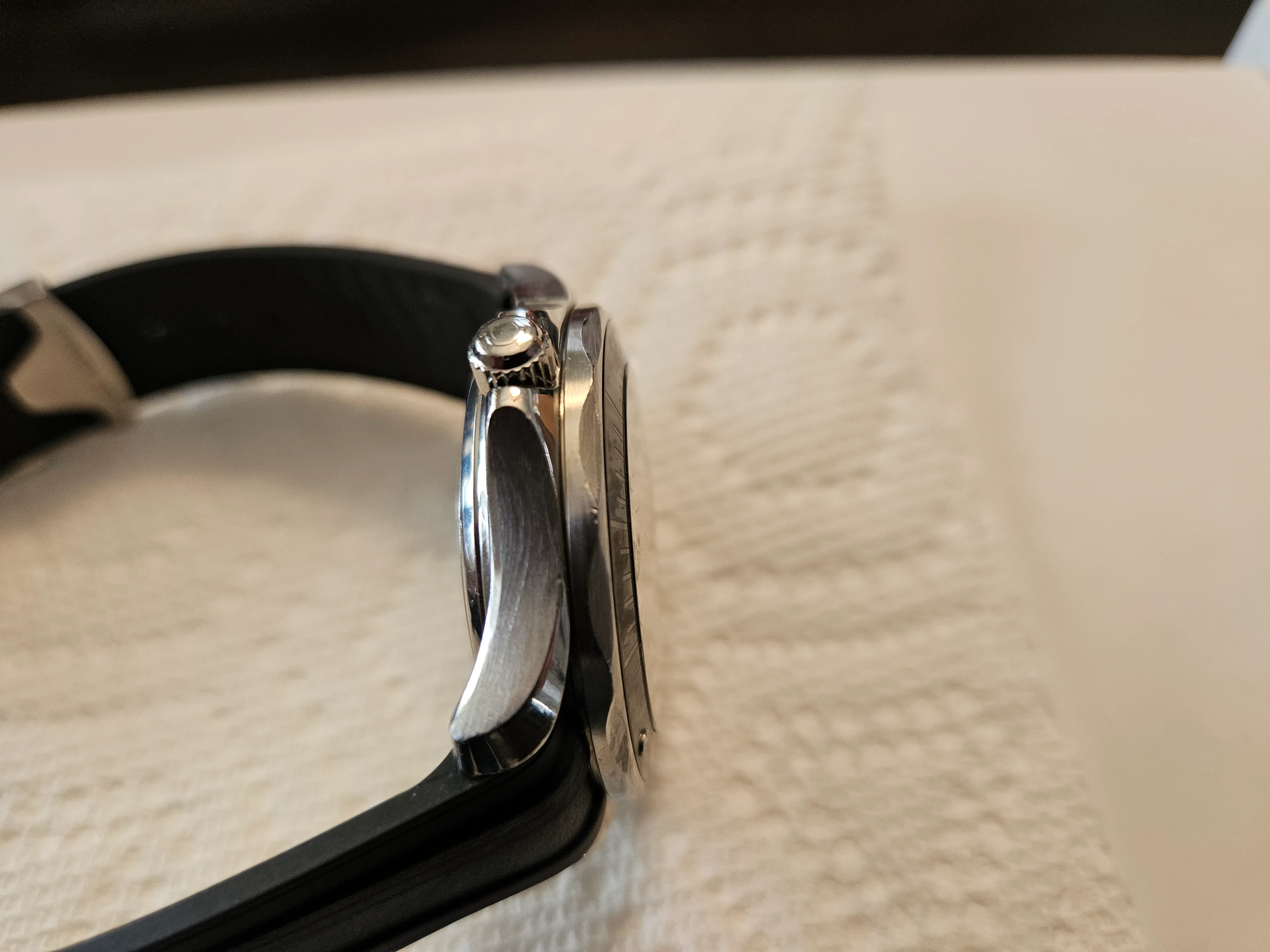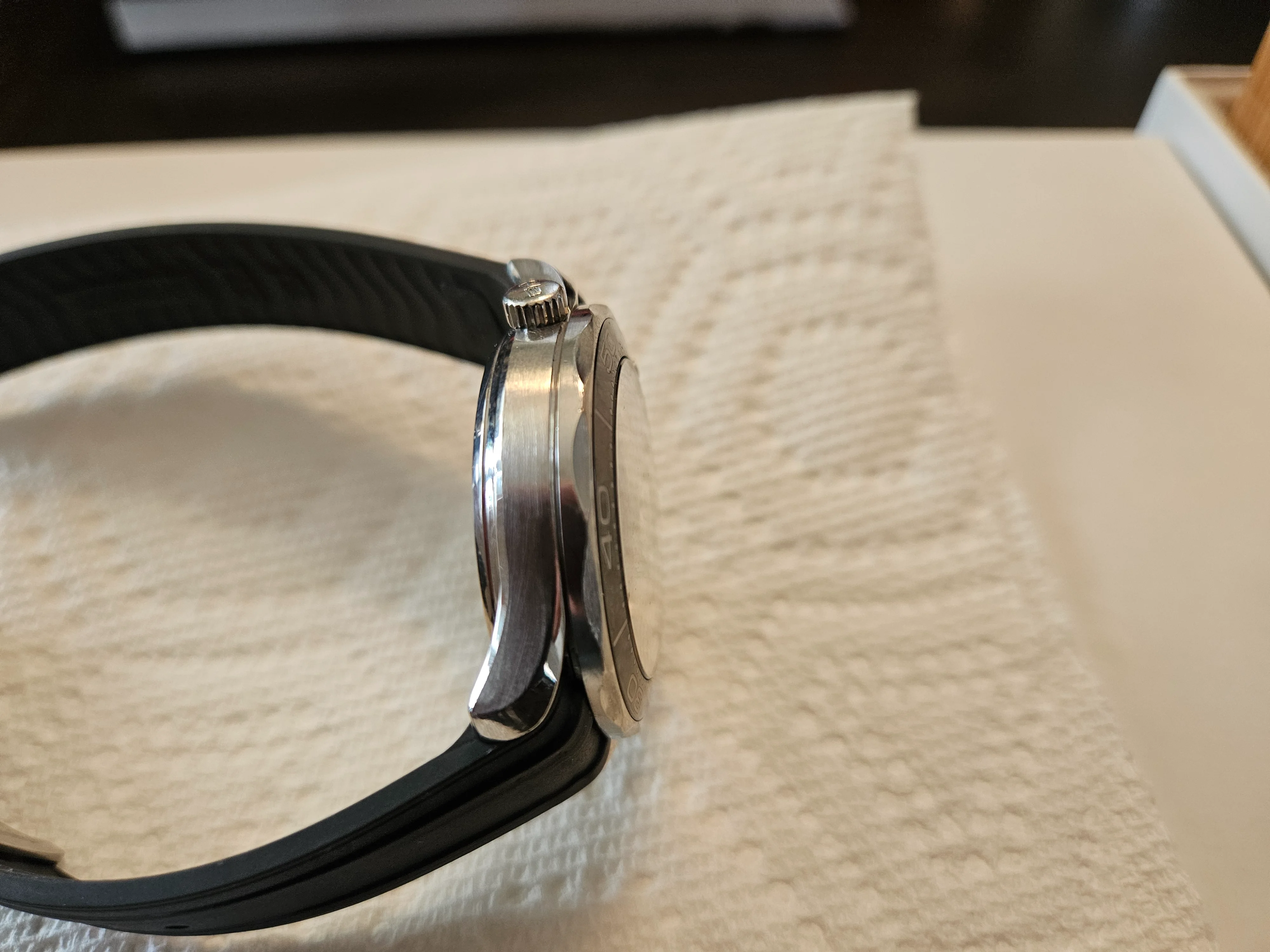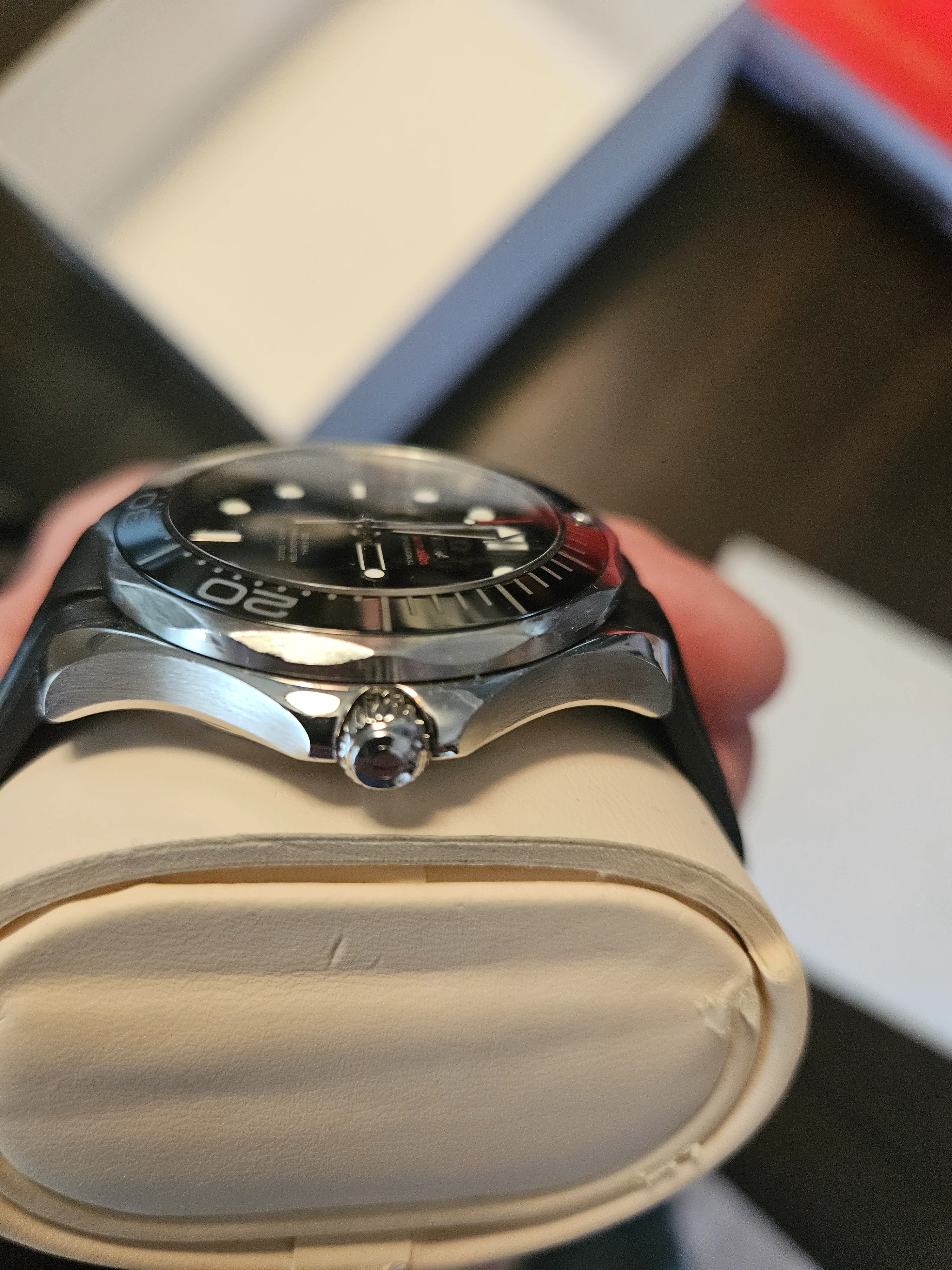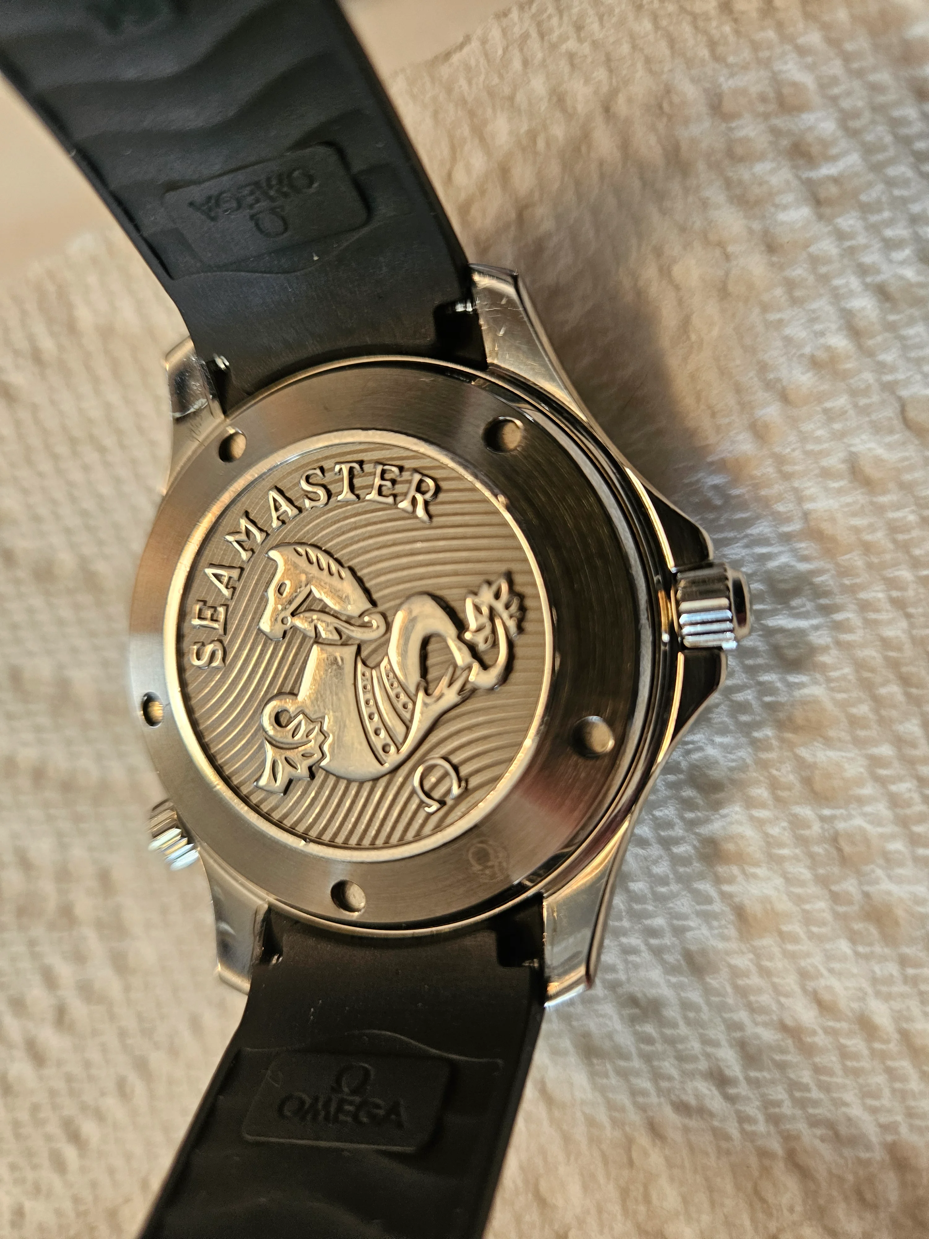 ·For sale Seamaster 300 41mm .Watch is in Very good / Excellent condition . Everything functions as it should - no issues . There are a couple of very small nicks on the bezel as shown in the pics . The rubber strap is not original Omega - the deployment buckle IS original Omega . Bracelet is in excellent condition as pictured . Wooden presentation case is excellent - outer white box has a few marks .