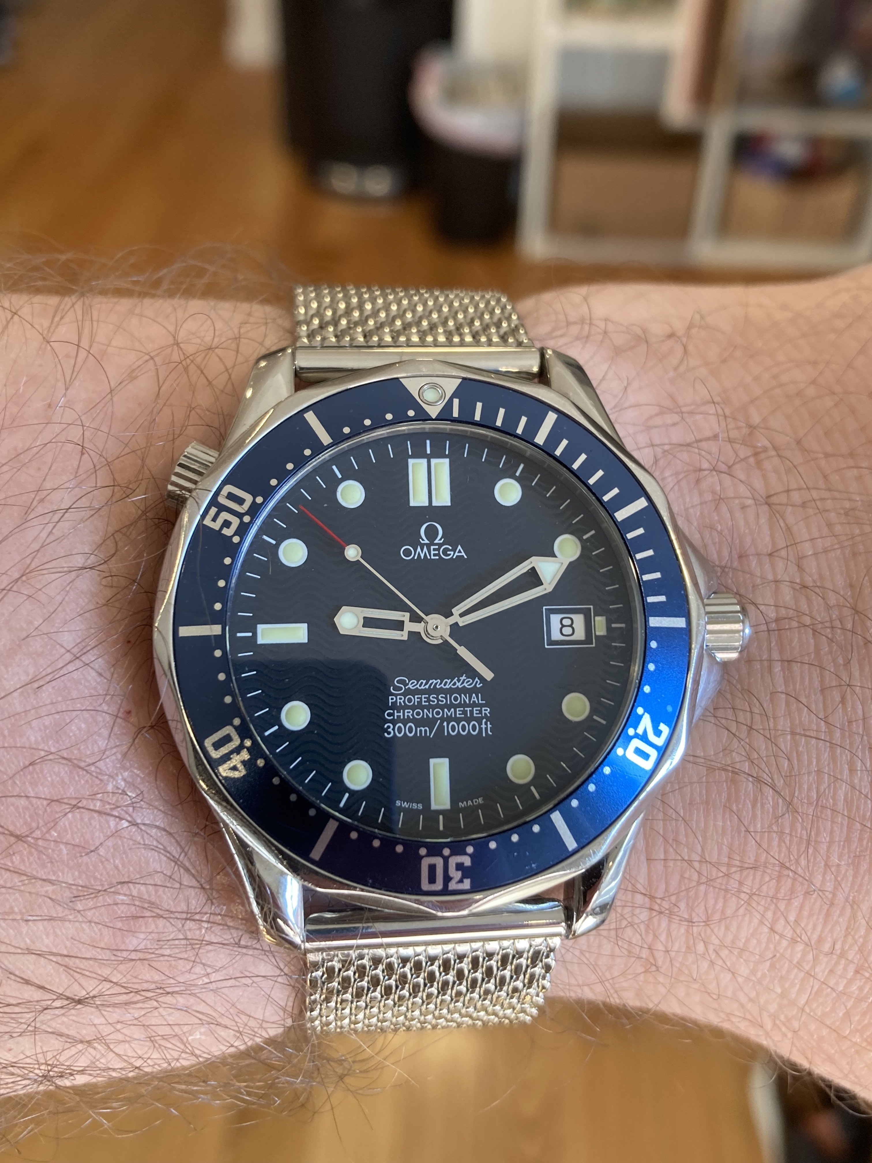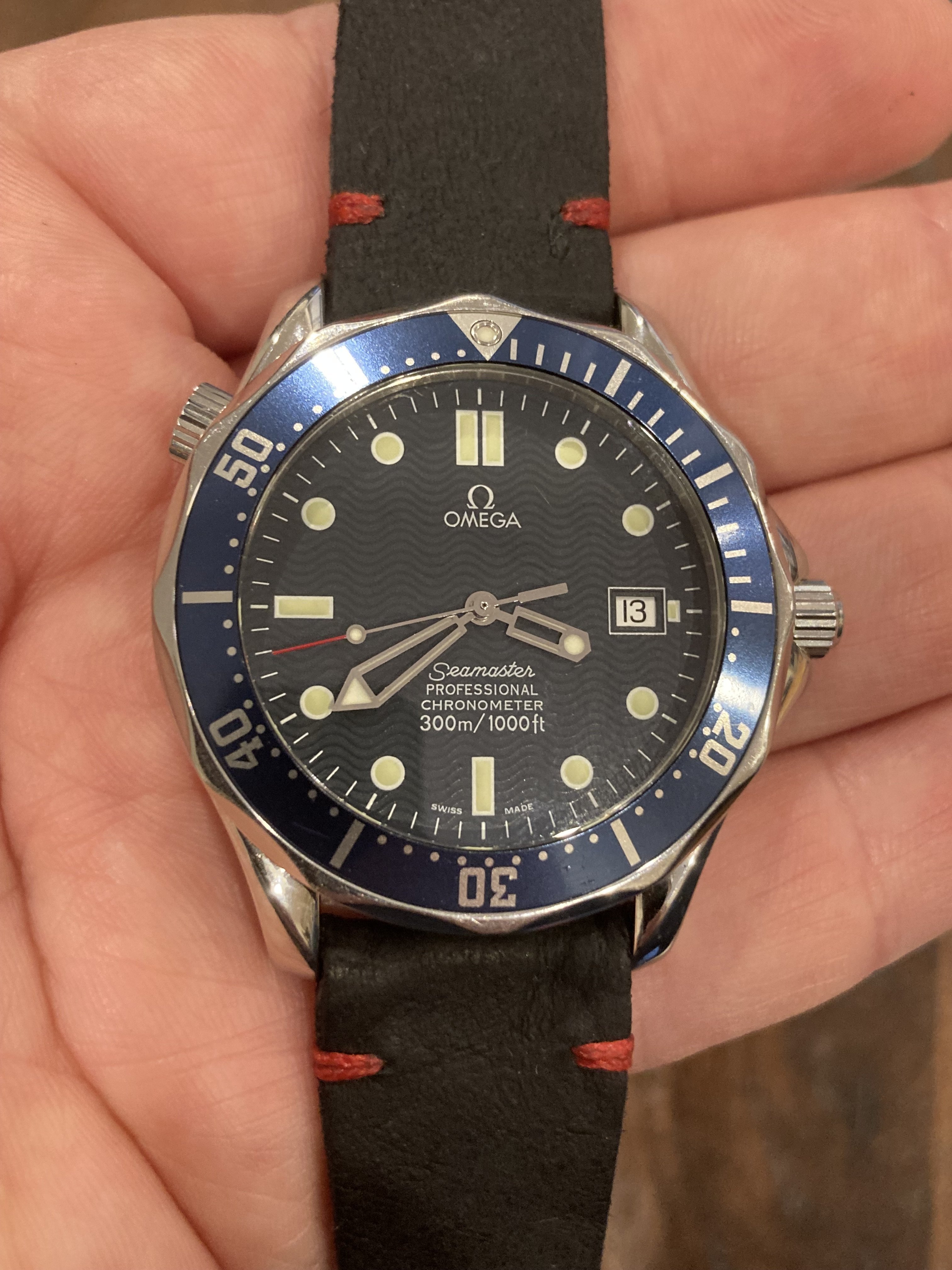·Offering this excellent example of a late ‘90s / early 2000s Bond Seamaster 300M. This is the automatic chronometer version of the watch worn in GoldenEye; it featured in Tomorrow Never Dies as well.