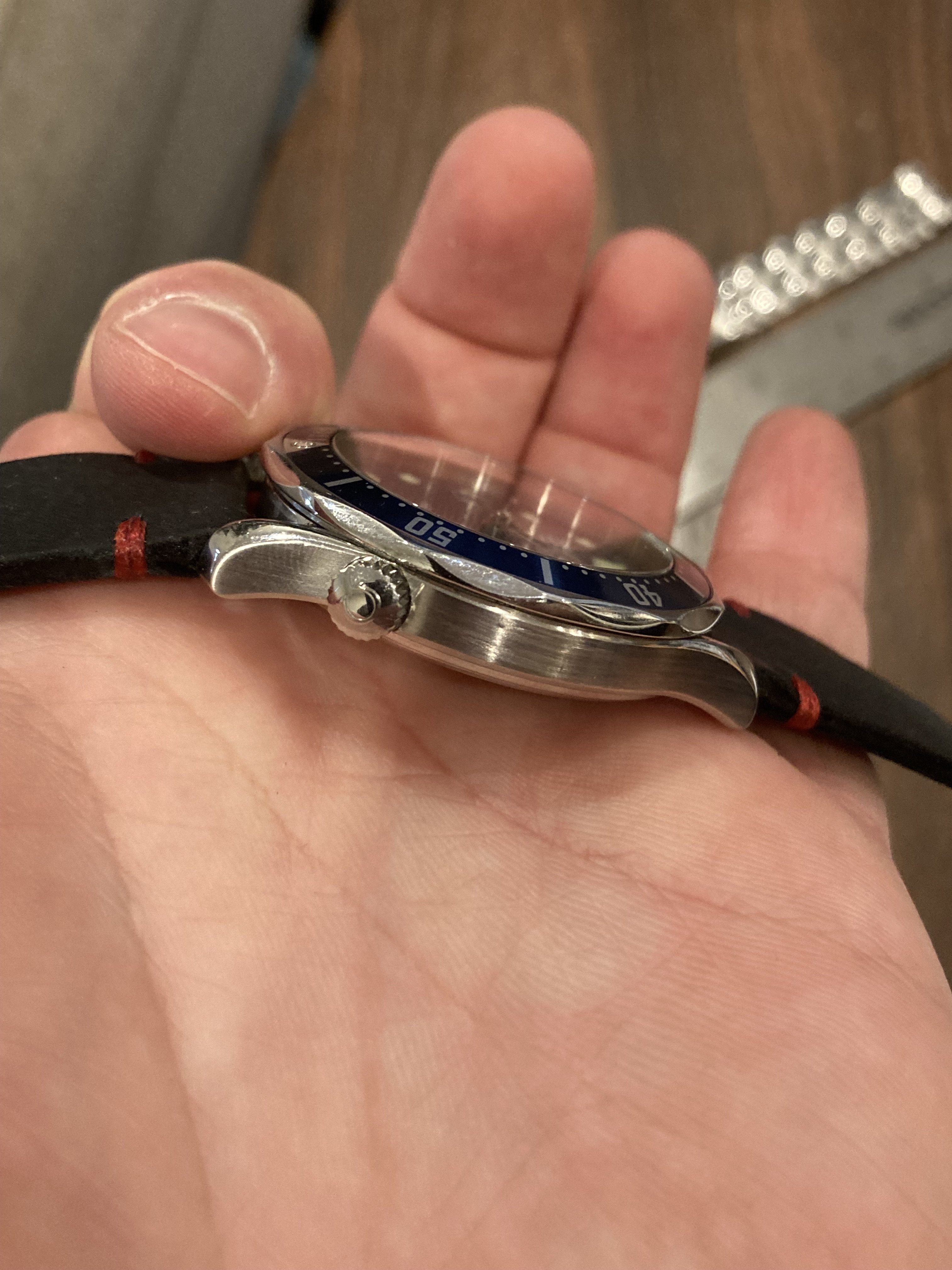 Truly excellent condition with no noticeable blemishes anywhere on the case or bezel. Lume plots are perfect and the red paint on the seconds hand is still vibrant. Timekeeping still appears to be within chronometer specs too.