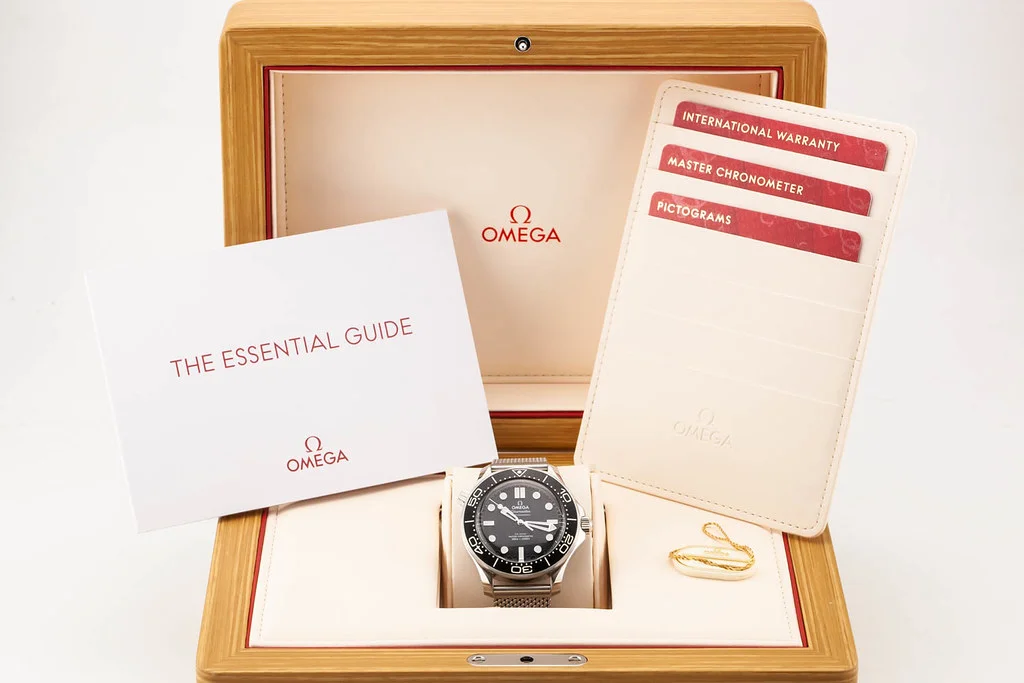 ·Up for sale is a brand new Omega Seamaster 300M 42mm Black Aluminum Dial & Bezel on Mesh Bracelet, reference # 210.30.42.20.01.010. It comes complete with all boxes, papers, booklet, hang tag and Omega Warranty Card dated December 2025.