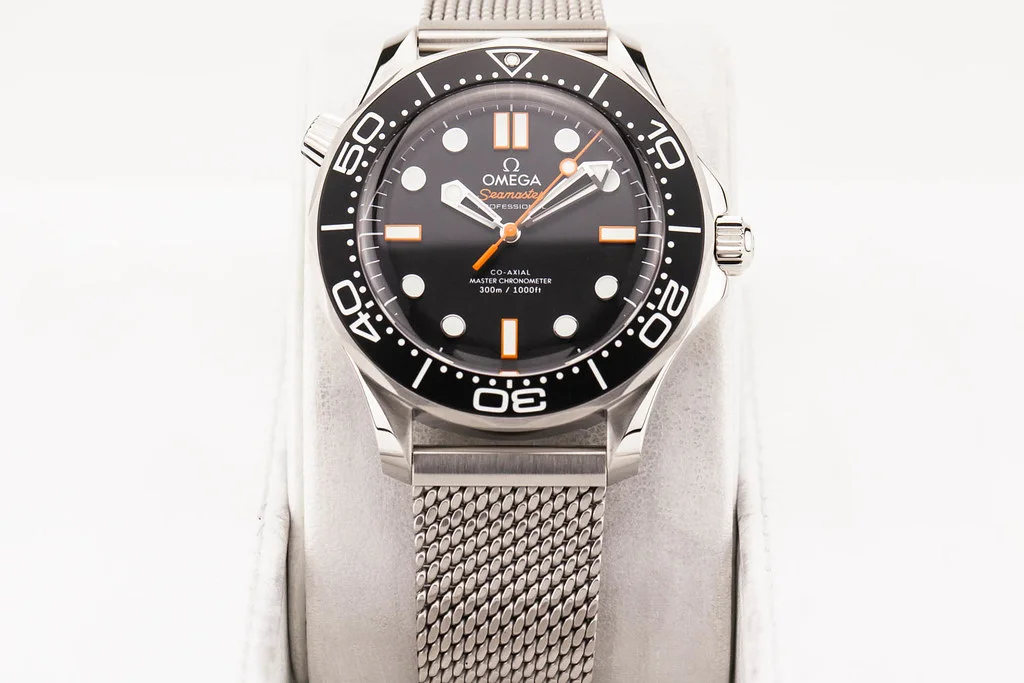 ·Up for sale is a brand new Omega Seamaster 300 42mm Black Aluminum Dial & Bezel with Orange Accents on Mesh Bracelet, reference # 210.30.42.20.01.018. It comes complete with all boxes, papers, booklet, hang tag and Omega Warranty Card dated November 2025.